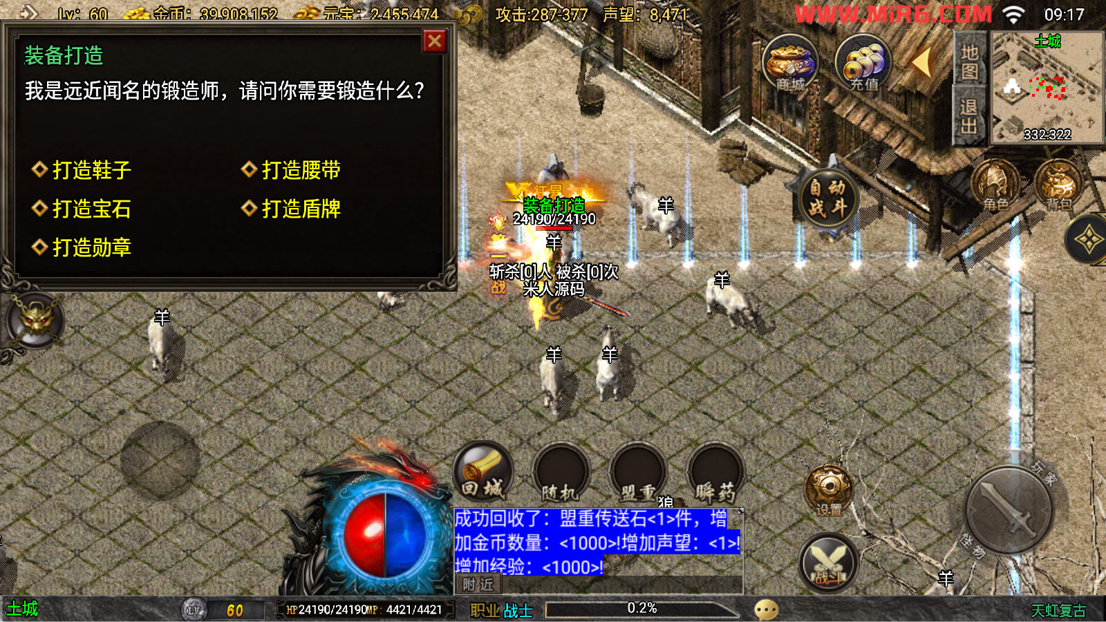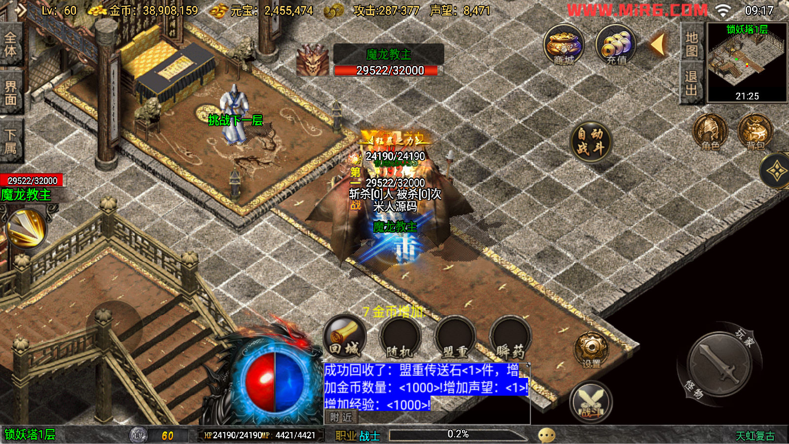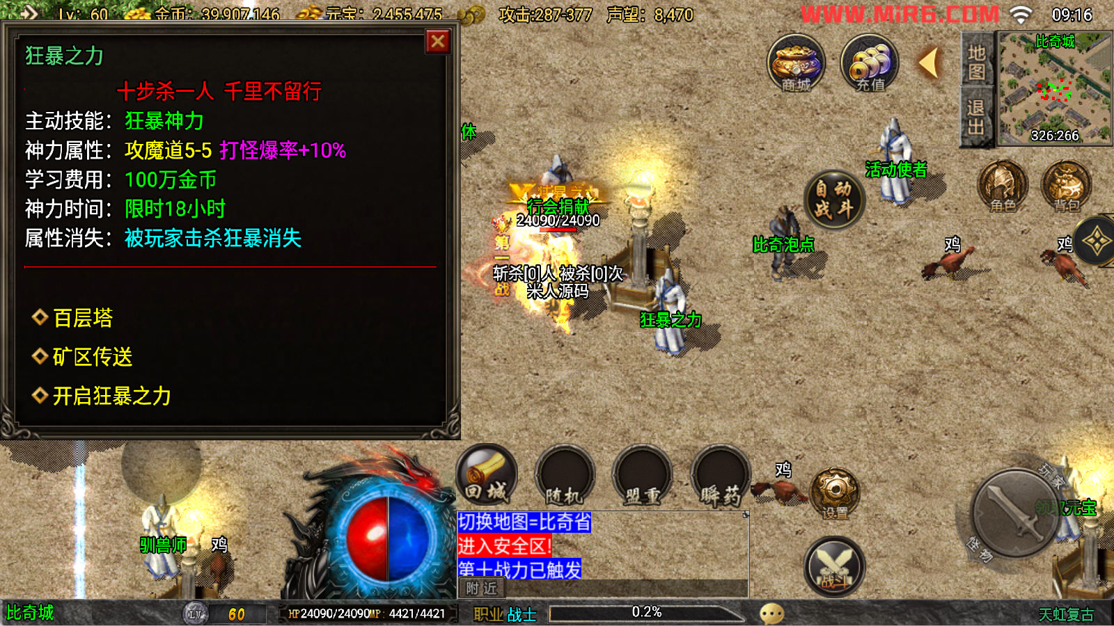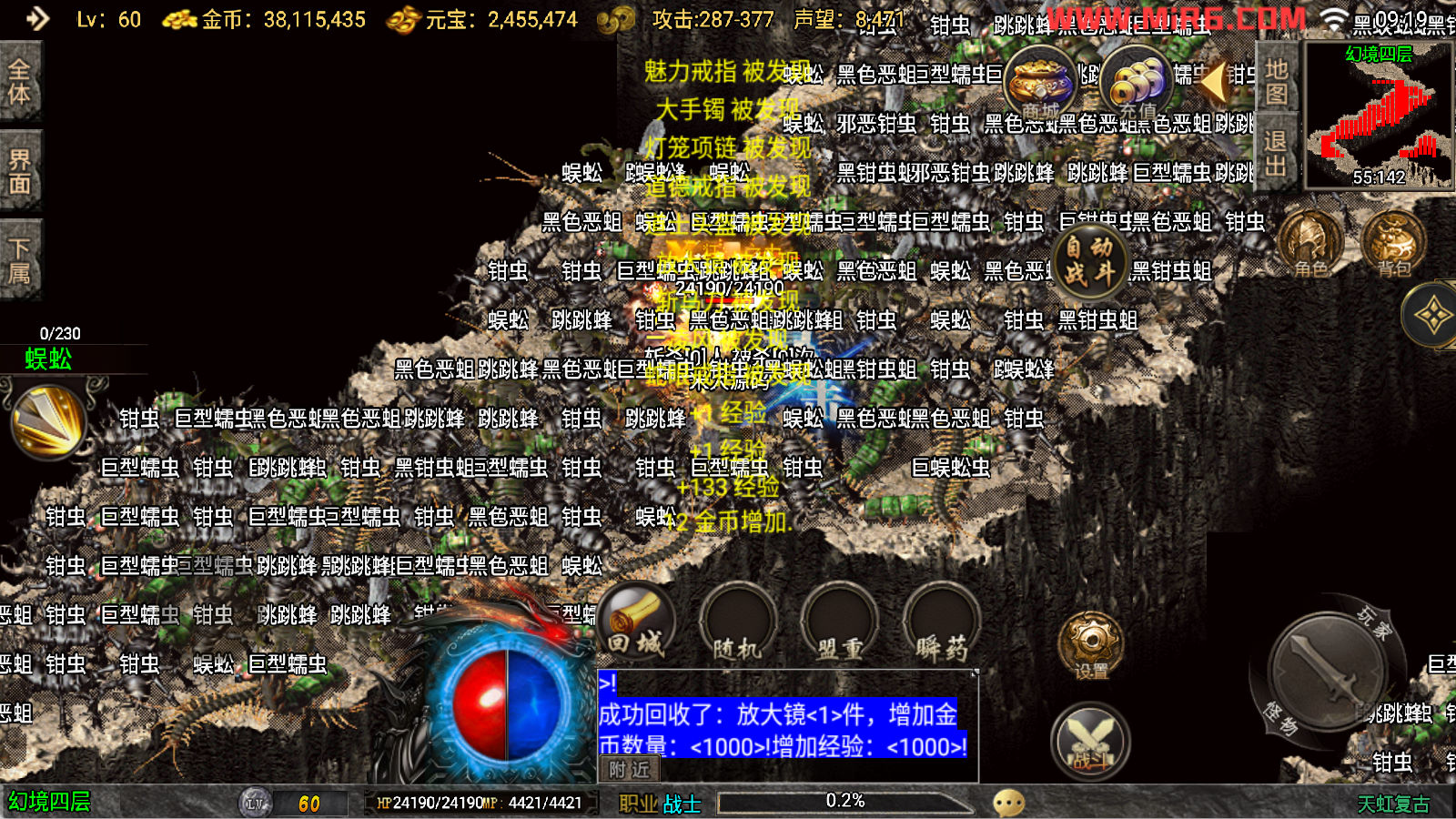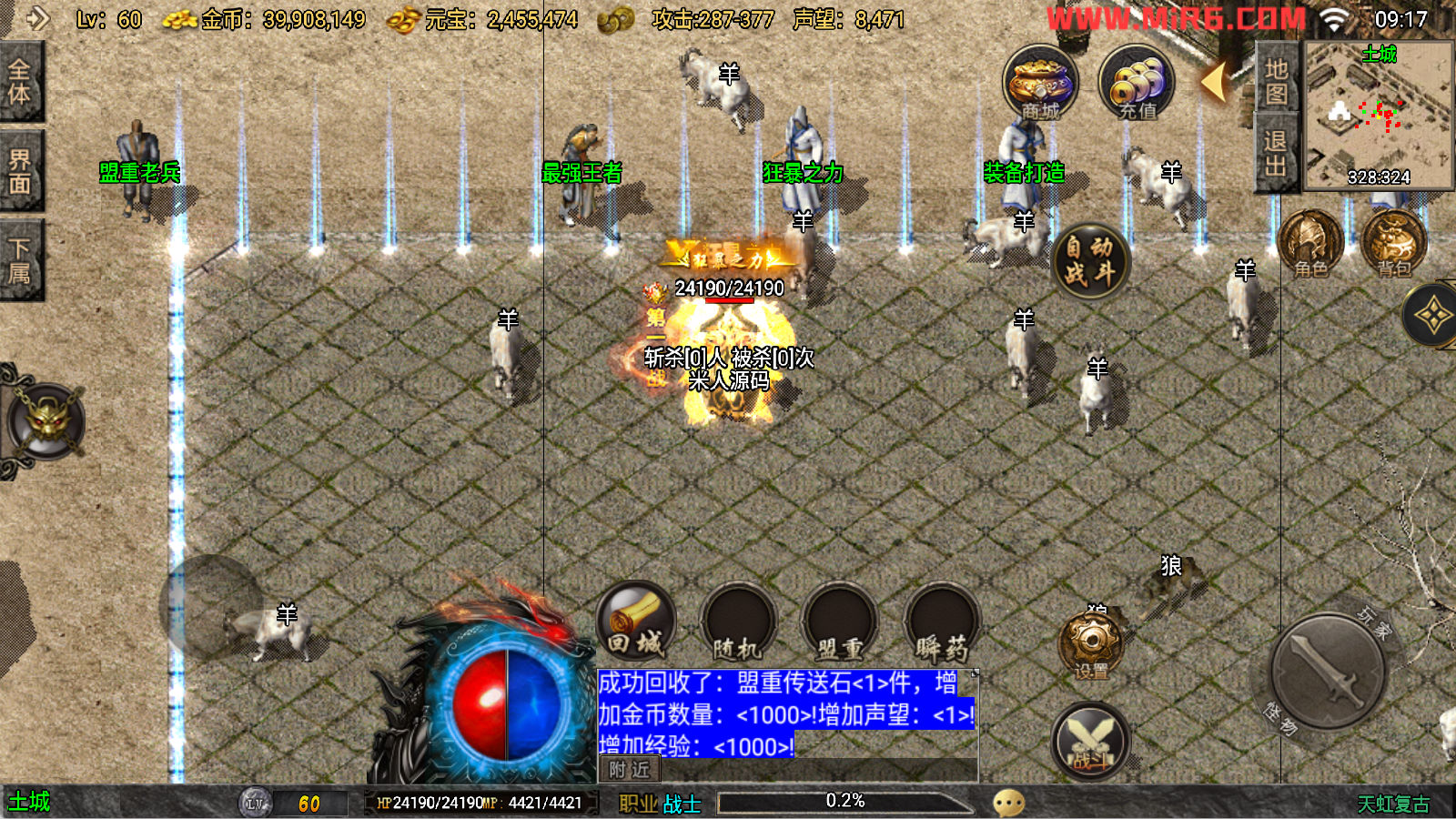 下面我们来测试下游戏里的功能看看吧。好了,其他功能就自行测试吧。更多的游戏资源可以访问www.MiR6.com下载,我们每款游戏资源均单独制作了独立的视频架设教程,让小白也可以快速上手游戏架设。快来体验自己做GM的乐趣吧!