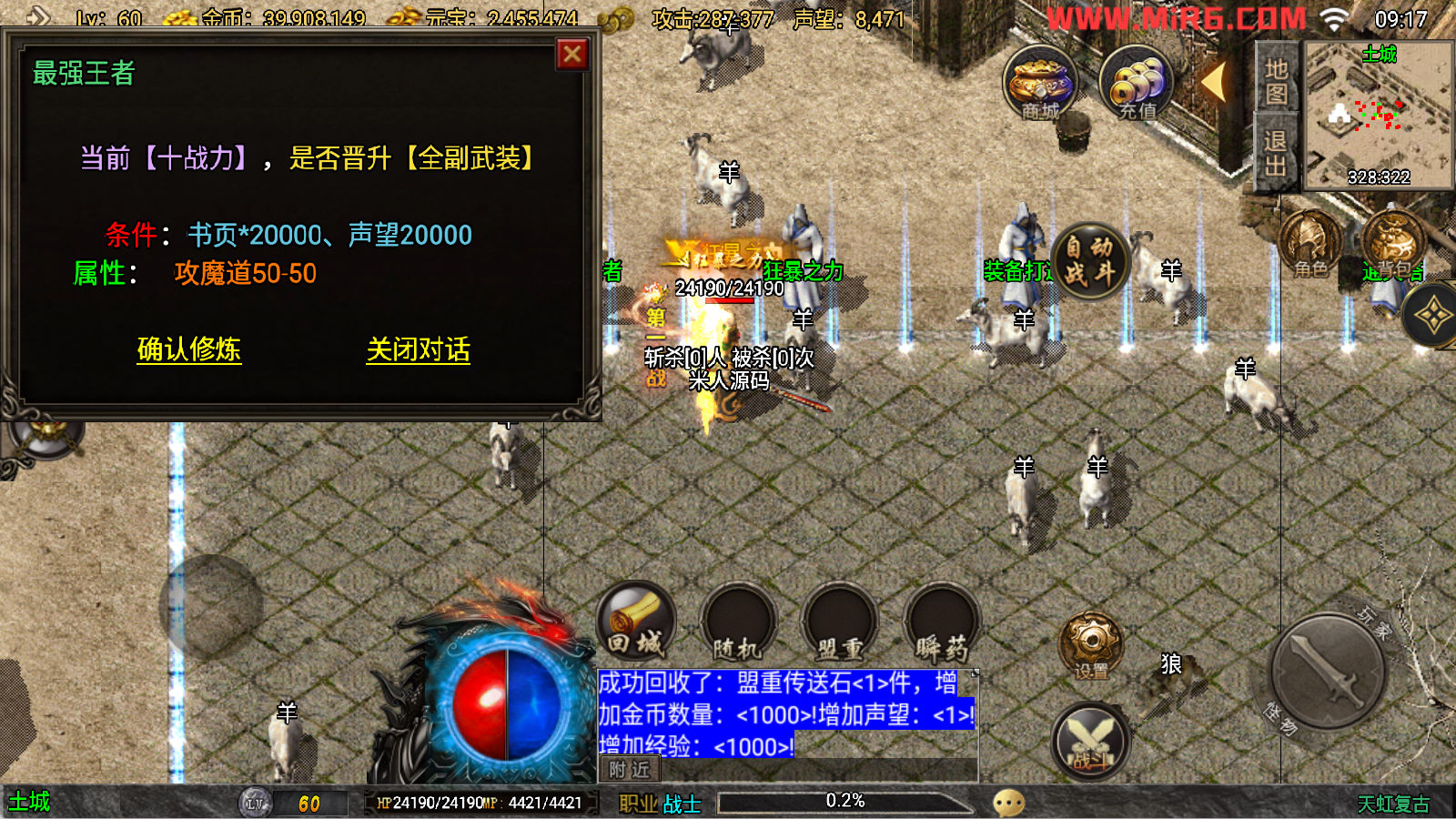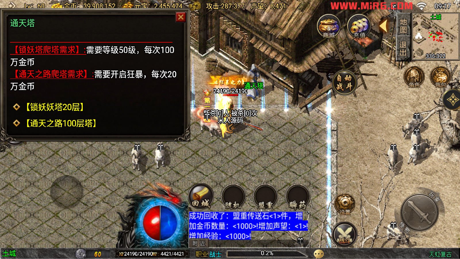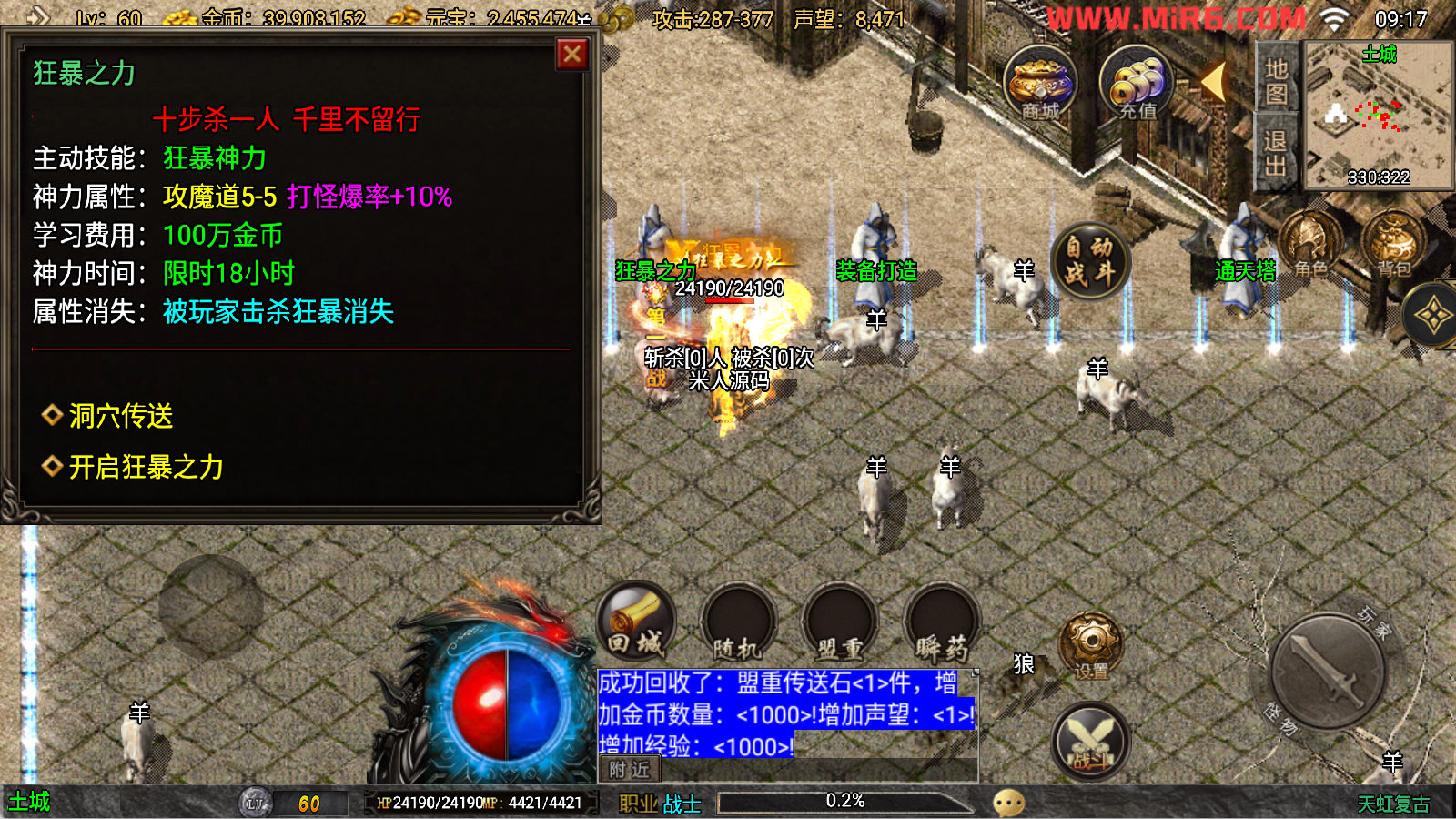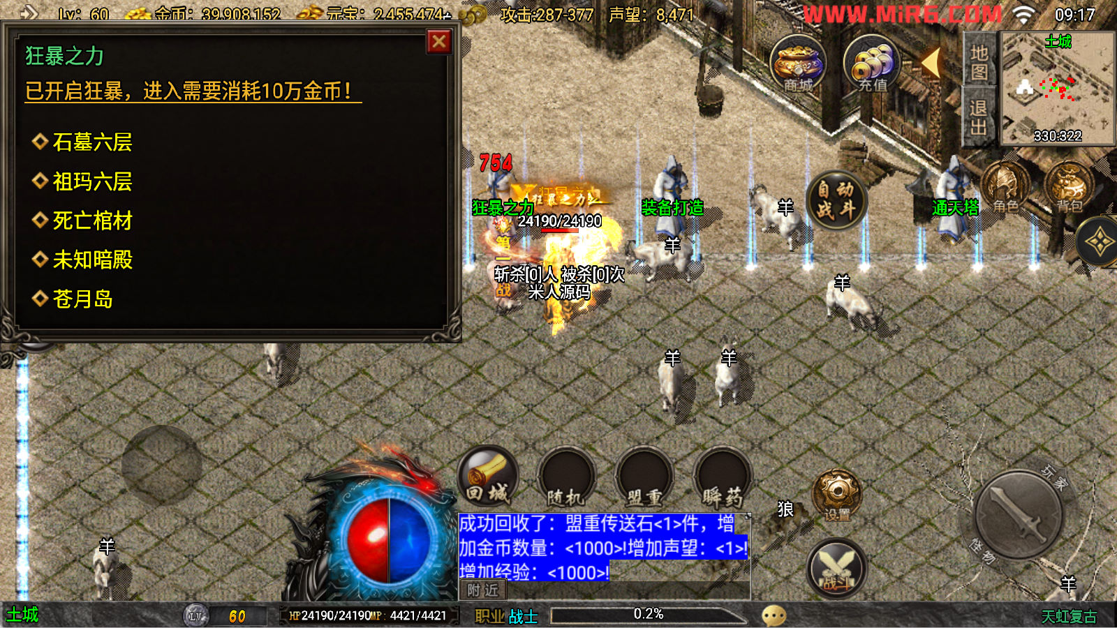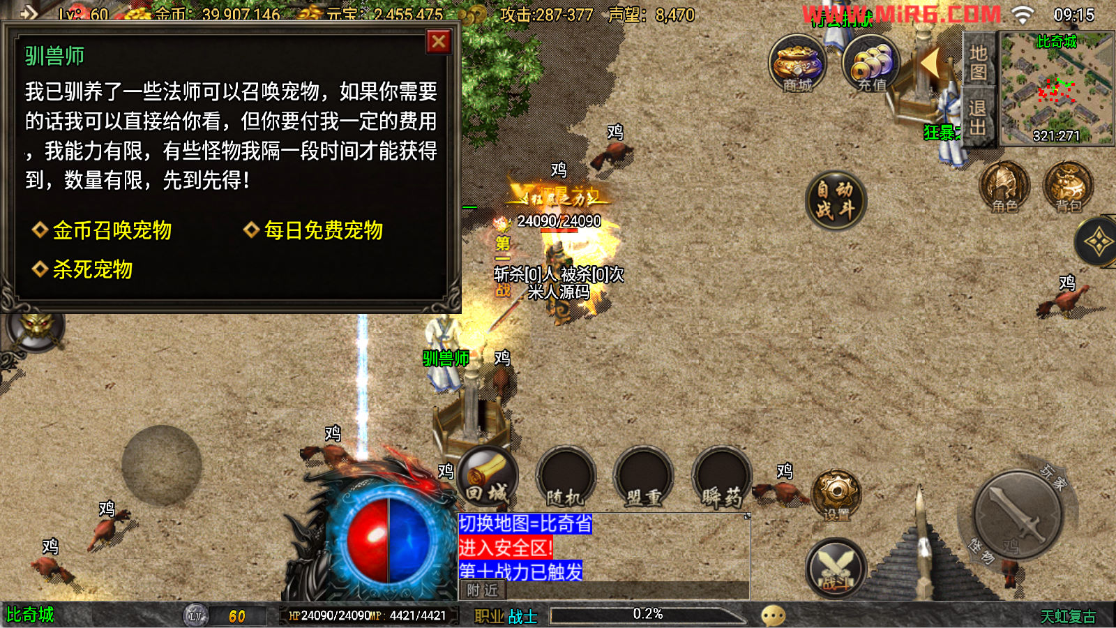 下面我们来测试下游戏里的功能看看吧。好了,其他功能就自行测试吧。更多的游戏资源可以访问www.MiR6.com下载,我们每款游戏资源均单独制作了独立的视频架设教程,让小白也可以快速上手游戏架设。快来体验自己做GM的乐趣吧!