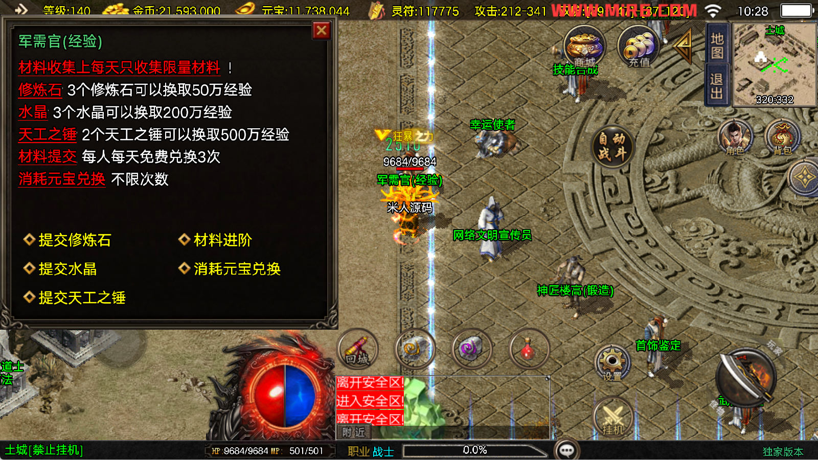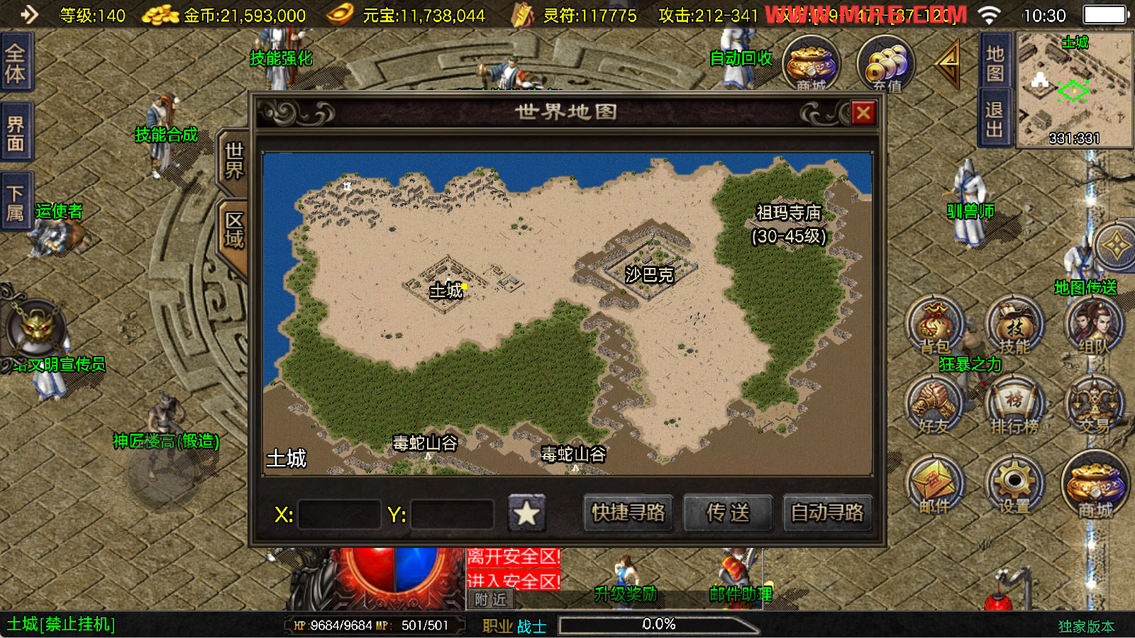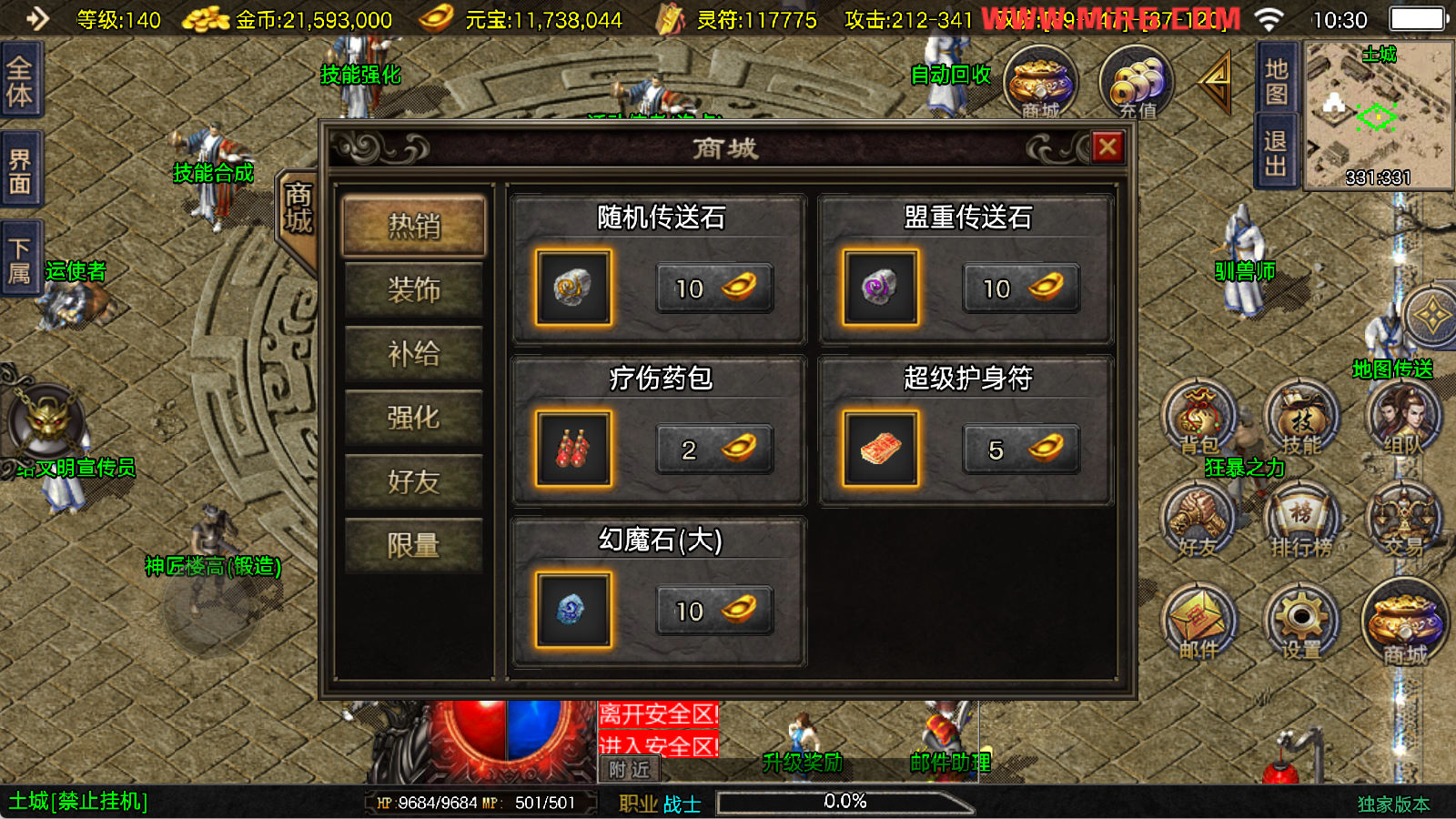 下面我们来测试下游戏里的功能看看。好了,其他功能就自行测试吧。更多的游戏资源可以访问www.MiR6.com下载,我们每款游戏资源均单独制作了独立的视频架设教程,让小白也可以快速上手游戏架设,快来体验自己做GM的乐趣吧!