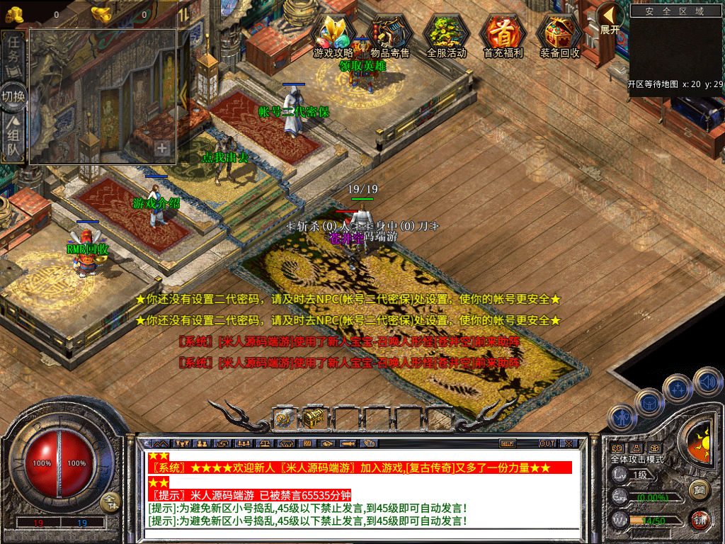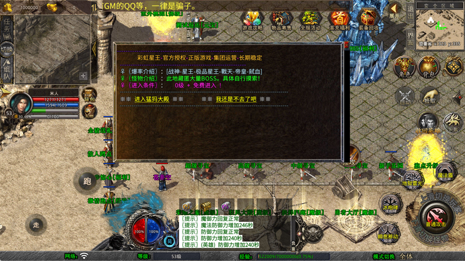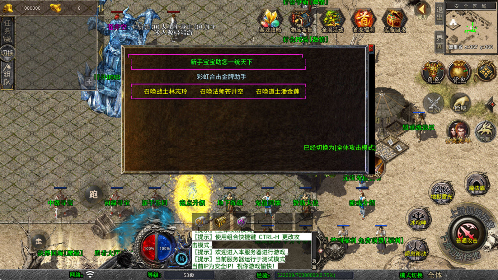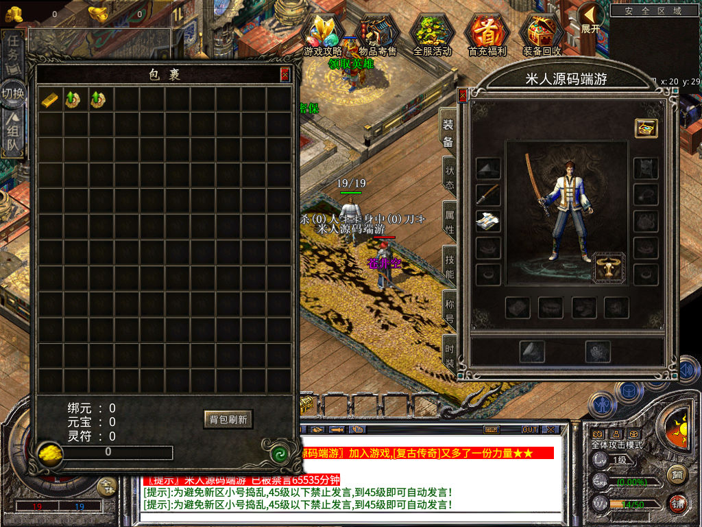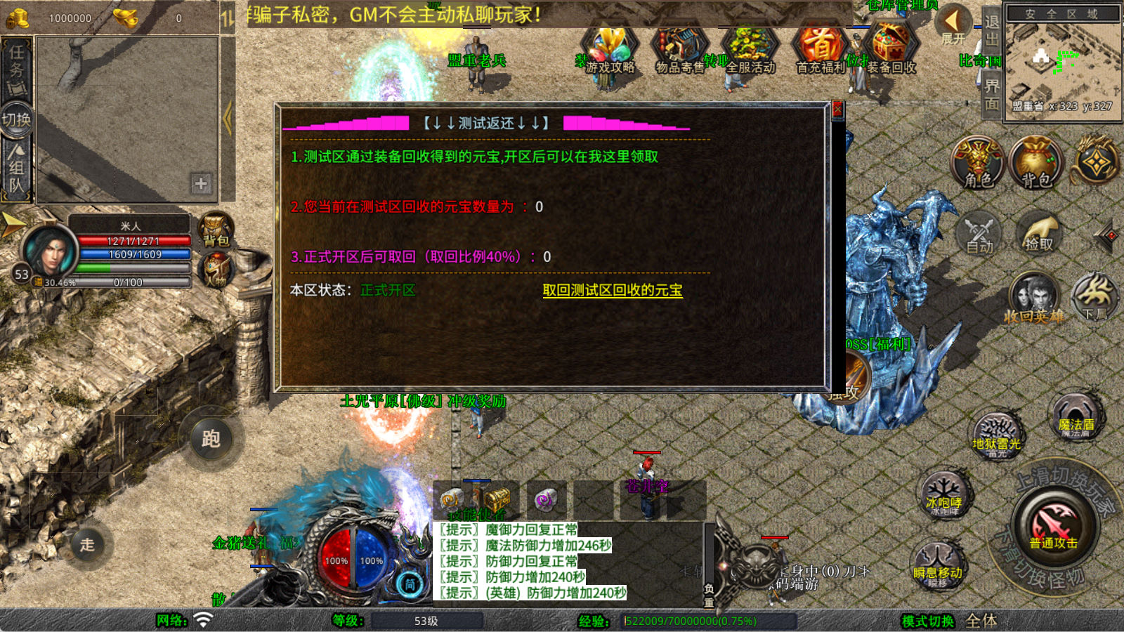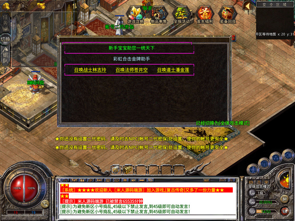 下面我们来测试下游戏里的功能看看。好了,其他功能就自行测试吧。更多的游戏资源可以访问www.MiR6.com下载,我们每款游戏资源均单独制作了独立的视频架设教程,让小白也可以快速上手游戏架设,快来体验自己做GM的乐趣吧!