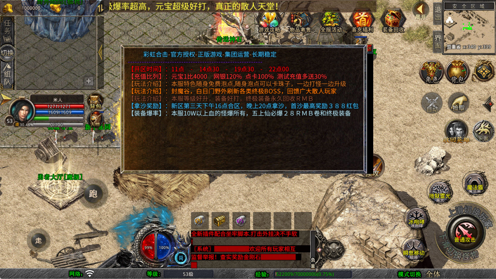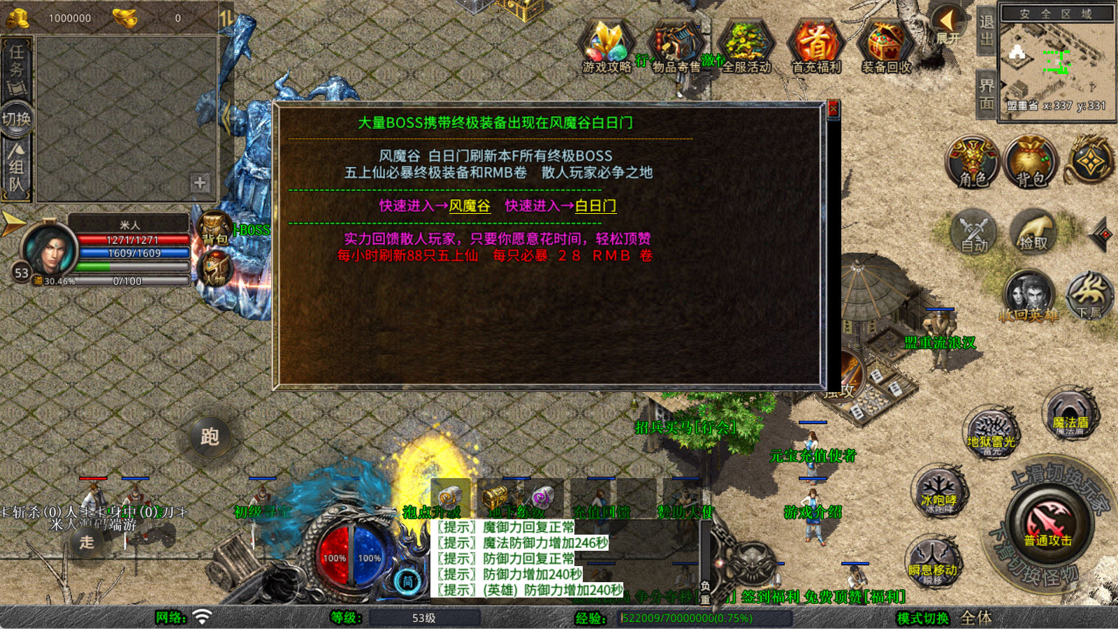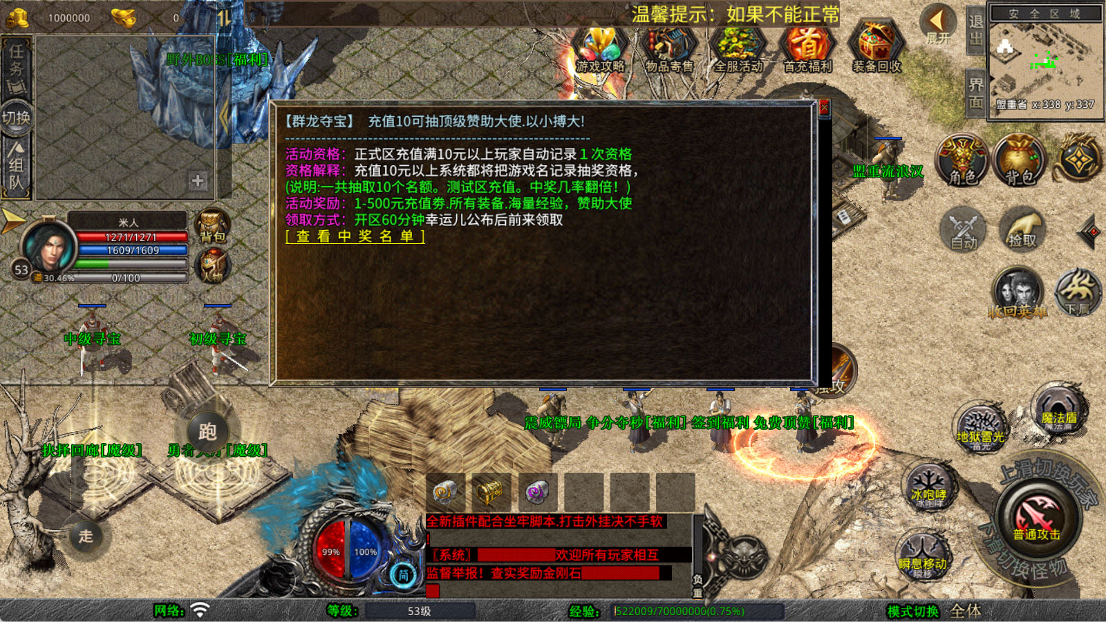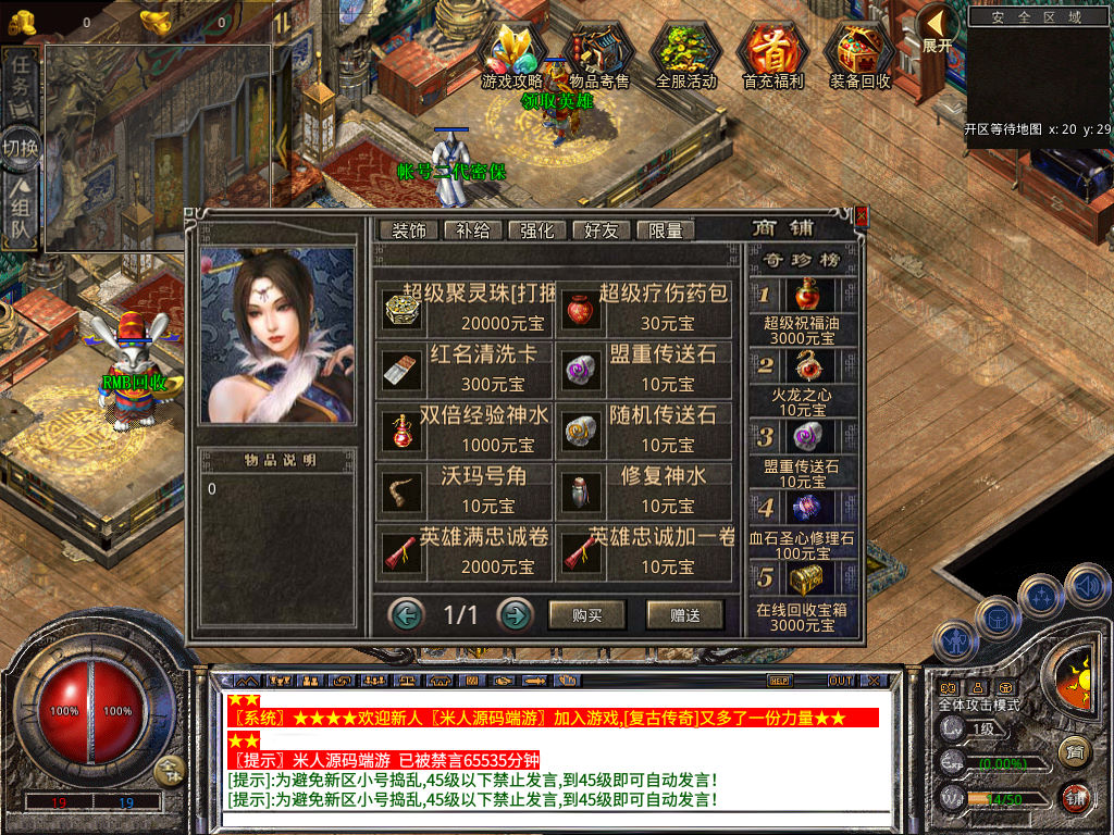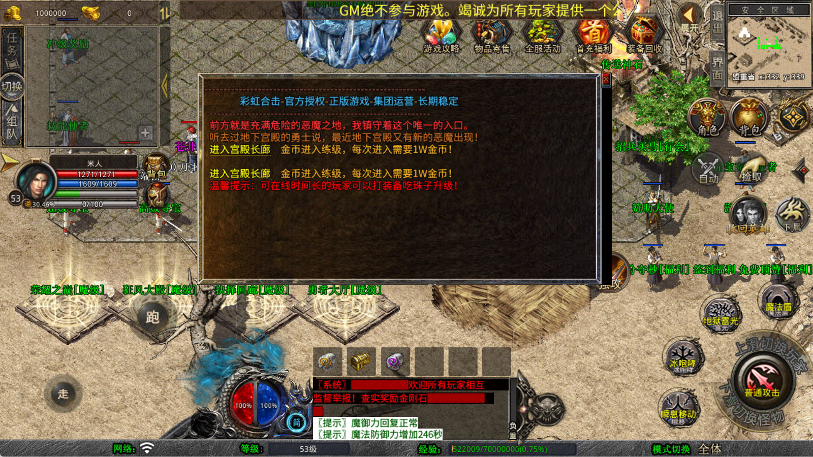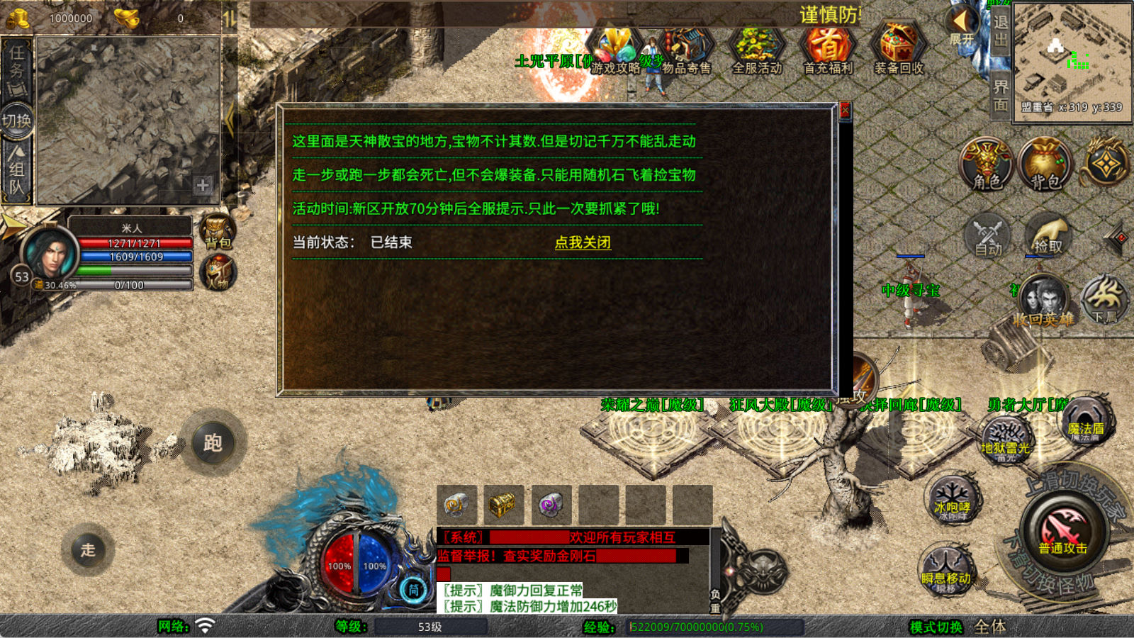 下面我们来测试下游戏里的功能看看。好了,其他功能就自行测试吧。更多的游戏资源可以访问www.MiR6.com下载,我们每款游戏资源均单独制作了独立的视频架设教程,让小白也可以快速上手游戏架设,快来体验自己做GM的乐趣吧!