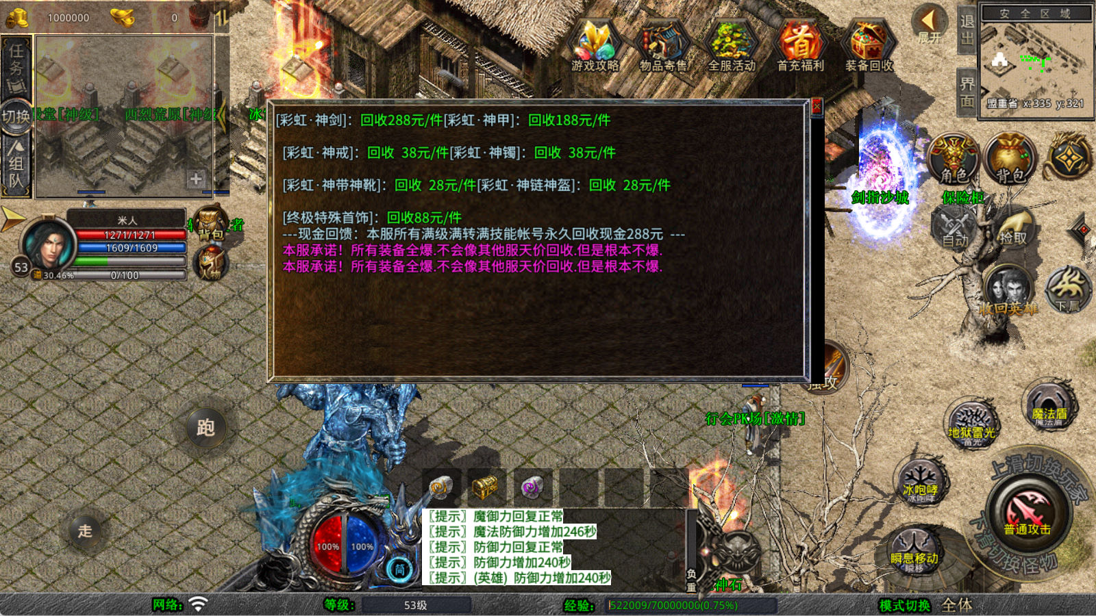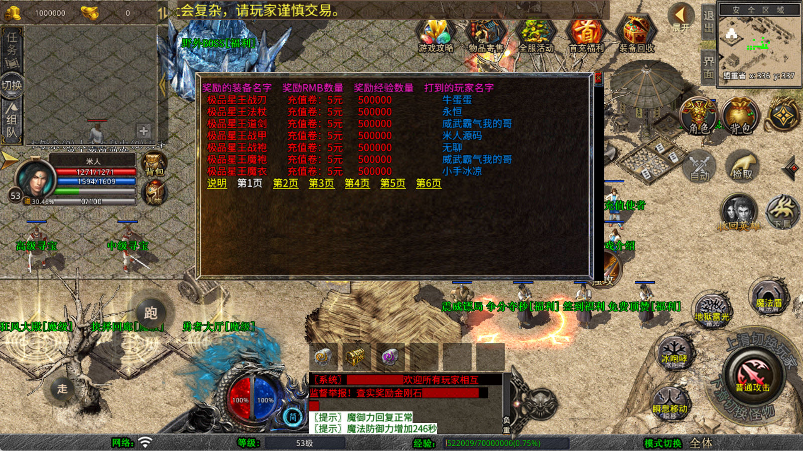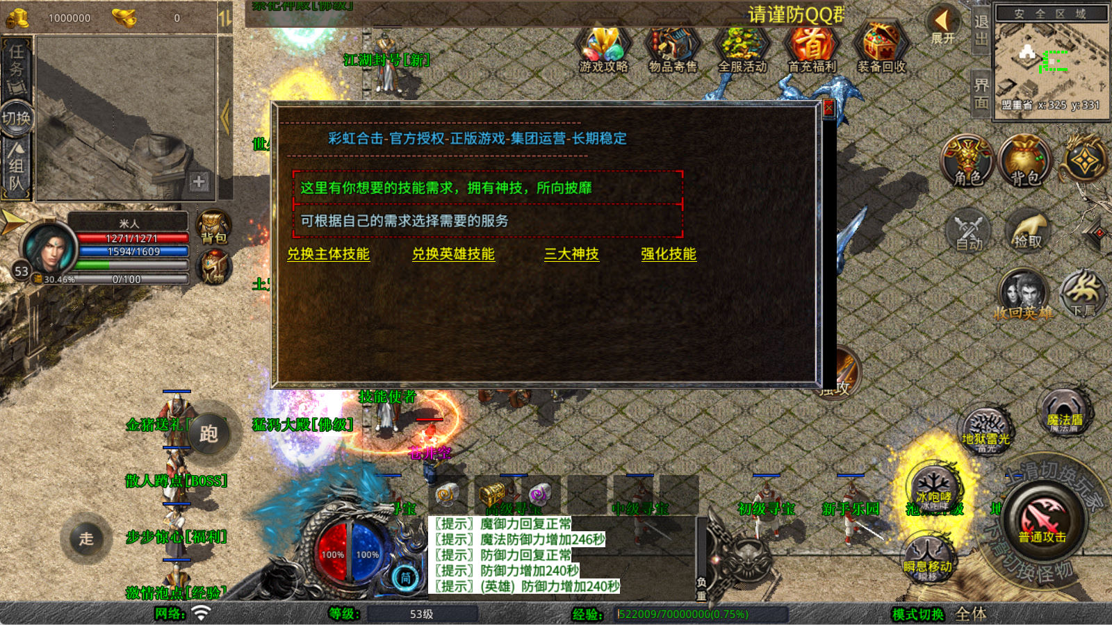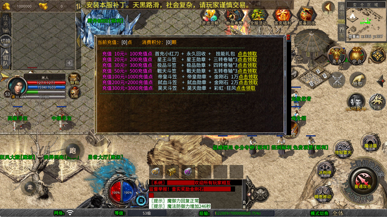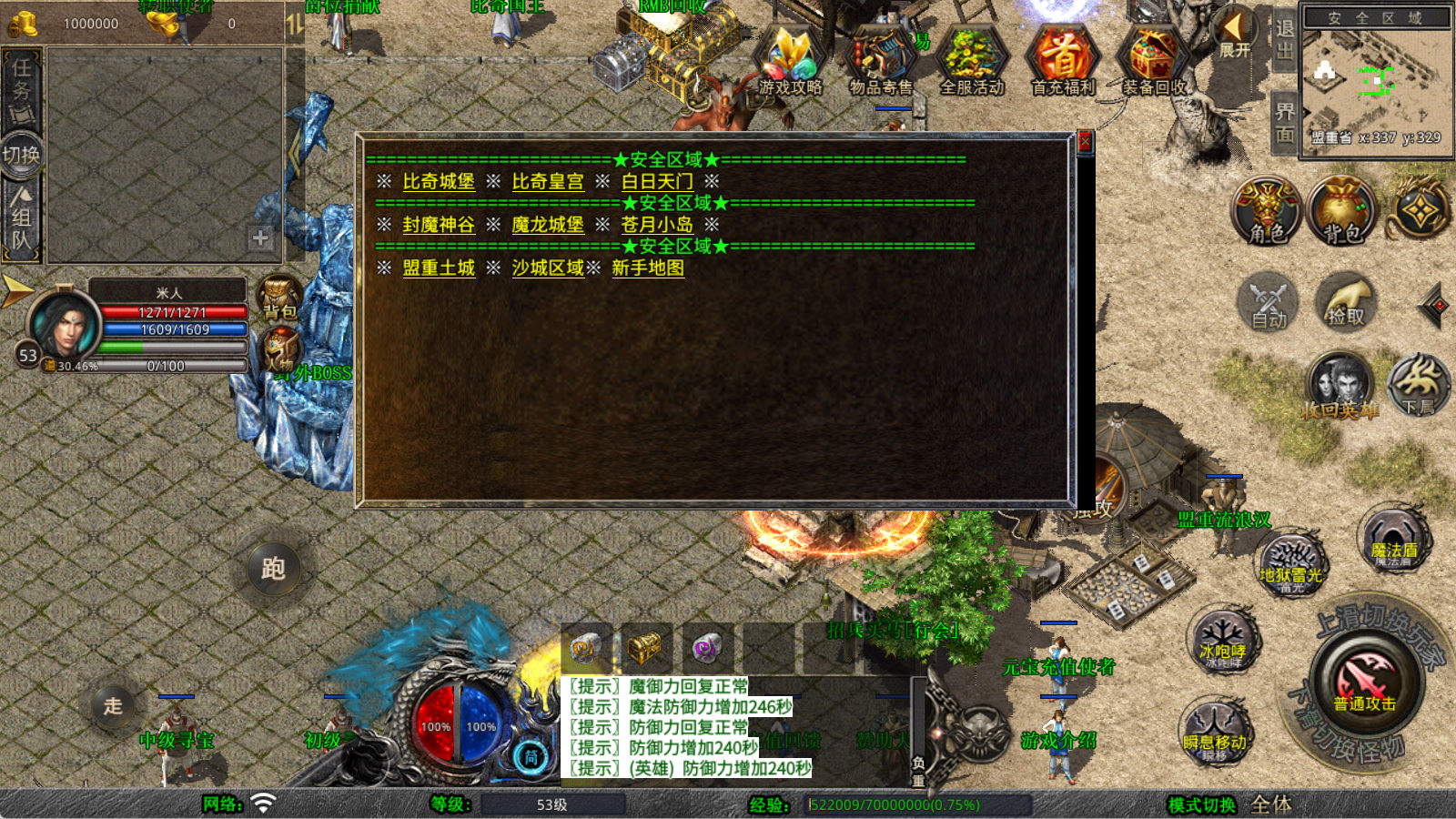 下面我们来测试下游戏里的功能看看。好了,其他功能就自行测试吧。更多的游戏资源可以访问www.MiR6.com下载,我们每款游戏资源均单独制作了独立的视频架设教程,让小白也可以快速上手游戏架设,快来体验自己做GM的乐趣吧!