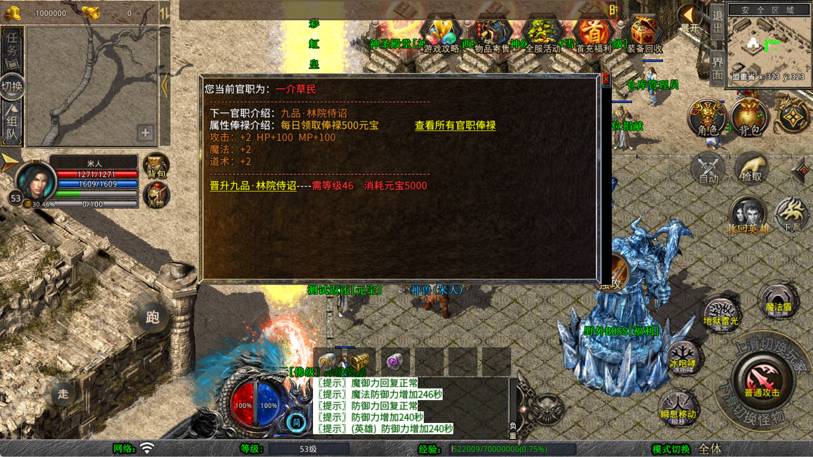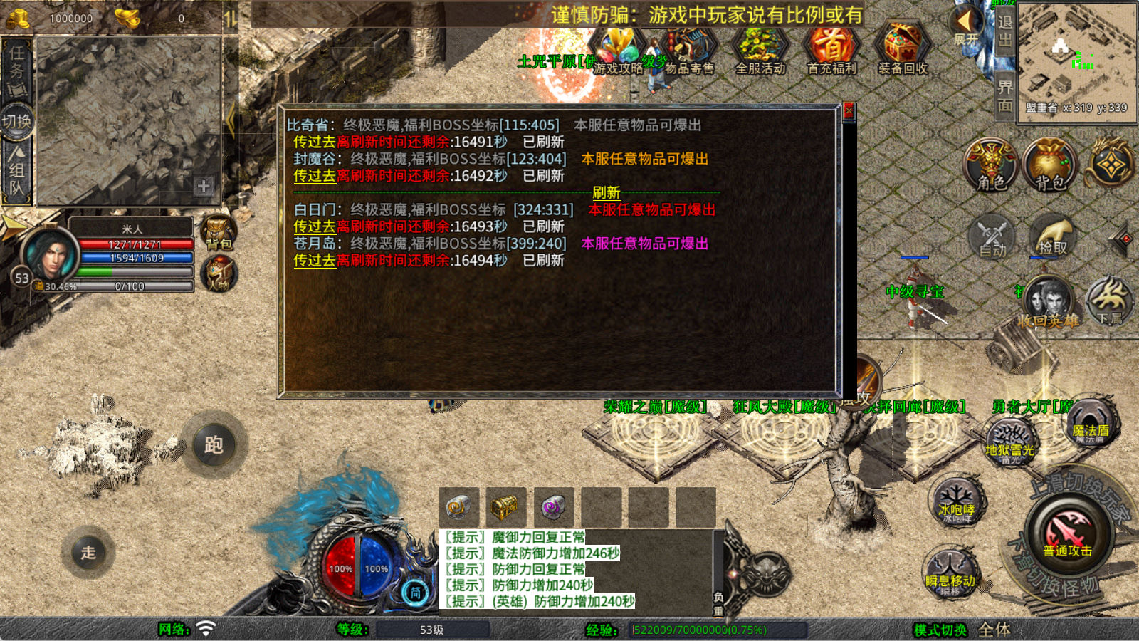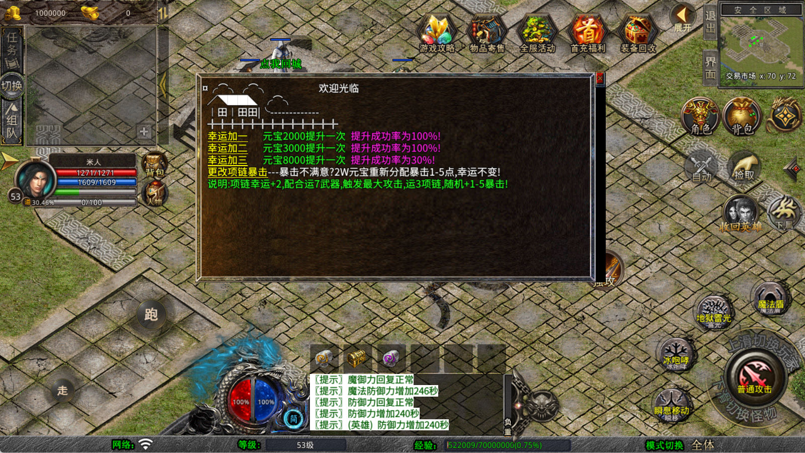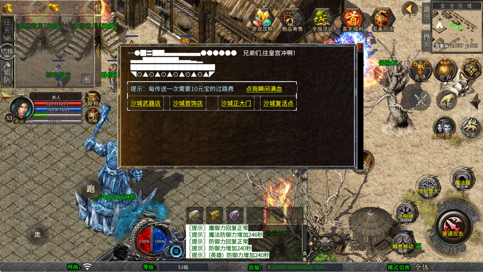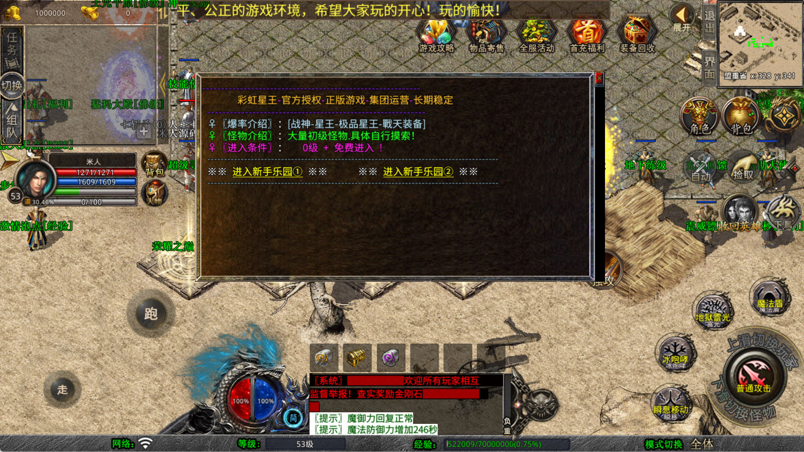下面我们来测试下游戏里的功能看看。好了,其他功能就自行测试吧。更多的游戏资源可以访问www.MiR6.com下载,我们每款游戏资源均单独制作了独立的视频架设教程,让小白也可以快速上手游戏架设,快来体验自己做GM的乐趣吧!