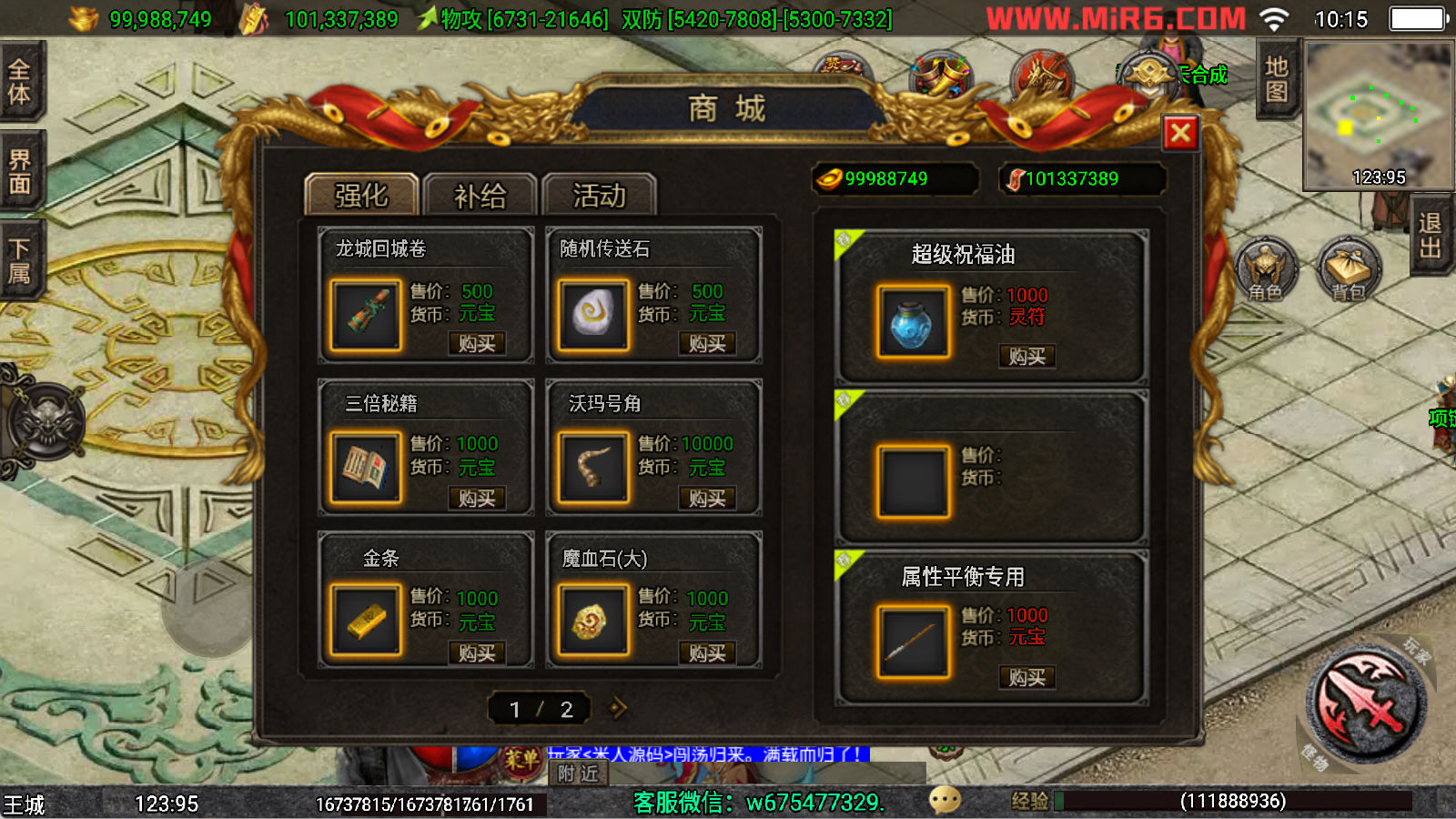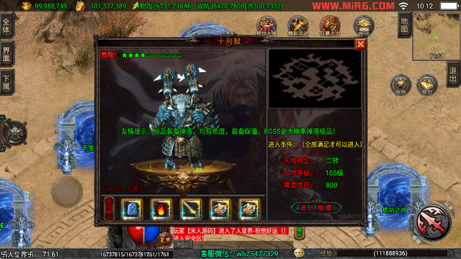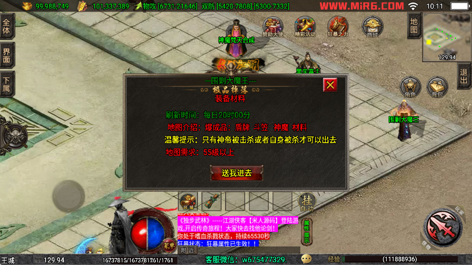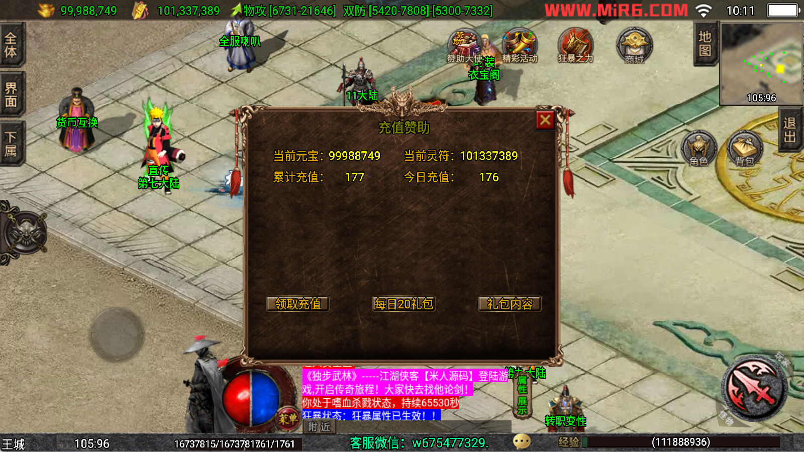 下面我们来测试下游戏里的功能看看。好了,其他功能就自行测试吧。更多的游戏资源可以访问www.MiR6.com下载,我们每款游戏资源均单独制作了独立的视频架设教程,让小白也可以快速上手游戏架设,快来体验自己做GM的乐趣吧!