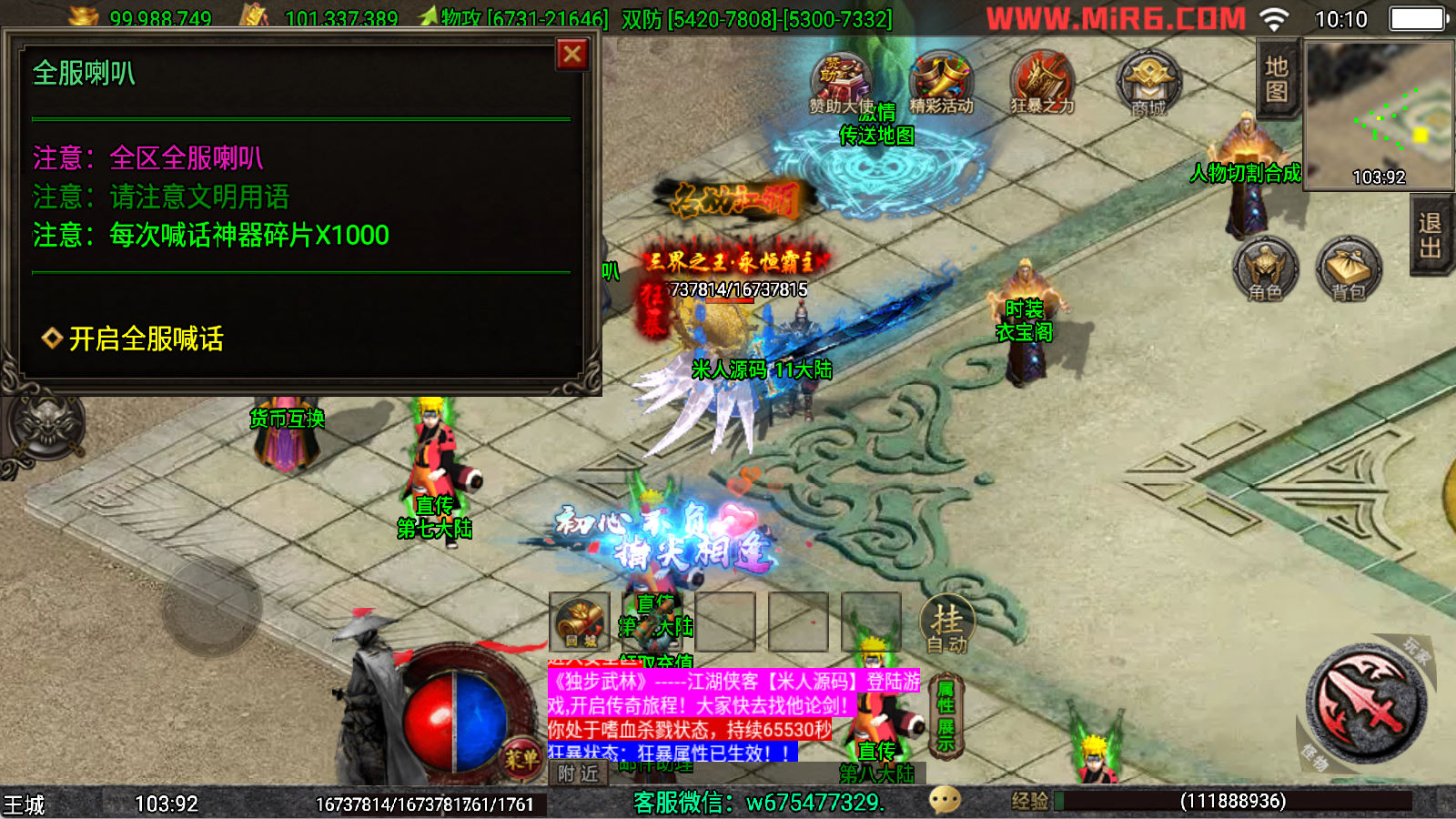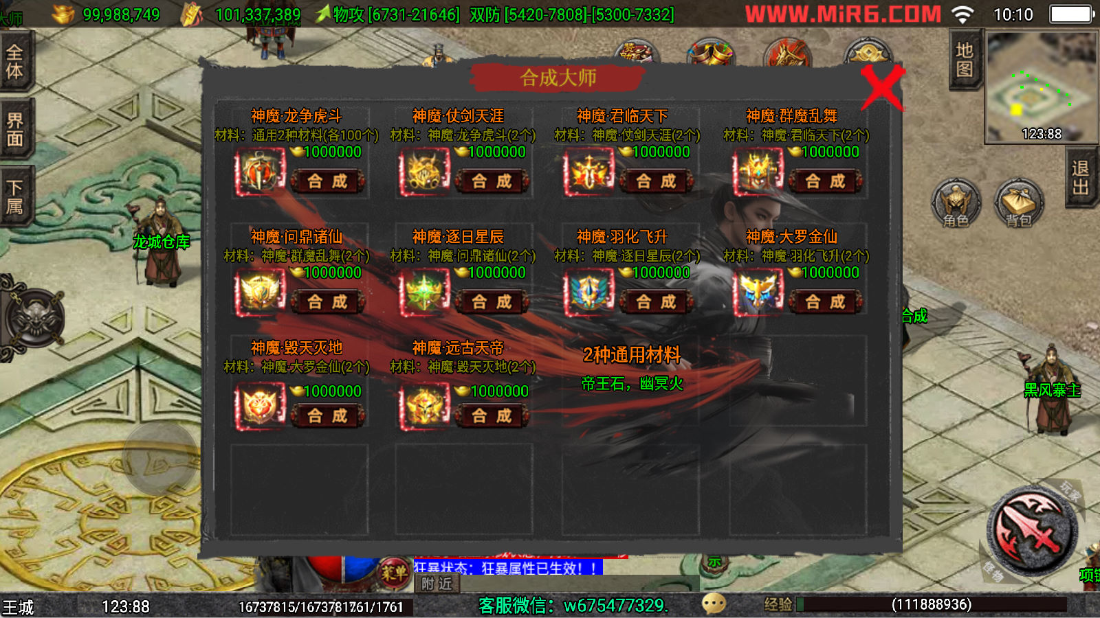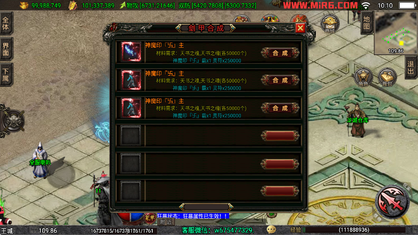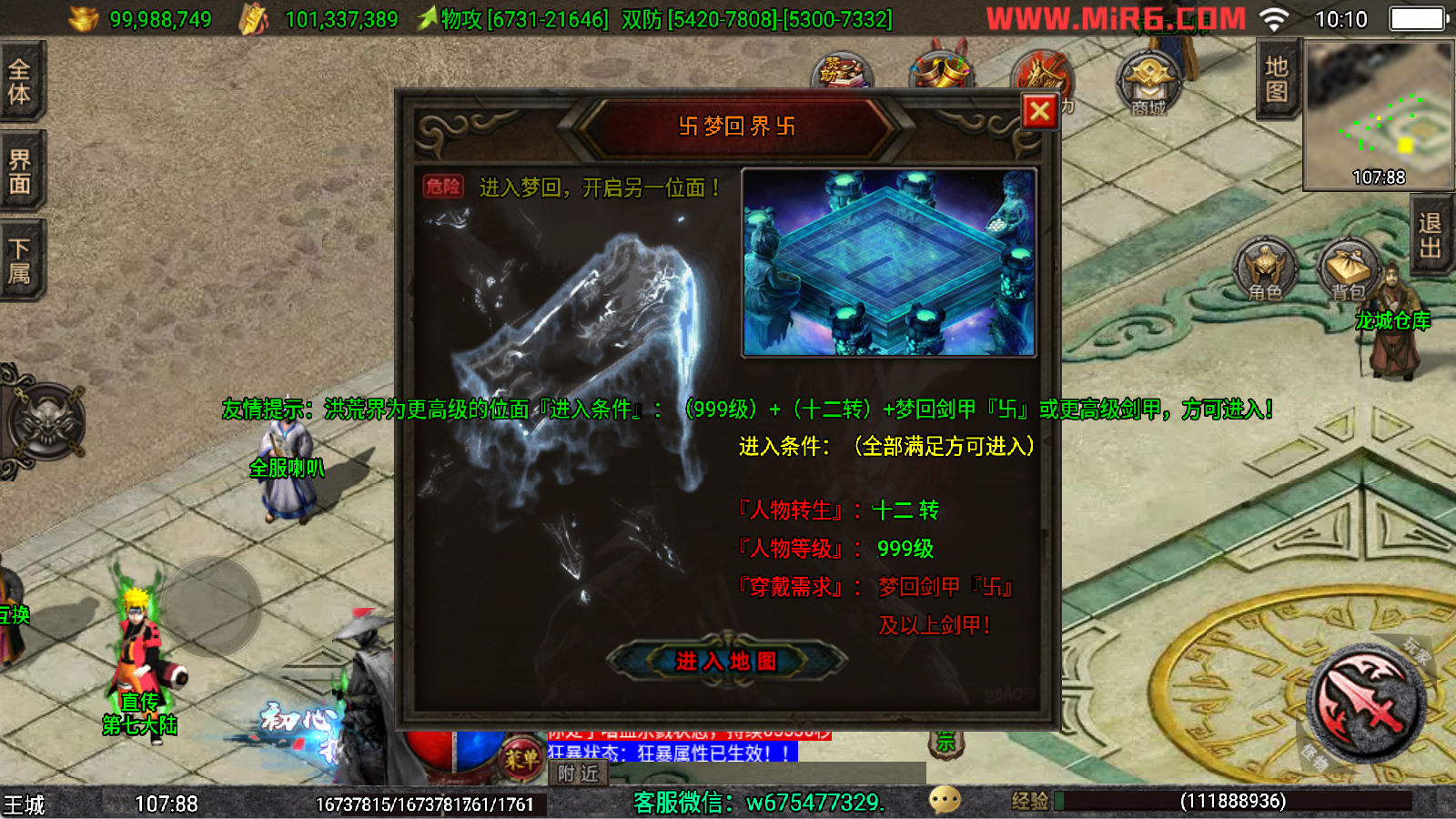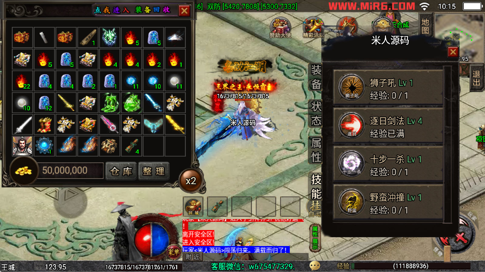 下面我们来测试下游戏里的功能看看。好了,其他功能就自行测试吧。更多的游戏资源可以访问www.MiR6.com下载,我们每款游戏资源均单独制作了独立的视频架设教程,让小白也可以快速上手游戏架设,快来体验自己做GM的乐趣吧!