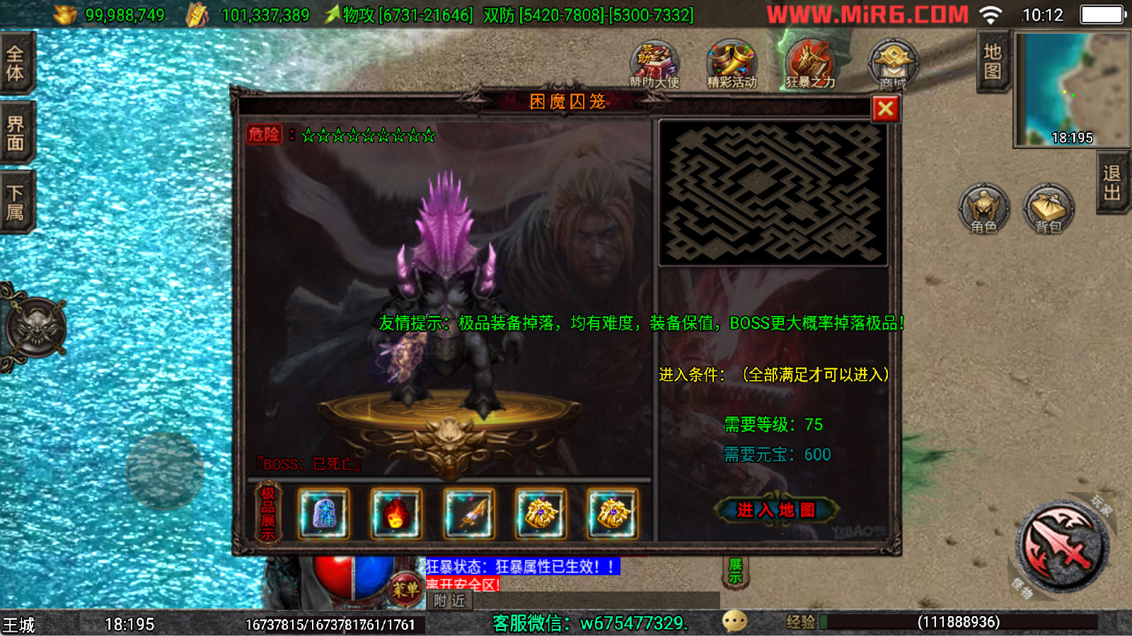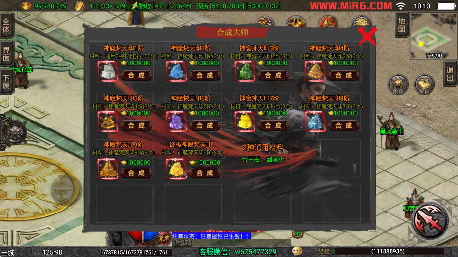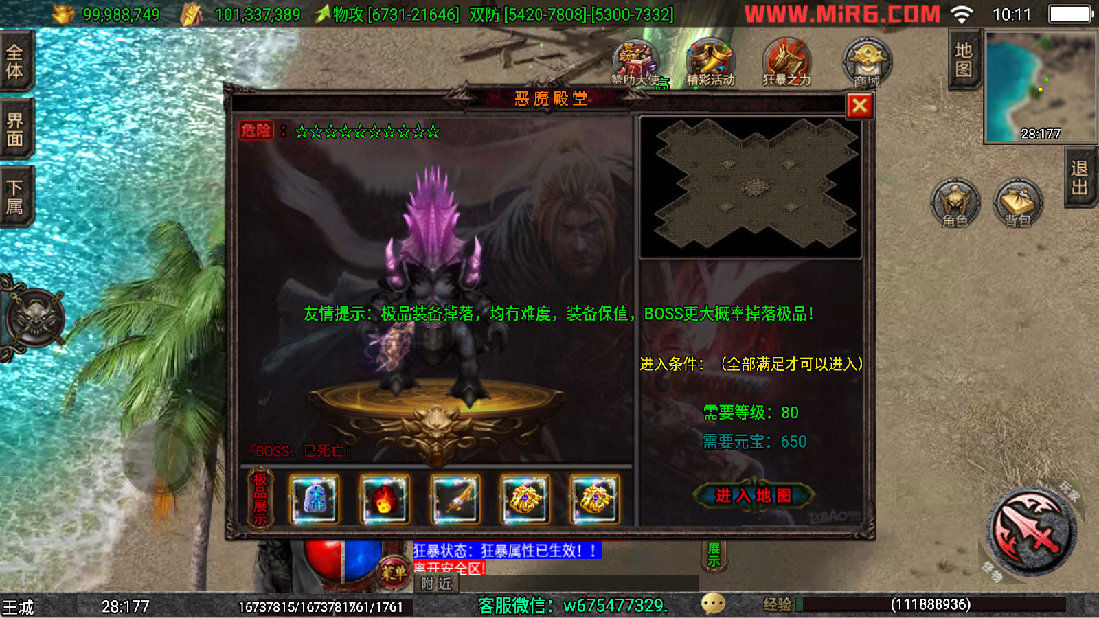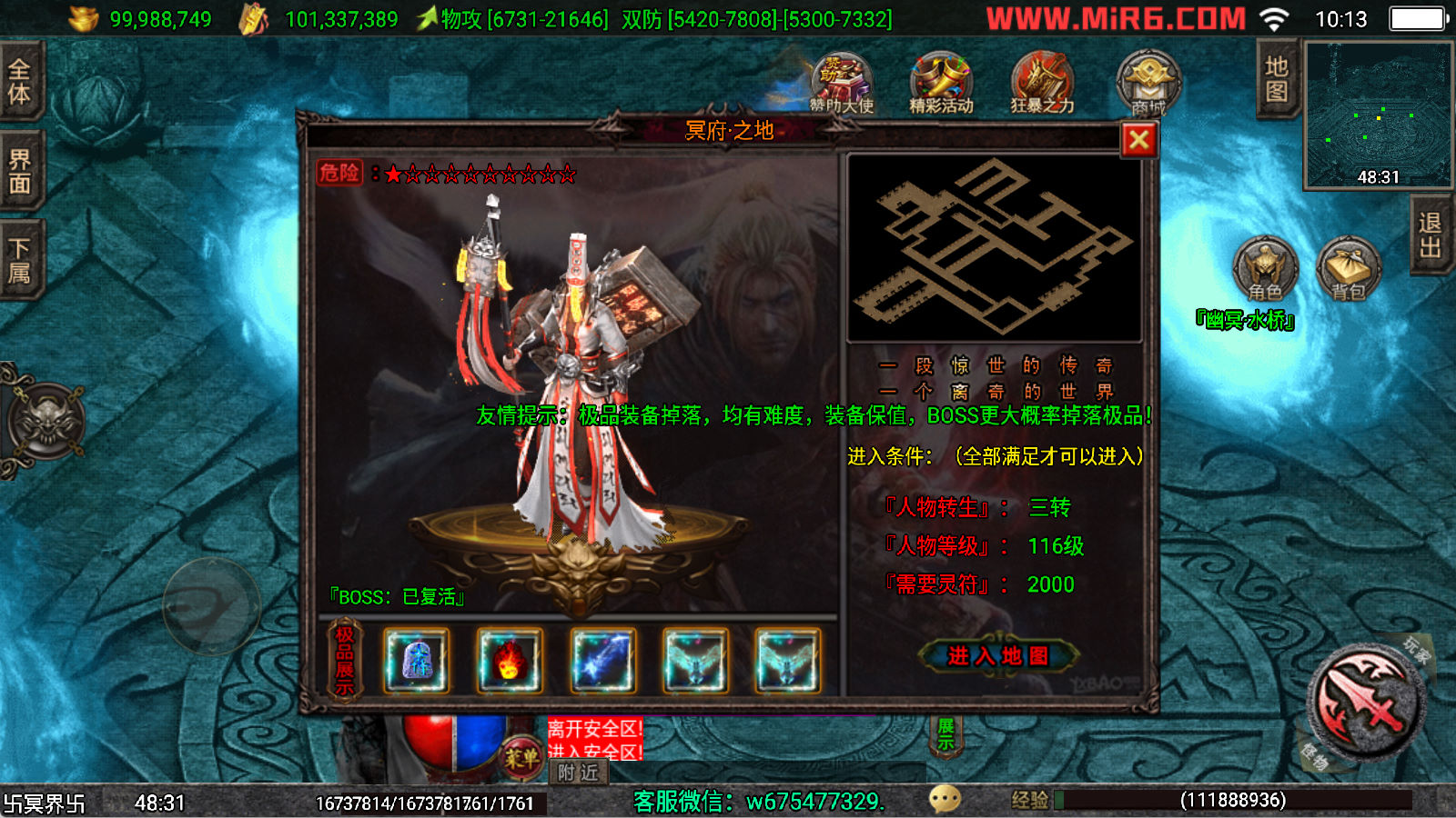下面我们来测试下游戏里的功能看看。好了,其他功能就自行测试吧。更多的游戏资源可以访问www.MiR6.com下载,我们每款游戏资源均单独制作了独立的视频架设教程,让小白也可以快速上手游戏架设,快来体验自己做GM的乐趣吧!
