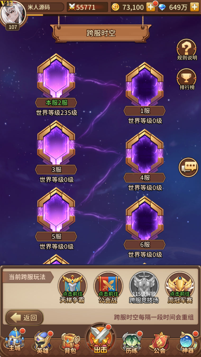 秒开跨服时空:首先满足每个区世界等级到可以跨服的世界等级