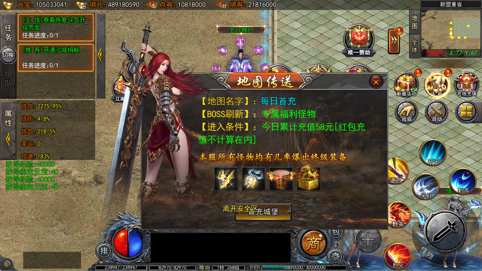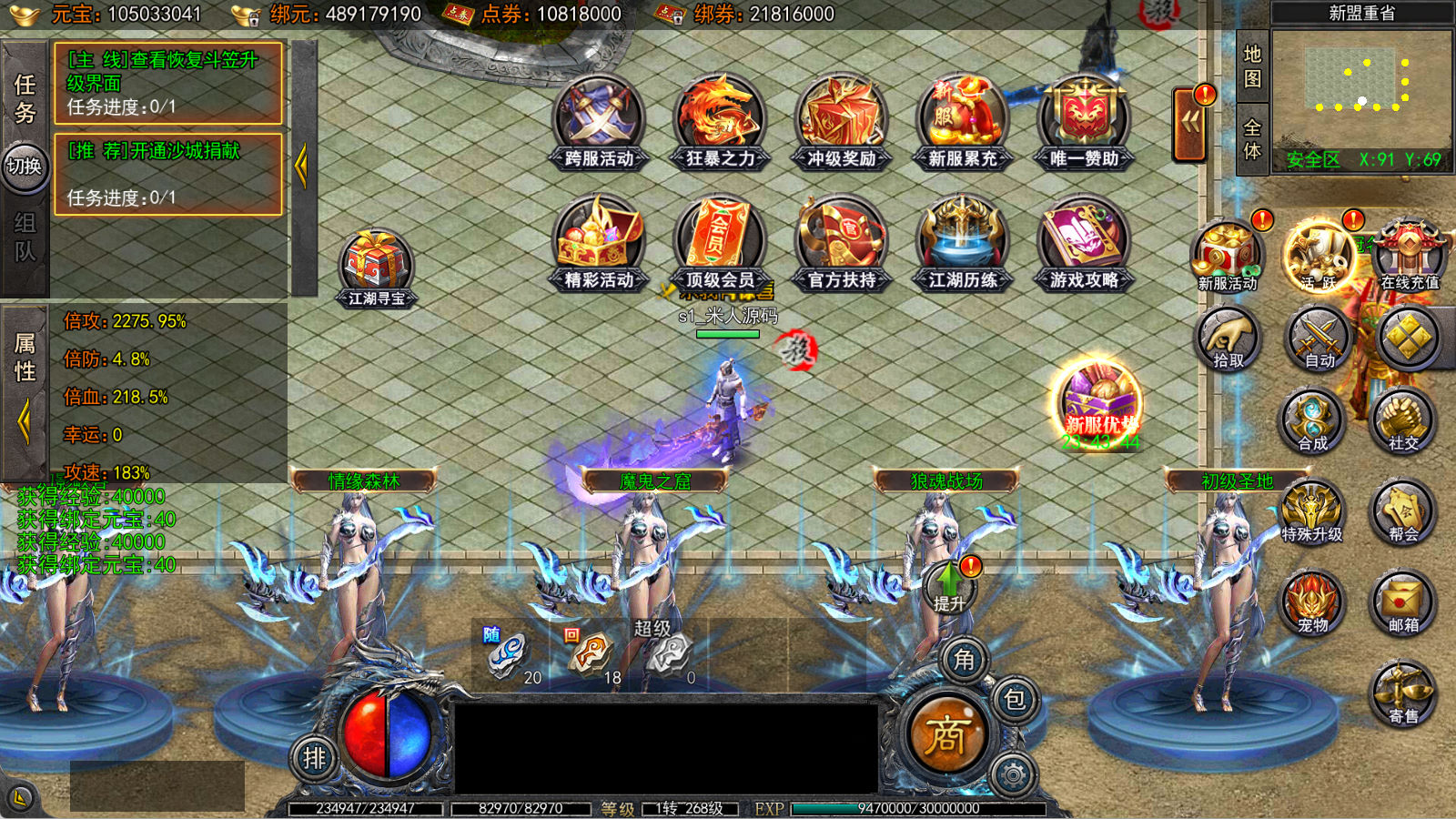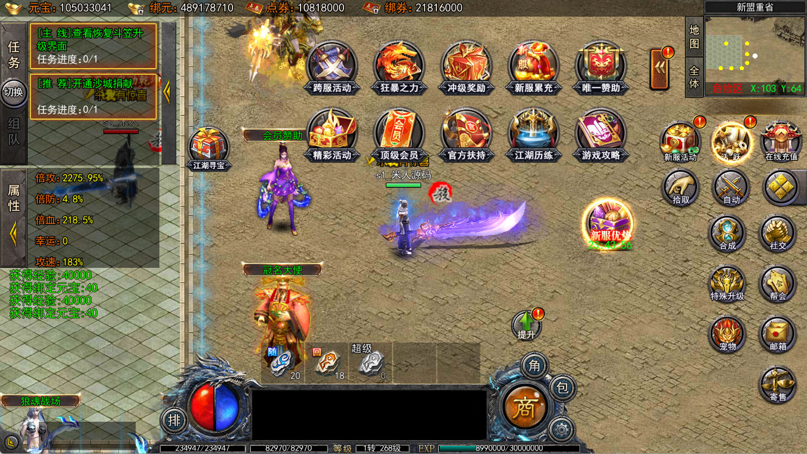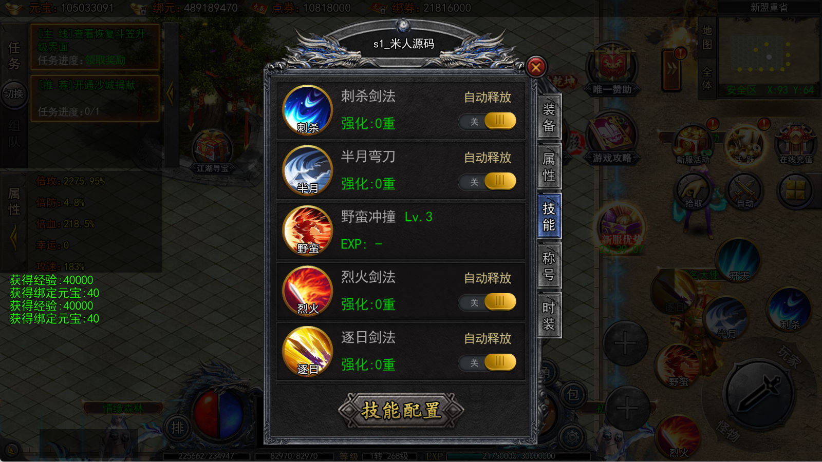 下面我们来测试下游戏里的功能看看吧。好了,其他功能就自行测试吧。更多的游戏资源可以访问www.MiR6.com下载,我们每款游戏资源均单独制作了独立的视频架设教程,让小白也可以快速上手游戏架设,快来体验自己做GM的乐趣吧!