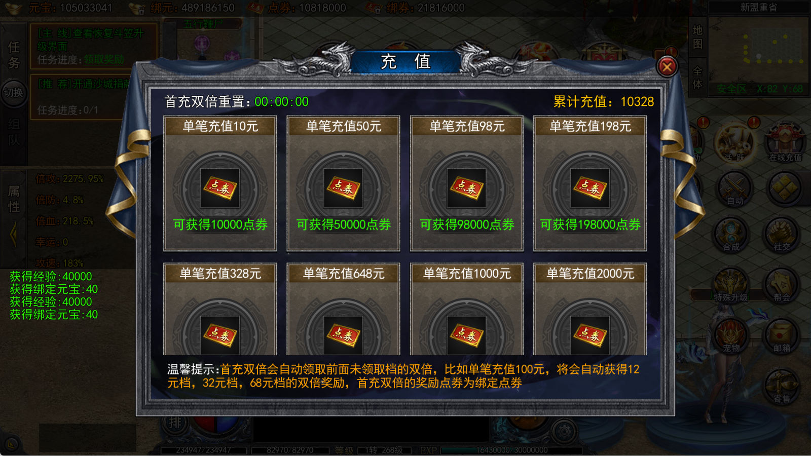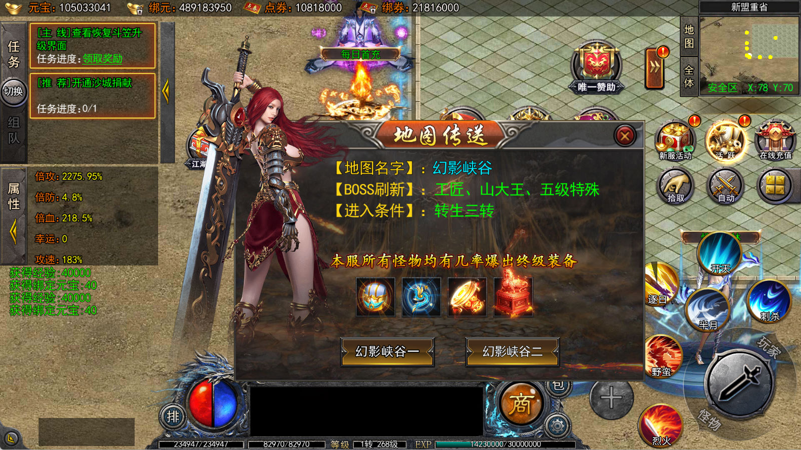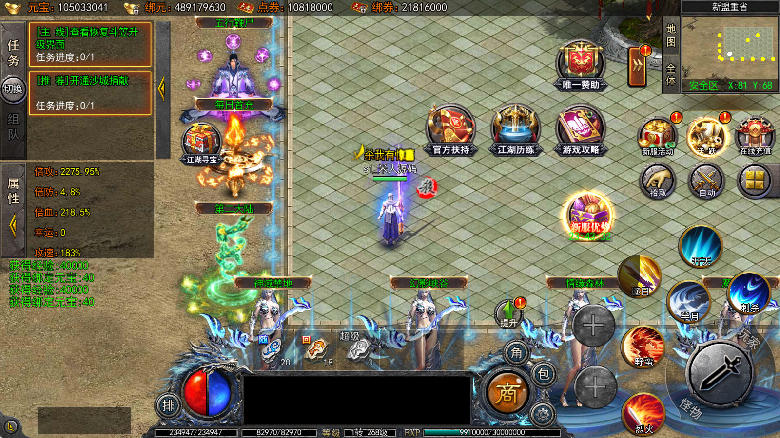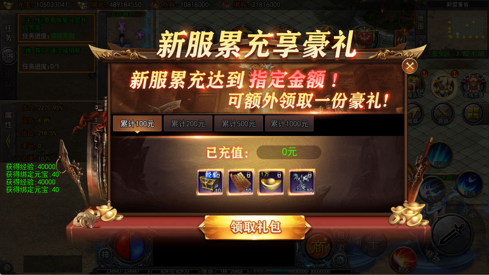 下面我们来测试下游戏里的功能看看吧。好了,其他功能就自行测试吧。更多的游戏资源可以访问www.MiR6.com下载,我们每款游戏资源均单独制作了独立的视频架设教程,让小白也可以快速上手游戏架设,快来体验自己做GM的乐趣吧!