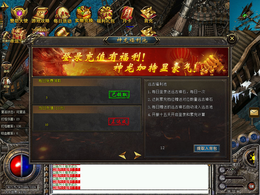 注意:进入游戏后会黑屏是正常的,耐心等待补丁微端远程更新。速度跟你自己的服务器宽带相关。宽带越高那么进入游戏越快。