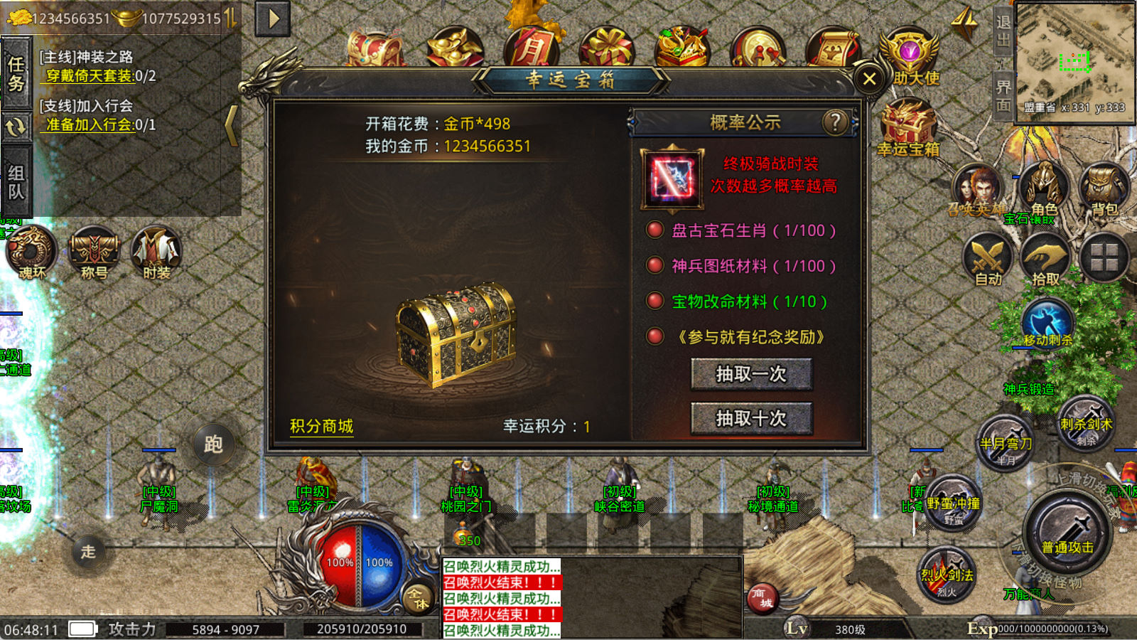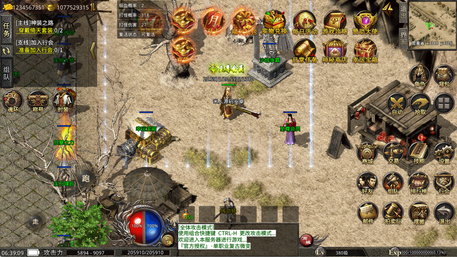 修改完成,我们在回编译+签名生成新的安卓APK客户端。编译完成,我们把桌面上新生成的安卓客户端安装到安卓模拟器里进入游戏试试看。