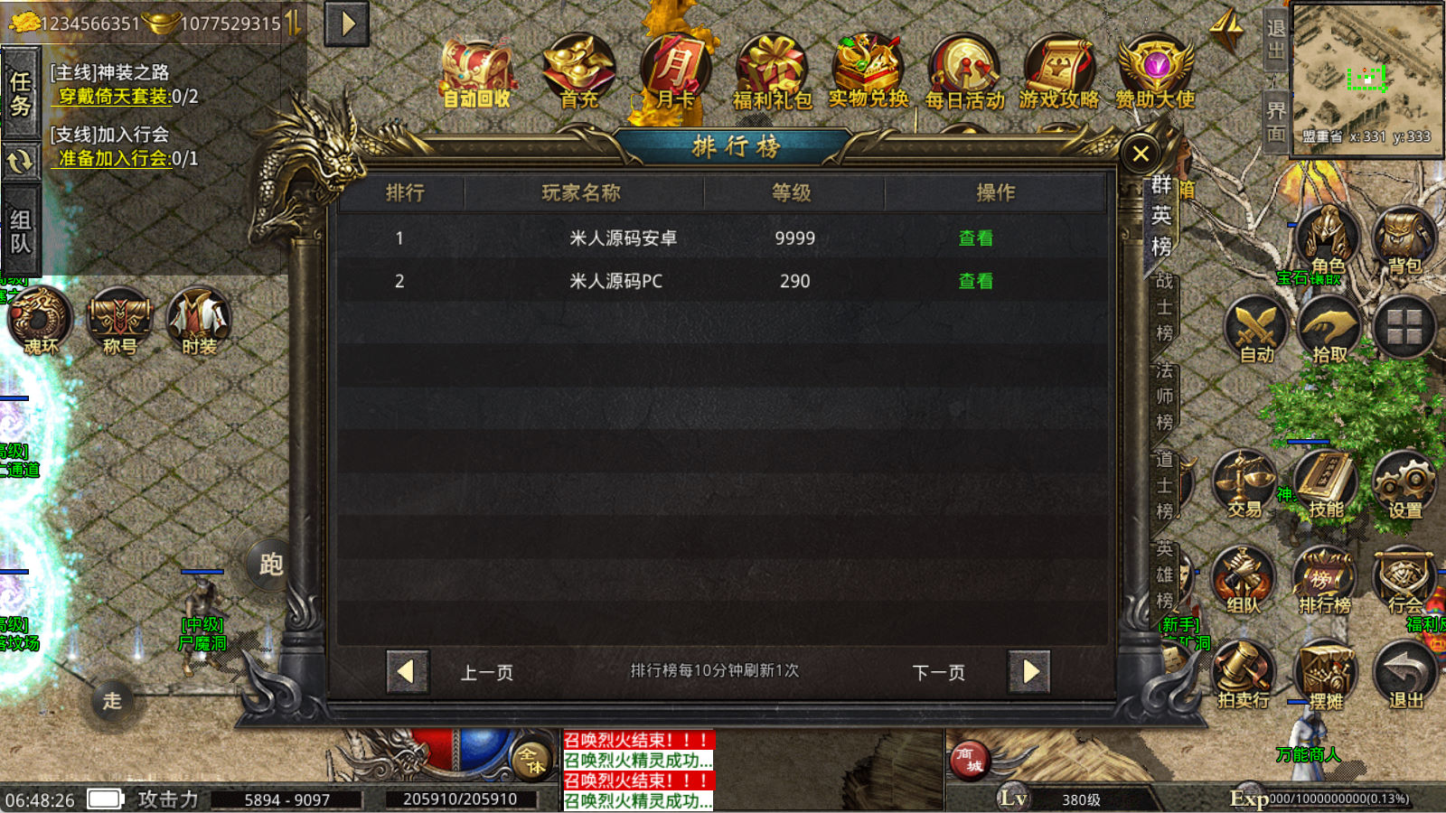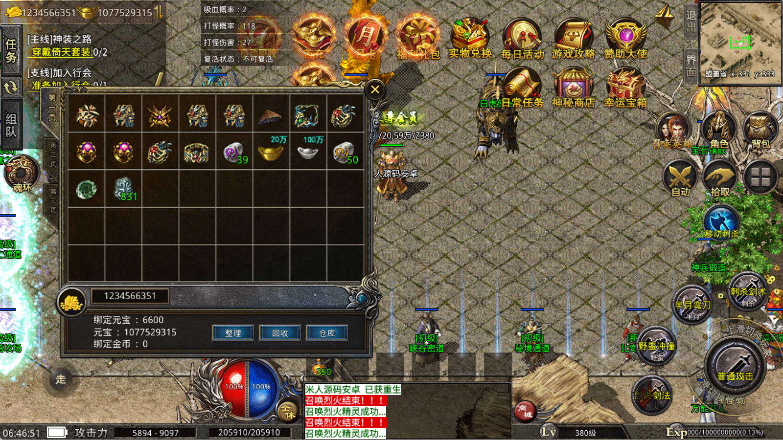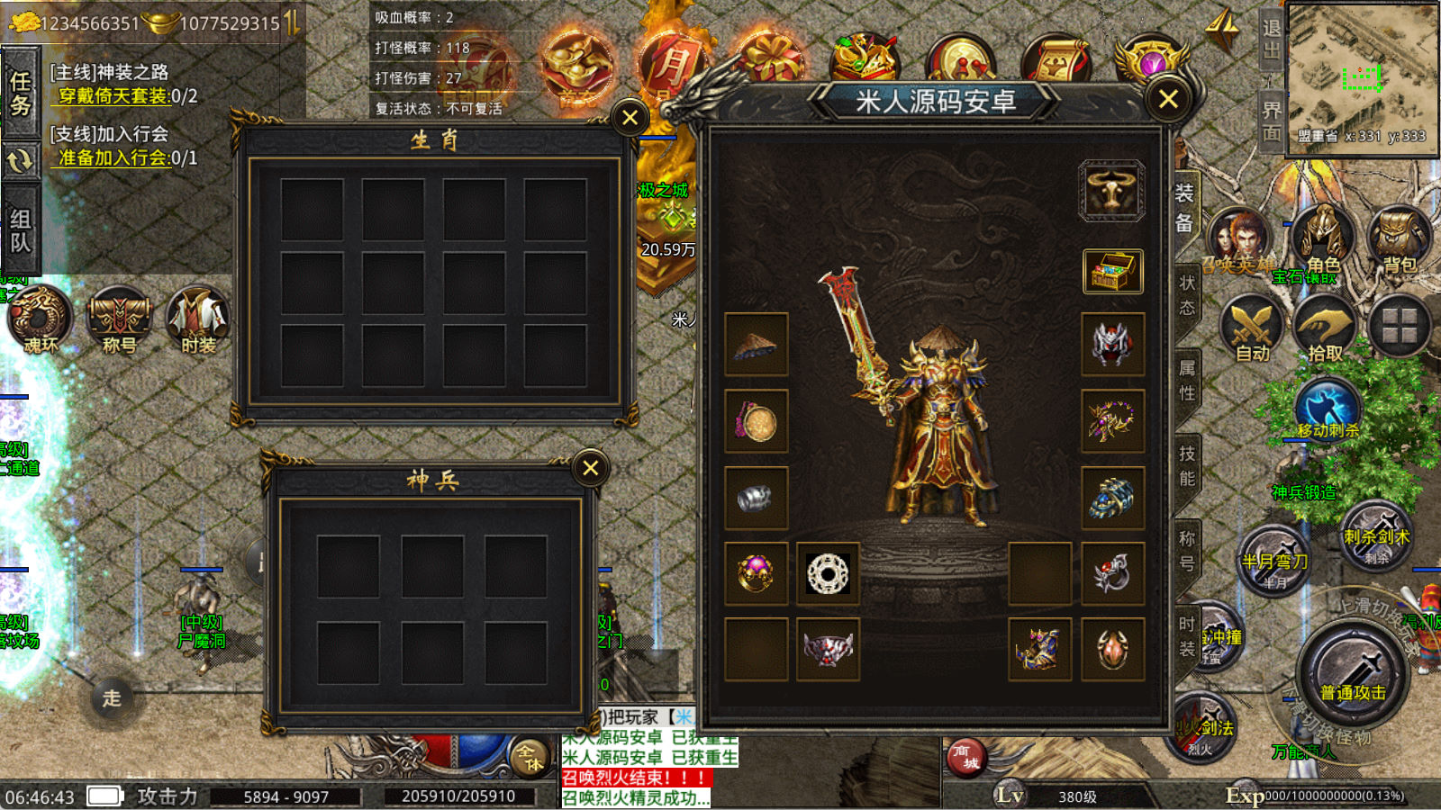 首先我们测试下PC客户端,下面我们来测试下安卓客户端里的功能看看。好了,其他功能就自行测试吧。更多的游戏资源可以访问www.MiR6.com下载,我们每款游戏资源均单独制作了独立的视频架设教程,让小白也可以快速上手游戏架设,快来体验自己做GM的乐趣吧!
