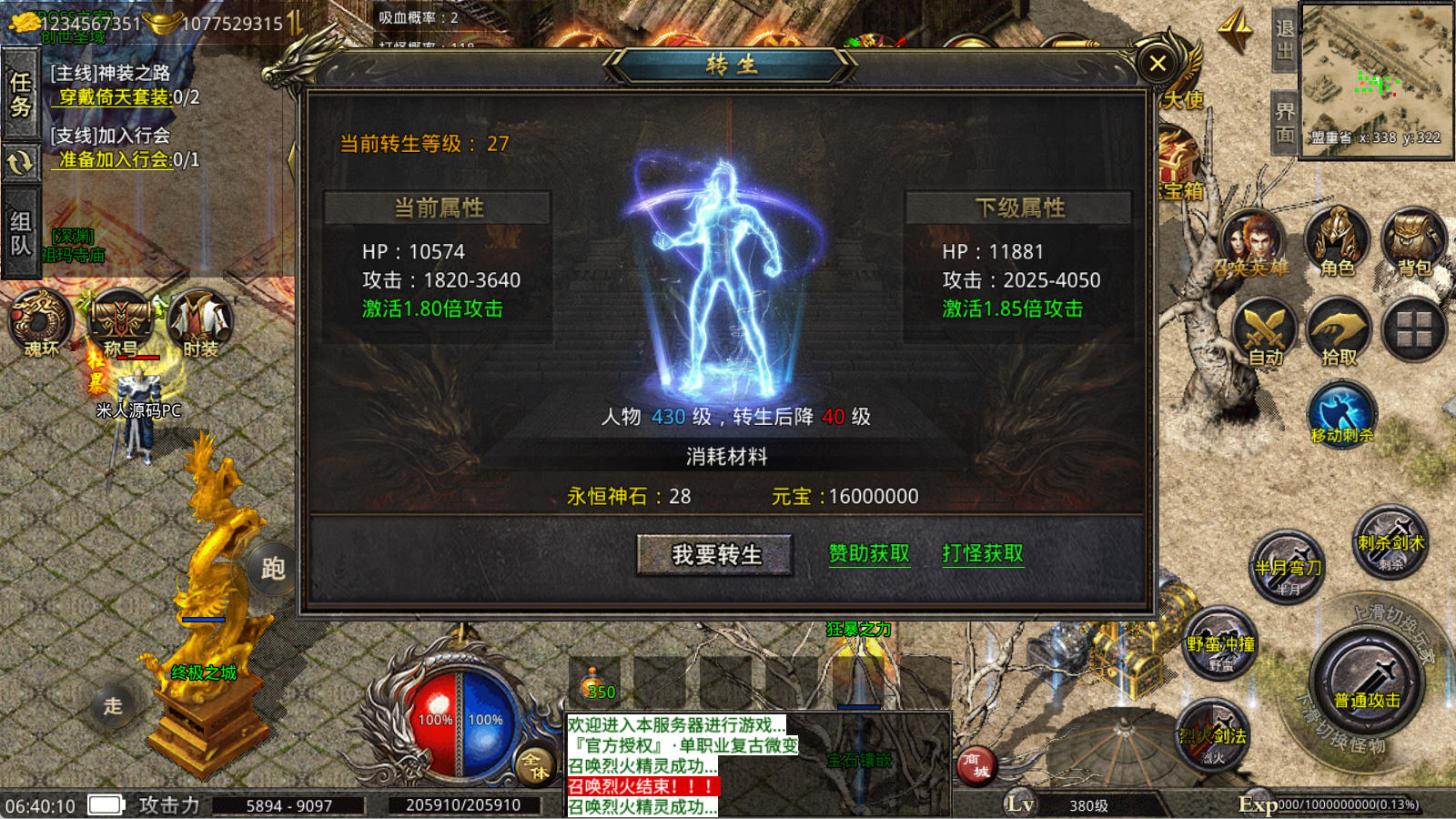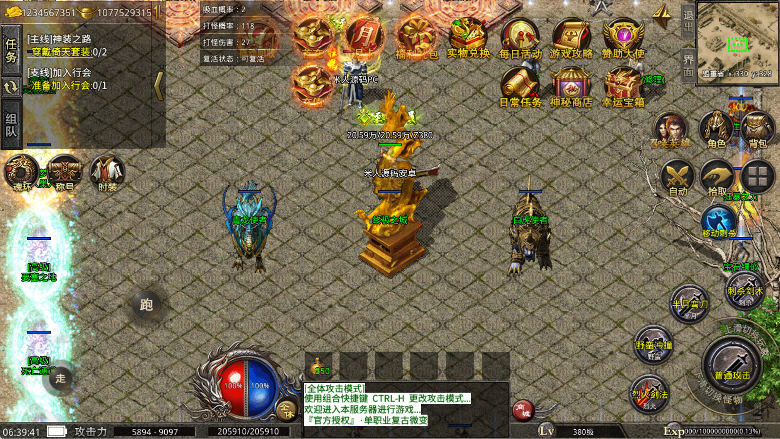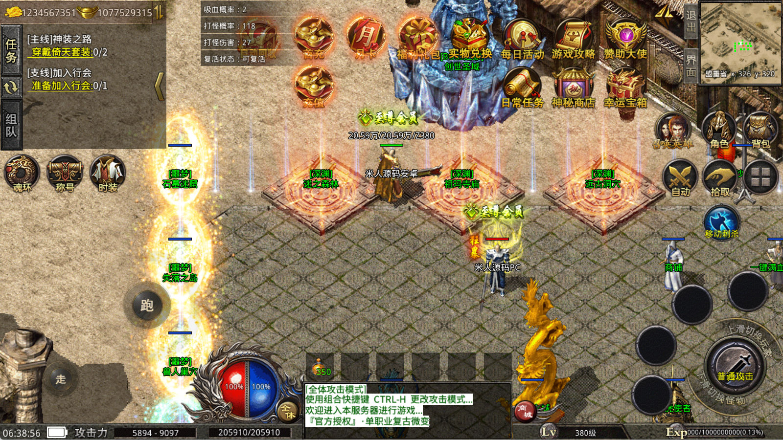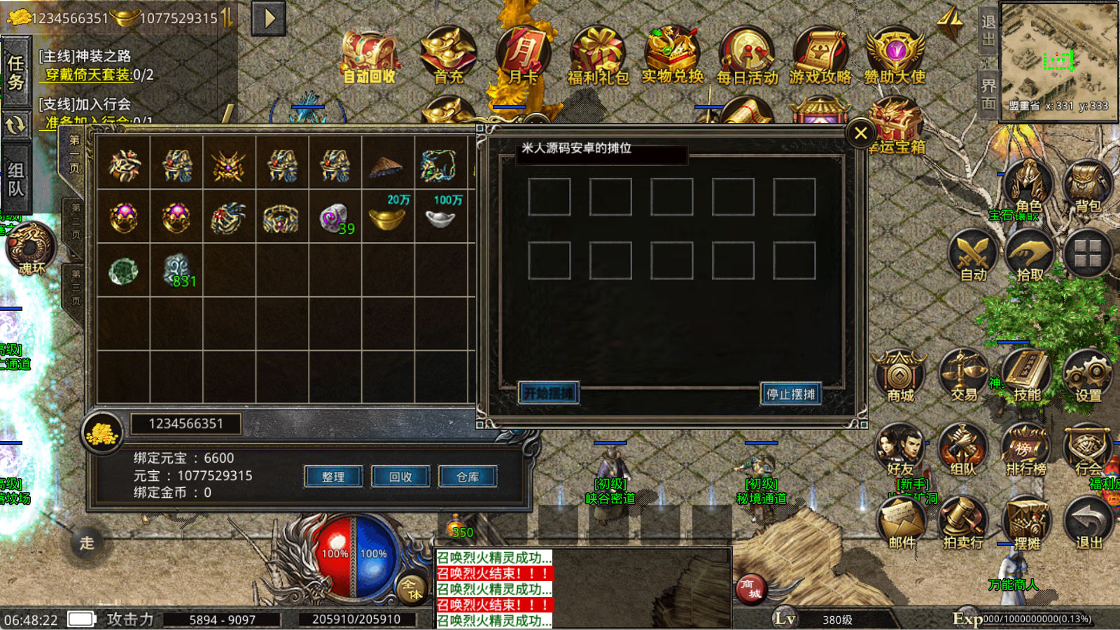 首先我们测试下PC客户端,下面我们来测试下安卓客户端里的功能看看。好了,其他功能就自行测试吧。更多的游戏资源可以访问www.MiR6.com下载,我们每款游戏资源均单独制作了独立的视频架设教程,让小白也可以快速上手游戏架设,快来体验自己做GM的乐趣吧!