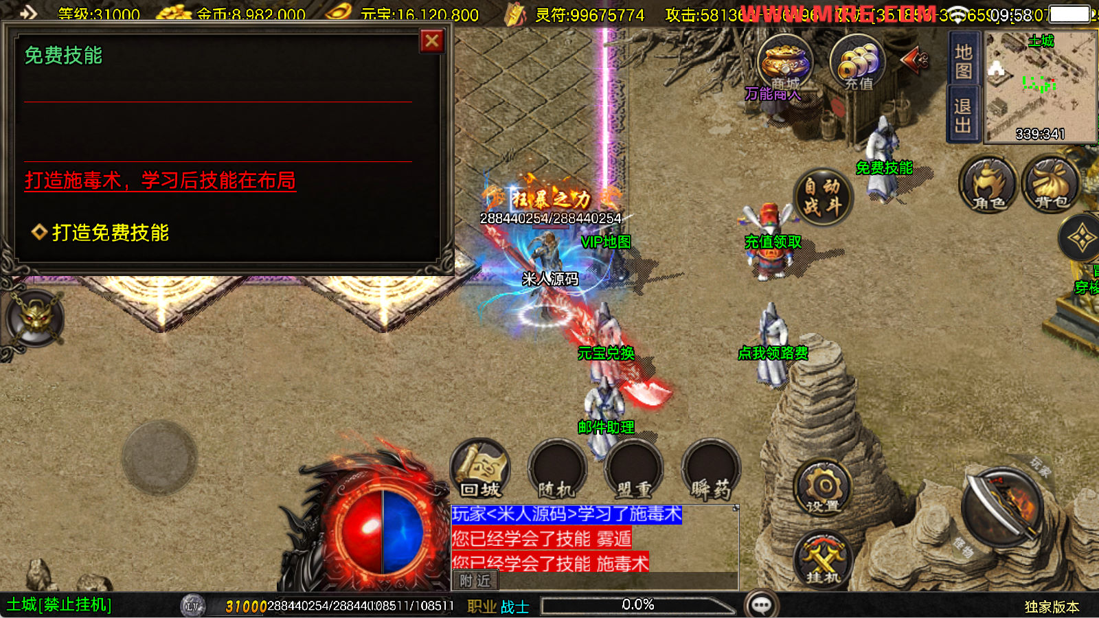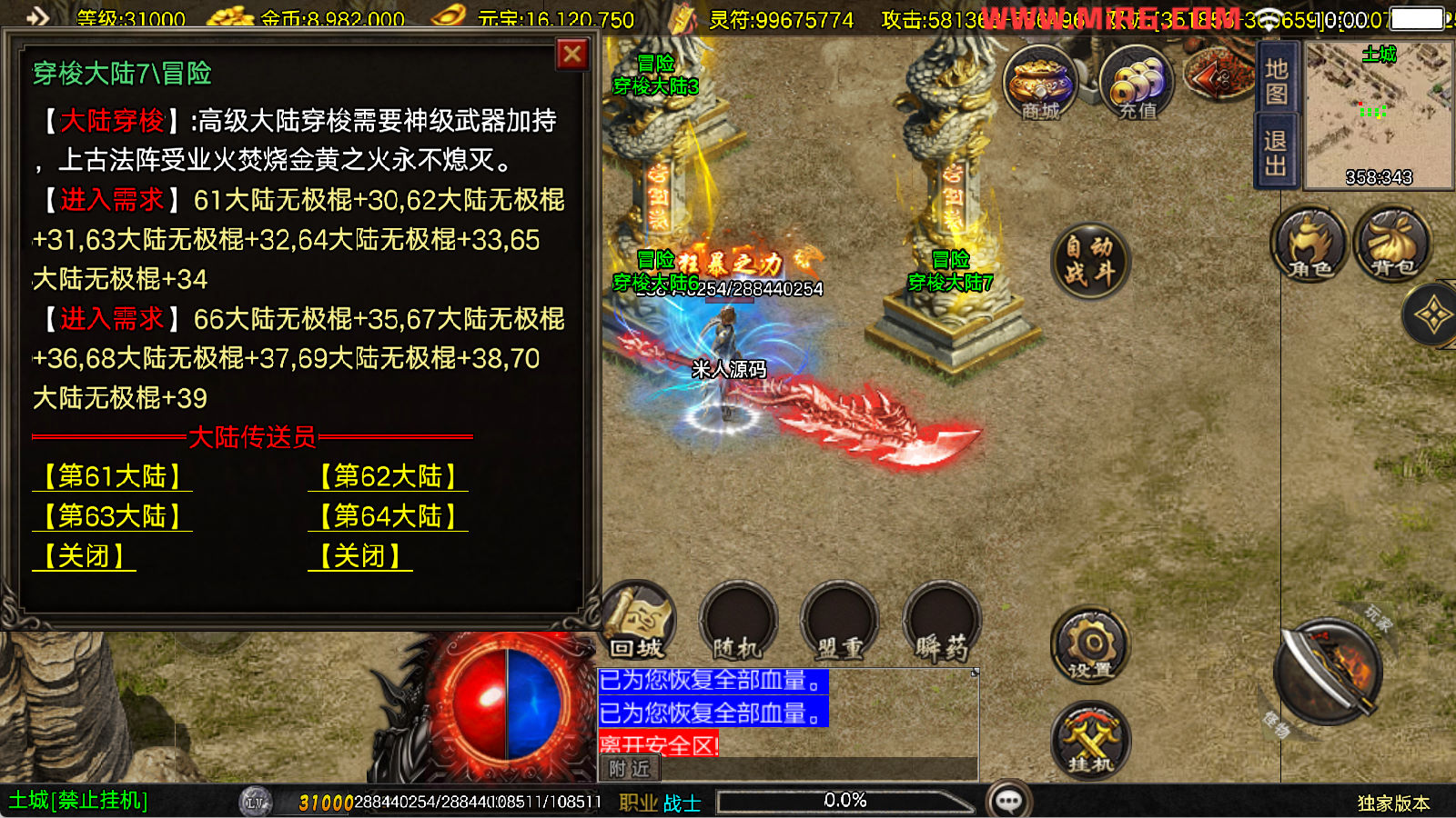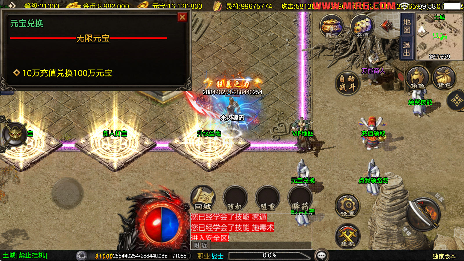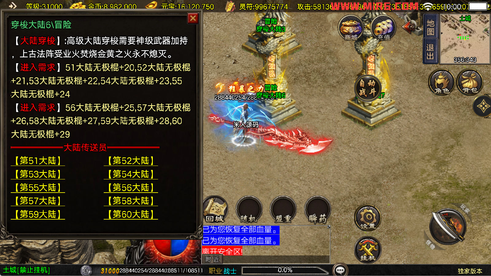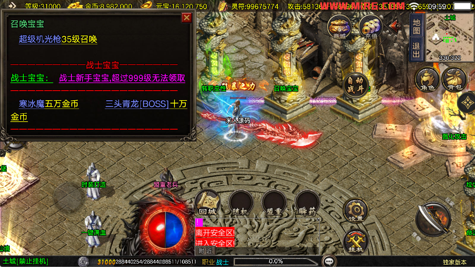 下面我们来测试下游戏里的功能看看。好了,其他功能就自行测试吧。更多的游戏资源可以访问www.MiR6.com下载,我们每款游戏资源均单独制作了独立的视频架设教程,让小白也可以快速上手游戏架设,快来体验自己做GM的乐趣吧!