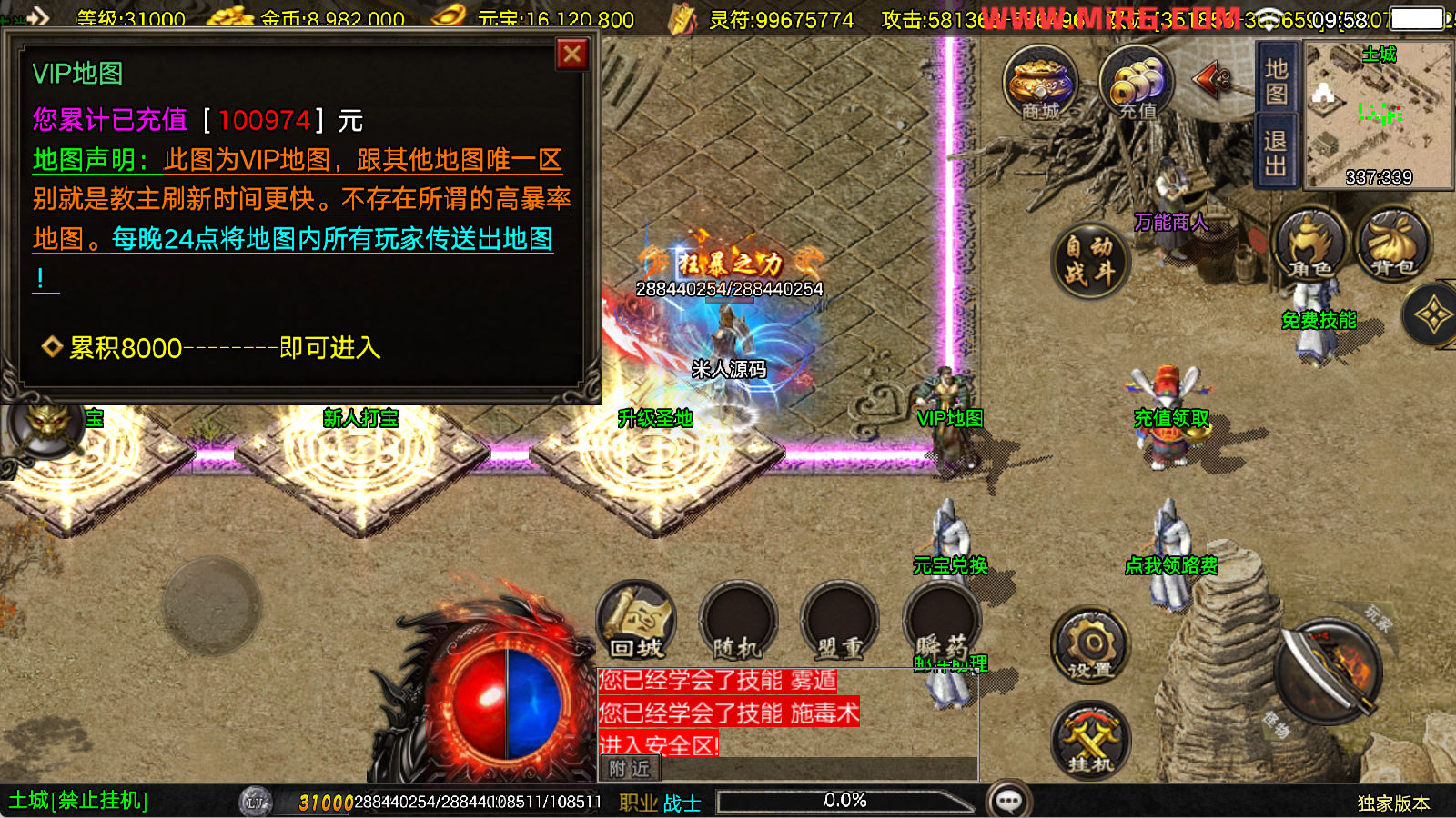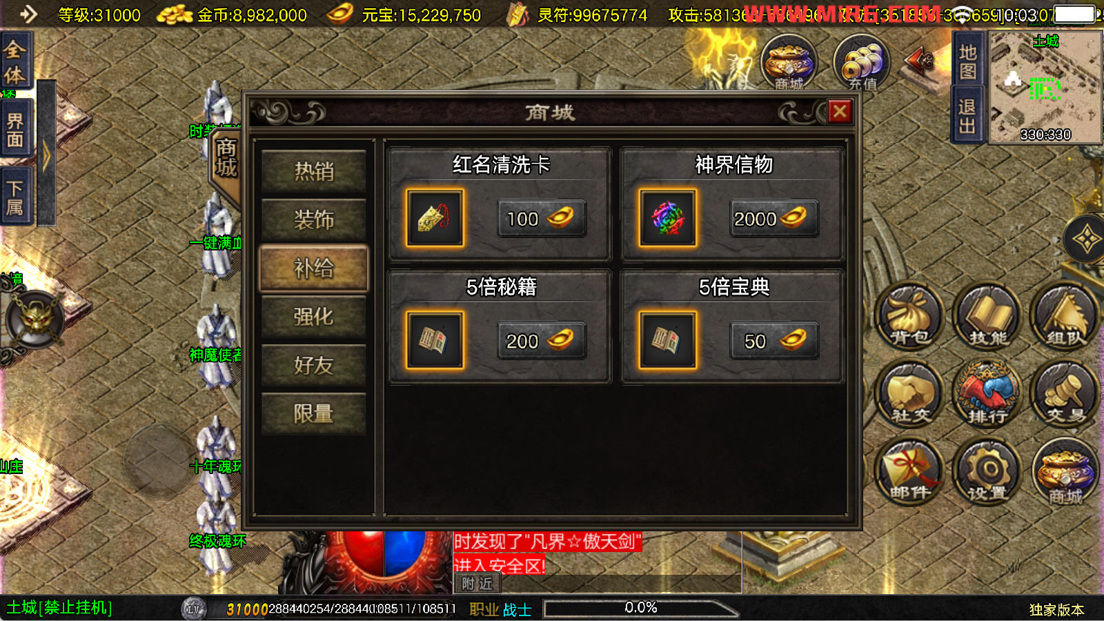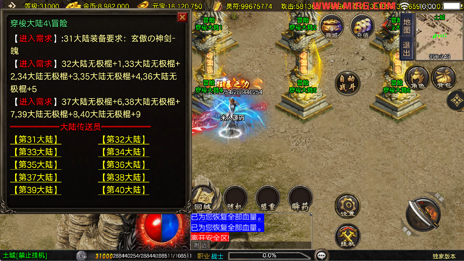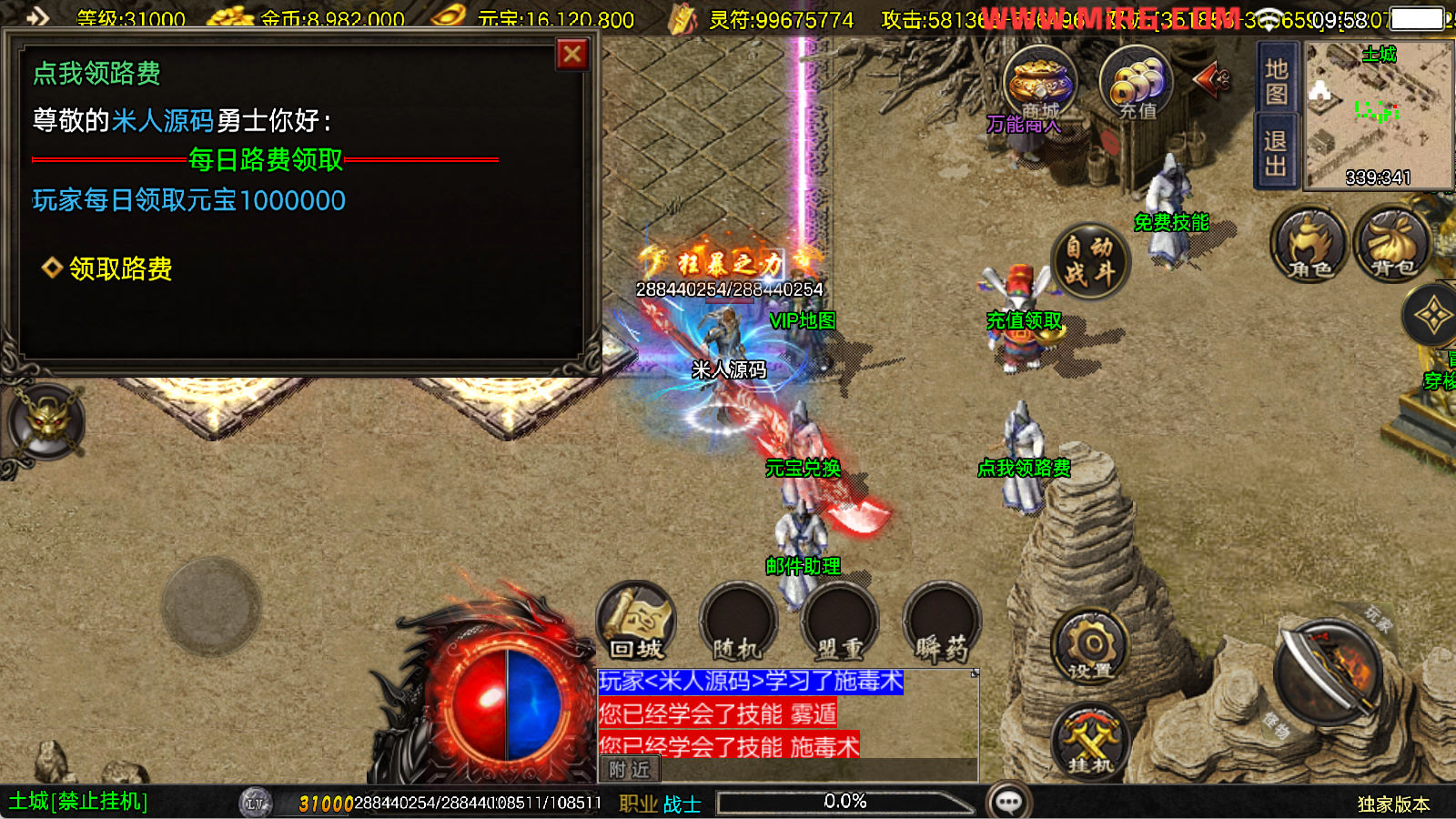 下面我们来测试下游戏里的功能看看。好了,其他功能就自行测试吧。更多的游戏资源可以访问www.MiR6.com下载,我们每款游戏资源均单独制作了独立的视频架设教程,让小白也可以快速上手游戏架设,快来体验自己做GM的乐趣吧!