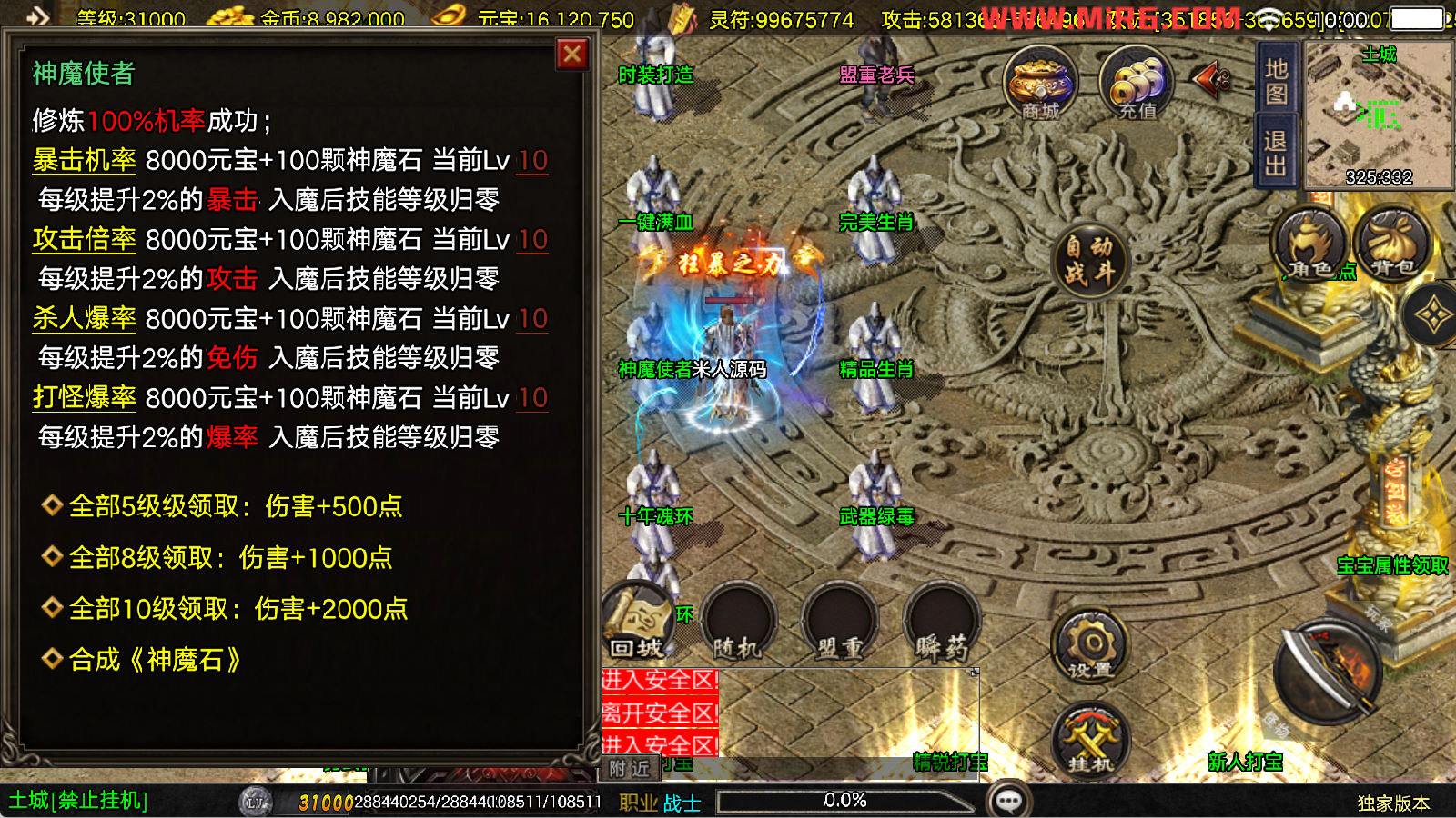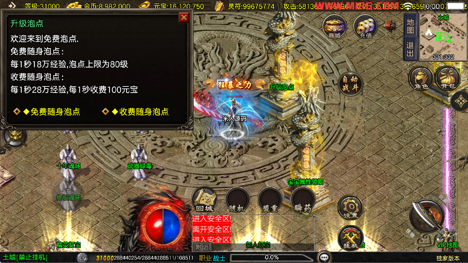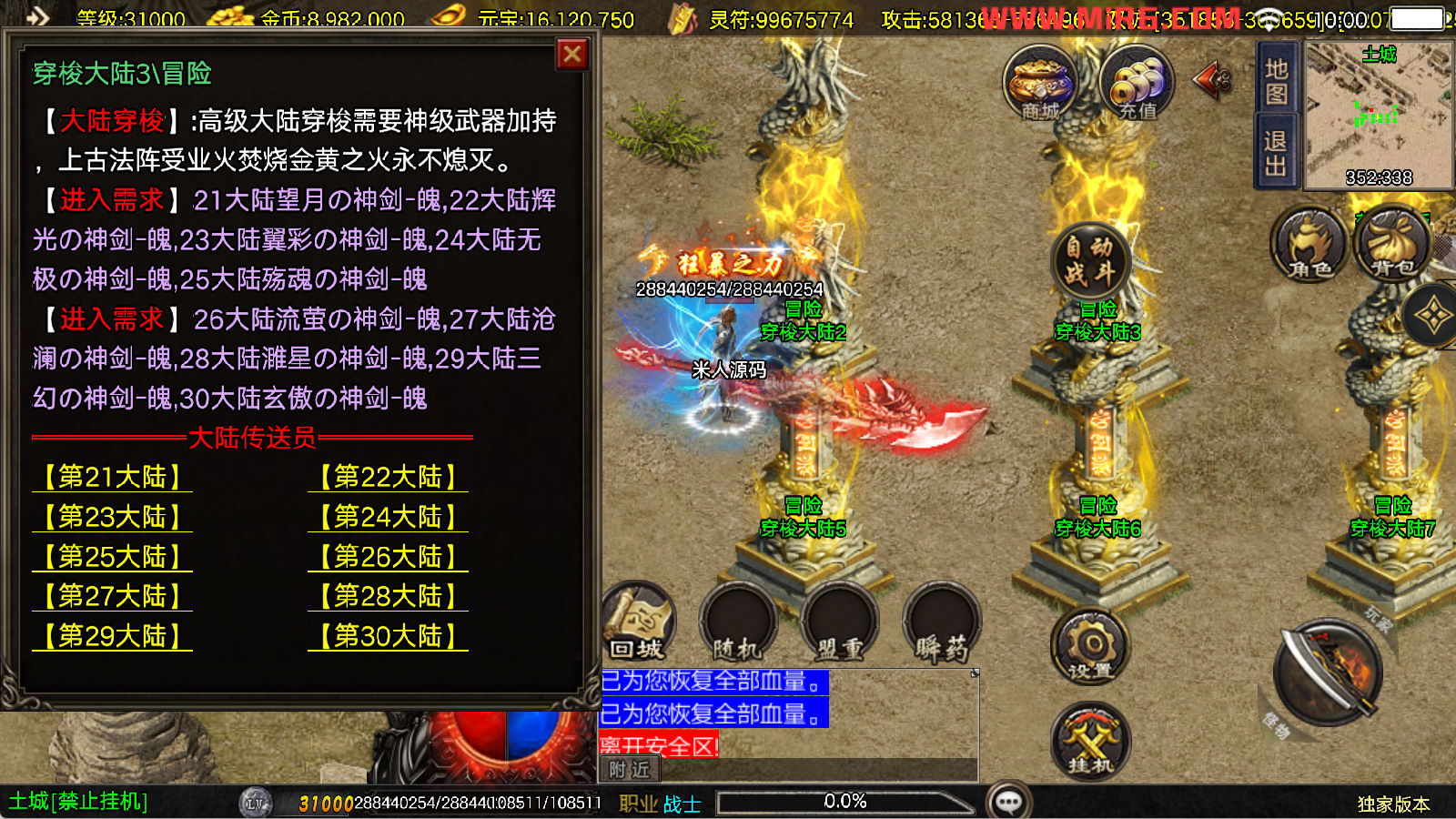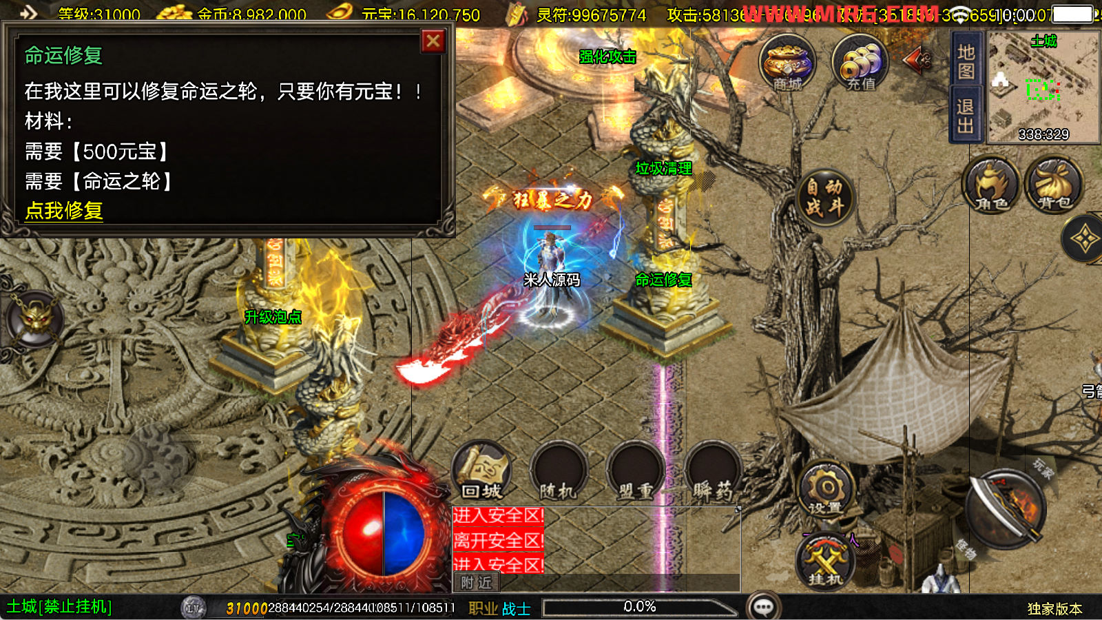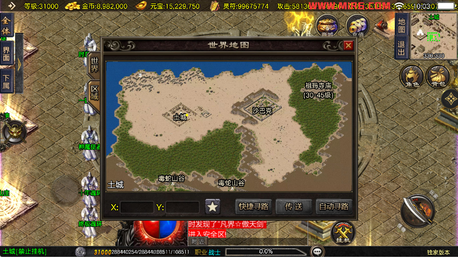 下面我们来测试下游戏里的功能看看。好了,其他功能就自行测试吧。更多的游戏资源可以访问www.MiR6.com下载,我们每款游戏资源均单独制作了独立的视频架设教程,让小白也可以快速上手游戏架设,快来体验自己做GM的乐趣吧!