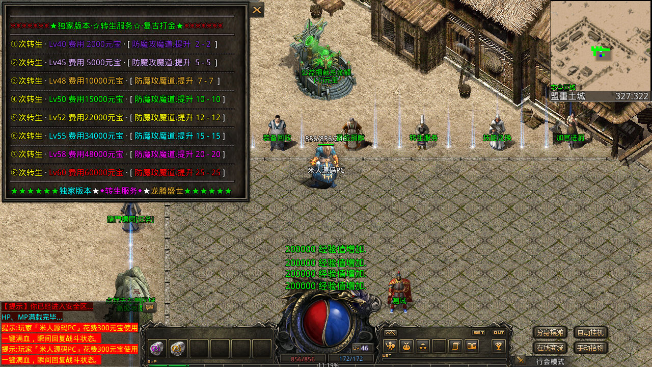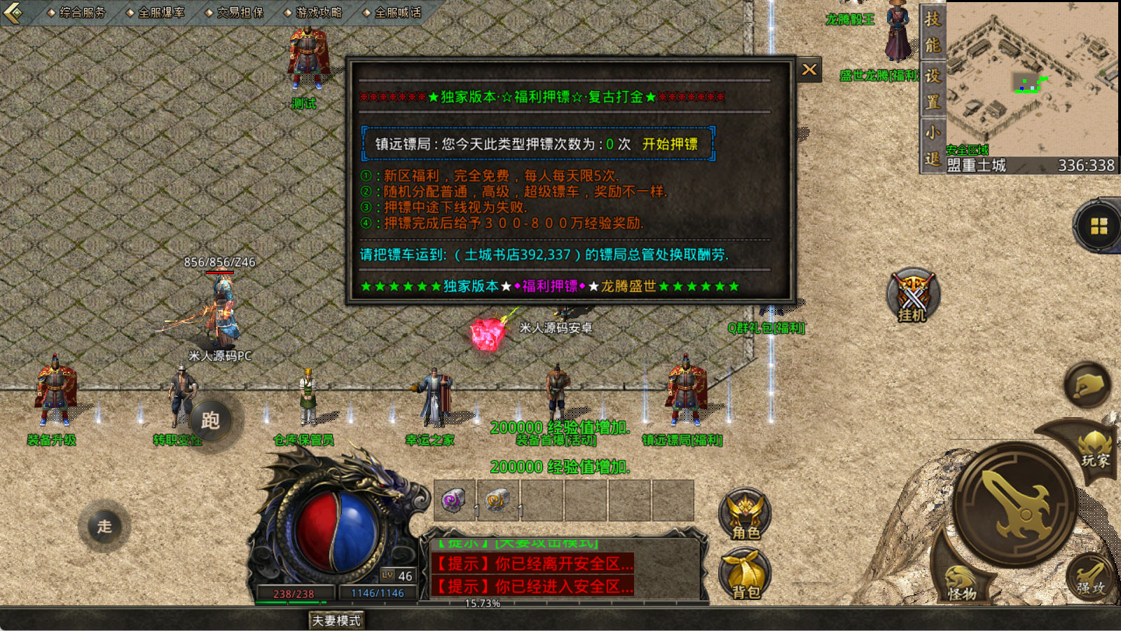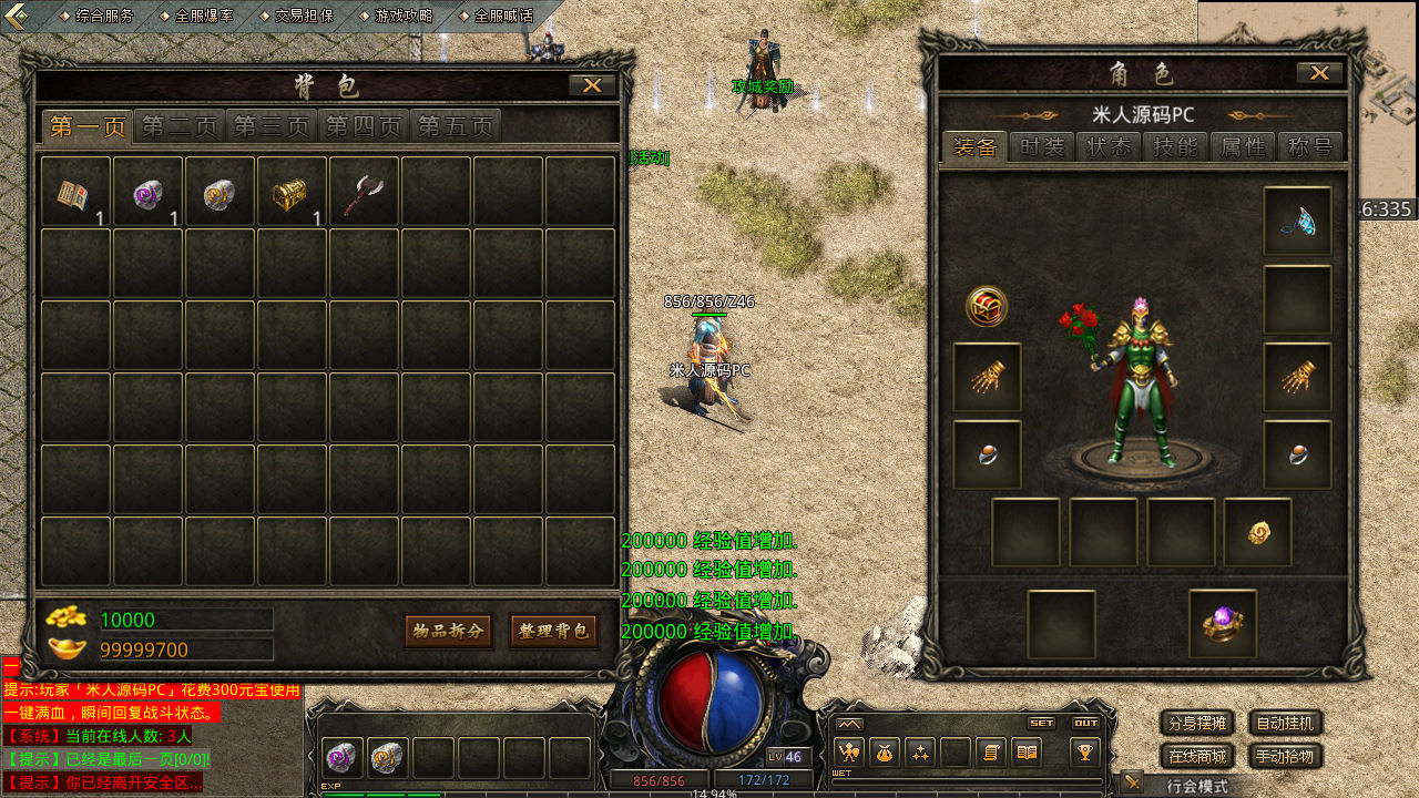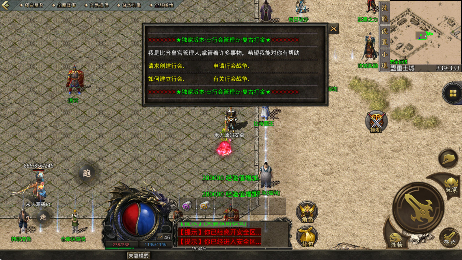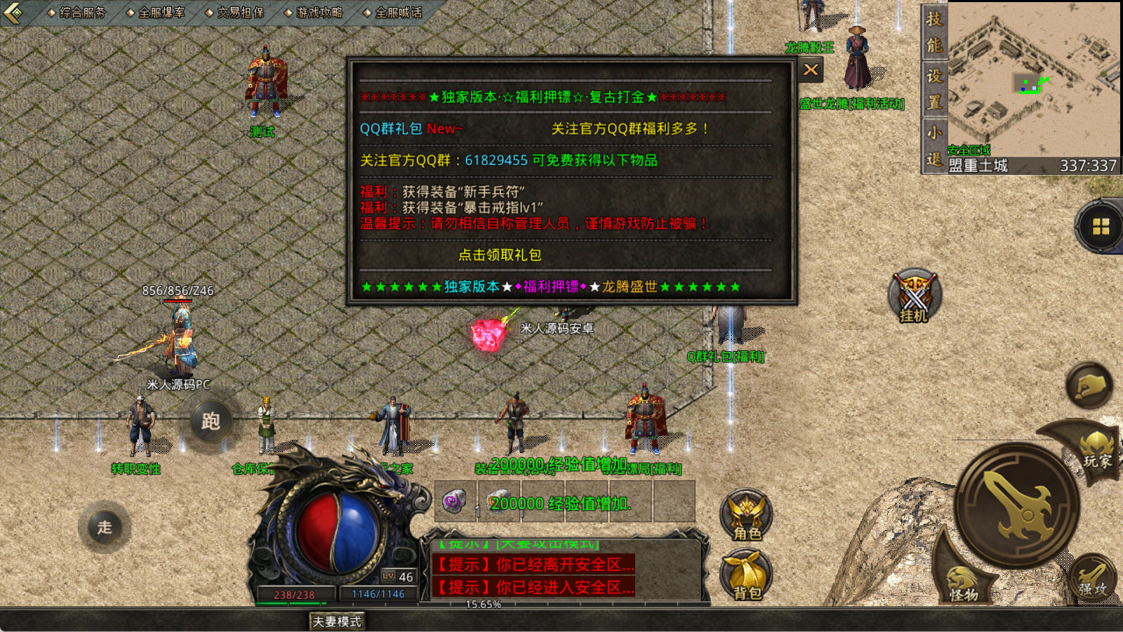 下面我们分别测试下PC和安卓客户端里的功能看看。好了,其他功能就自行测试吧。更多的游戏资源可以访问www.MiR6.com下载,我们每款游戏资源均单独制作了独立的视频架设教程,让小白也可以快速上手游戏架设,快来体验自己做GM的乐趣吧!