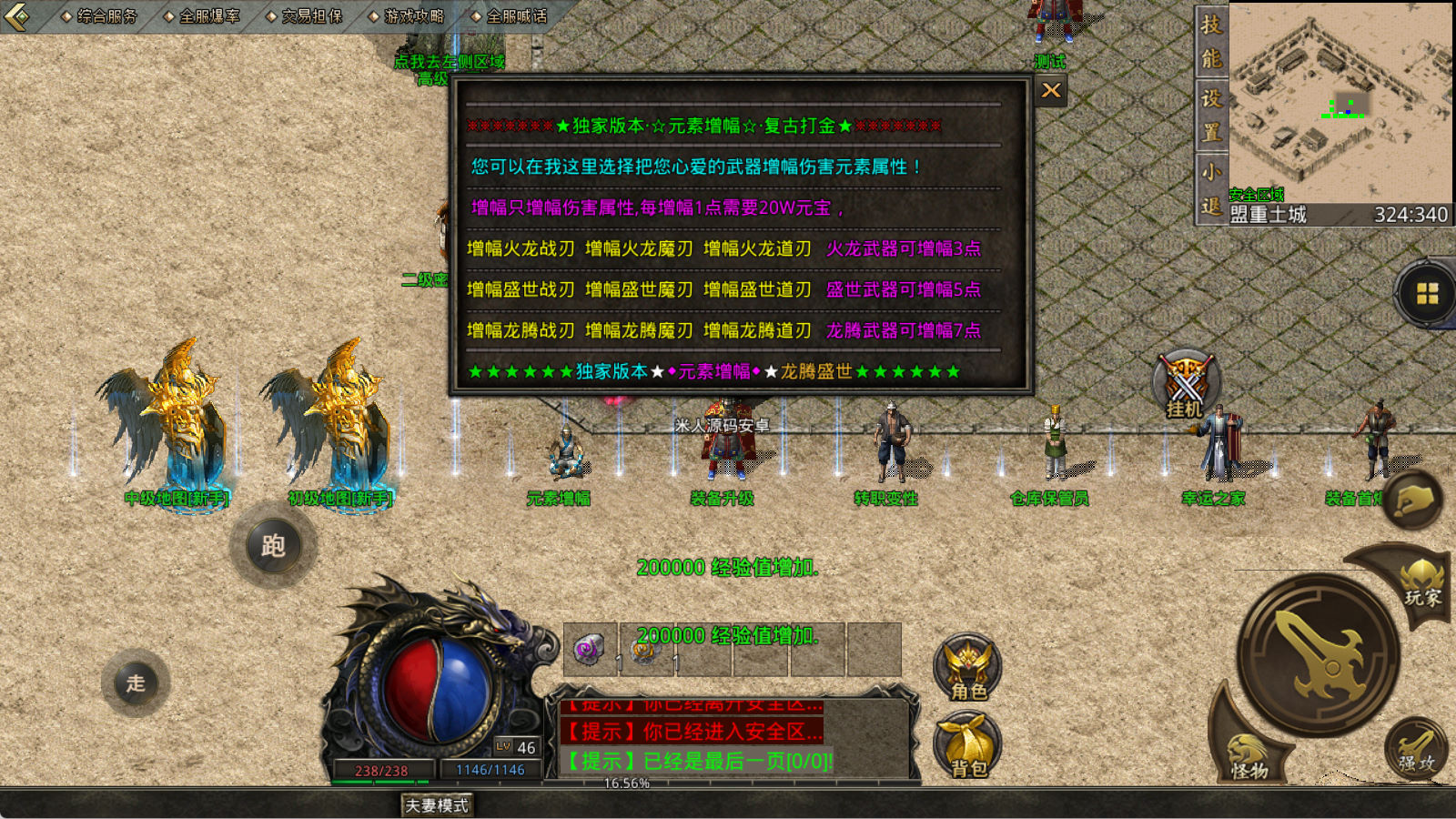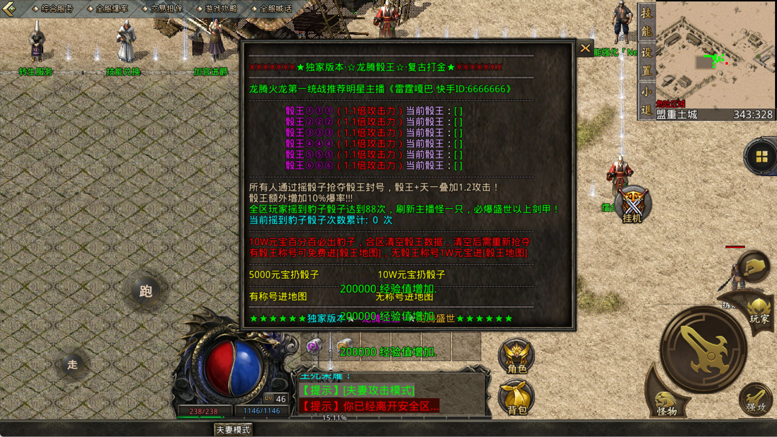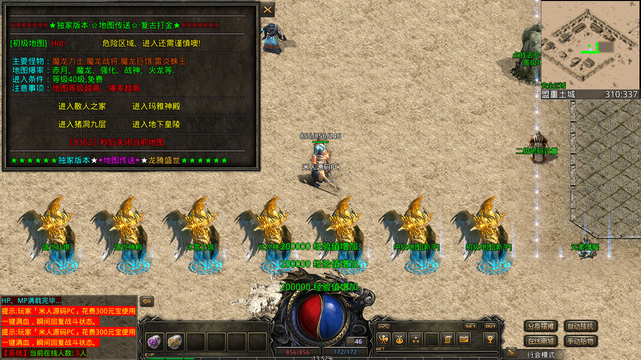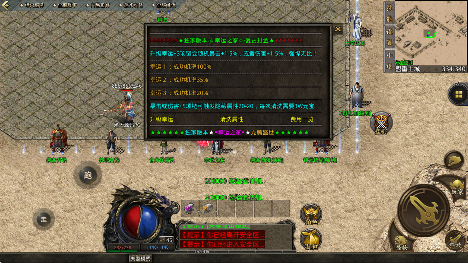 下面我们分别测试下PC和安卓客户端里的功能看看。好了,其他功能就自行测试吧。更多的游戏资源可以访问www.MiR6.com下载,我们每款游戏资源均单独制作了独立的视频架设教程,让小白也可以快速上手游戏架设,快来体验自己做GM的乐趣吧!