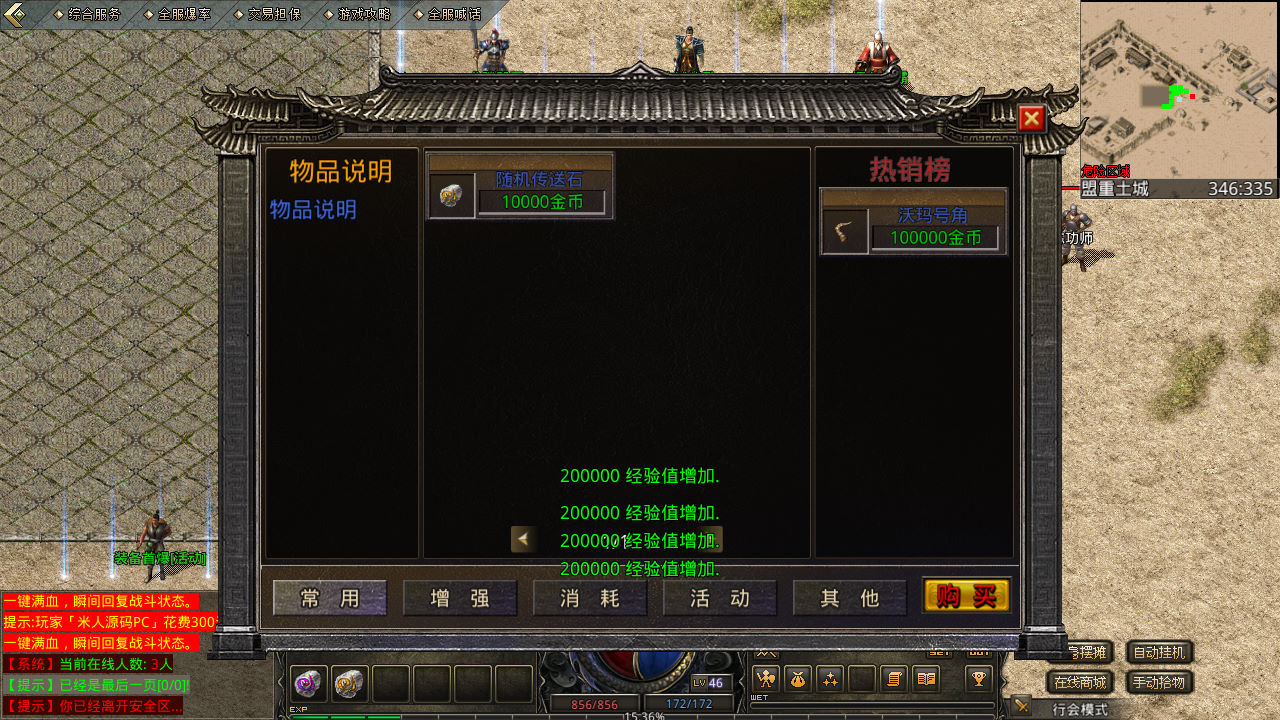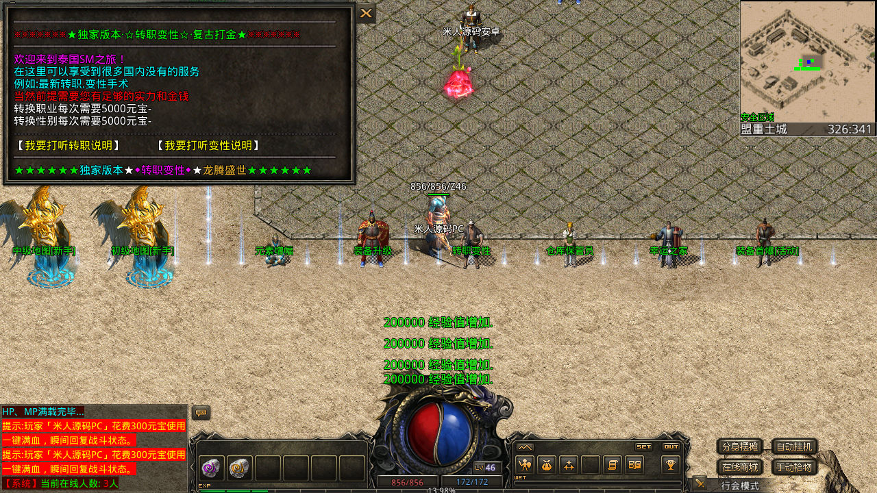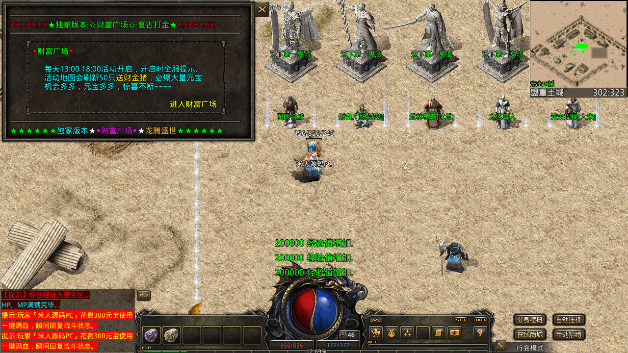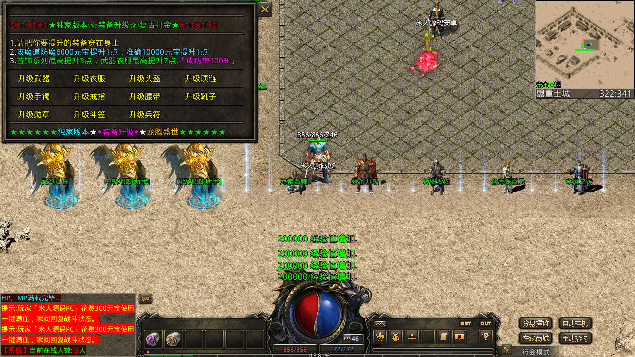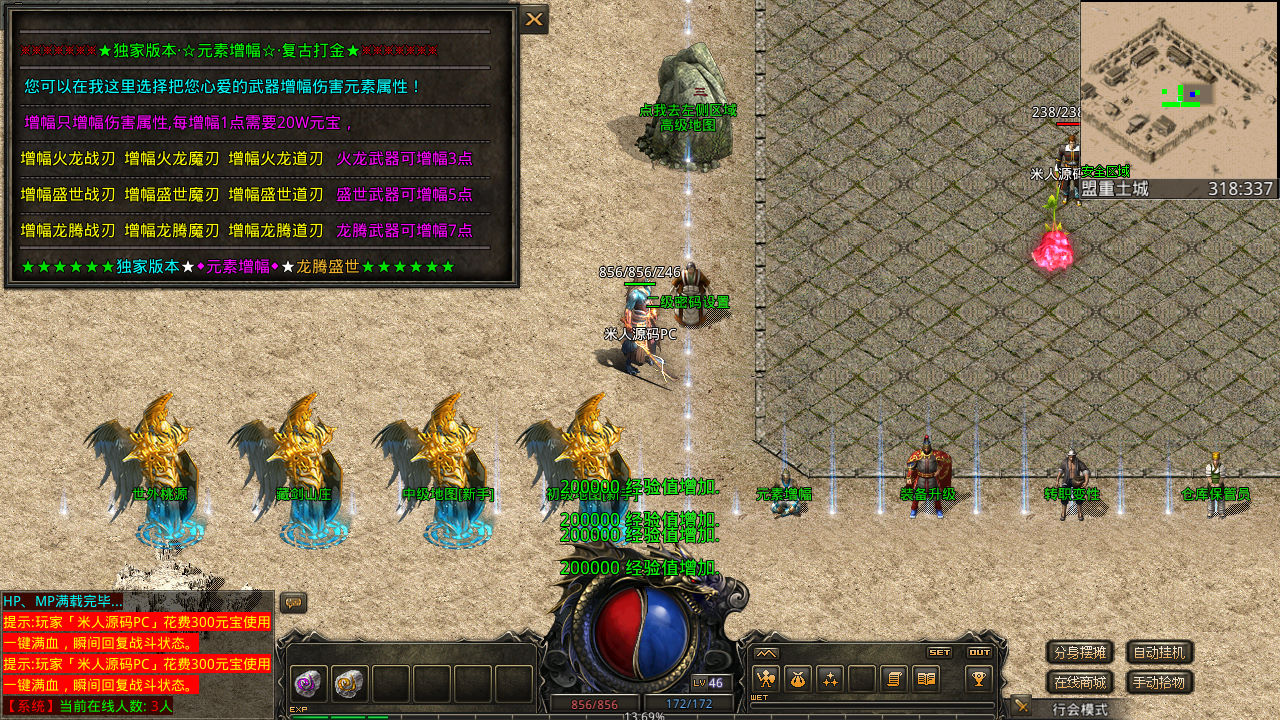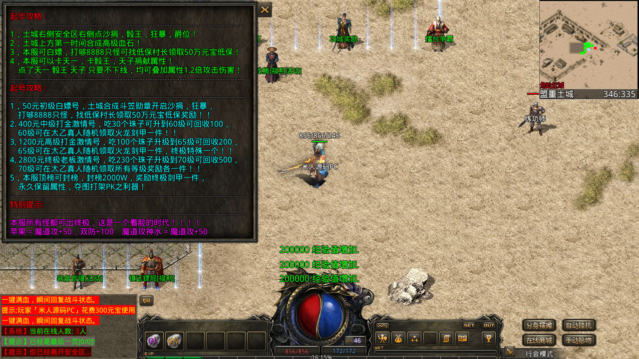 下面我们分别测试下PC和安卓客户端里的功能看看。好了,其他功能就自行测试吧。更多的游戏资源可以访问www.MiR6.com下载,我们每款游戏资源均单独制作了独立的视频架设教程,让小白也可以快速上手游戏架设,快来体验自己做GM的乐趣吧!