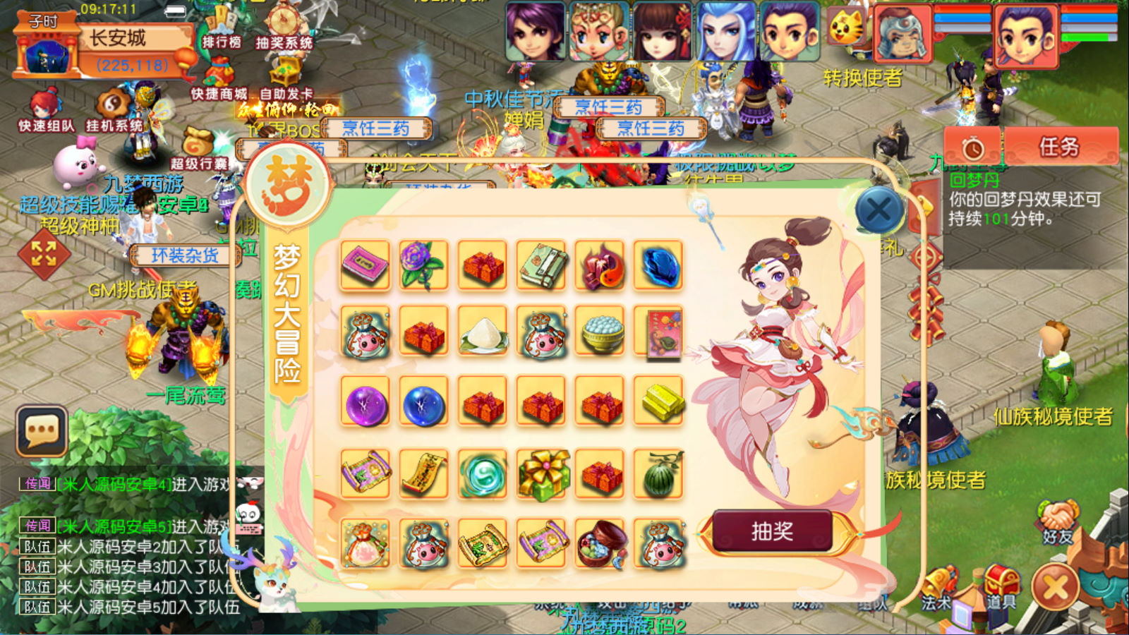 安卓客户端编译: 点击 终端 — 运行任务 — ggeBuild_android (编译时间根据磁盘性能一般在15-30分钟左右,请耐心等待,编译后客户端在源码根目录里)我们把编译好的安卓客户端安装到安卓模拟器里进入游戏试试看。