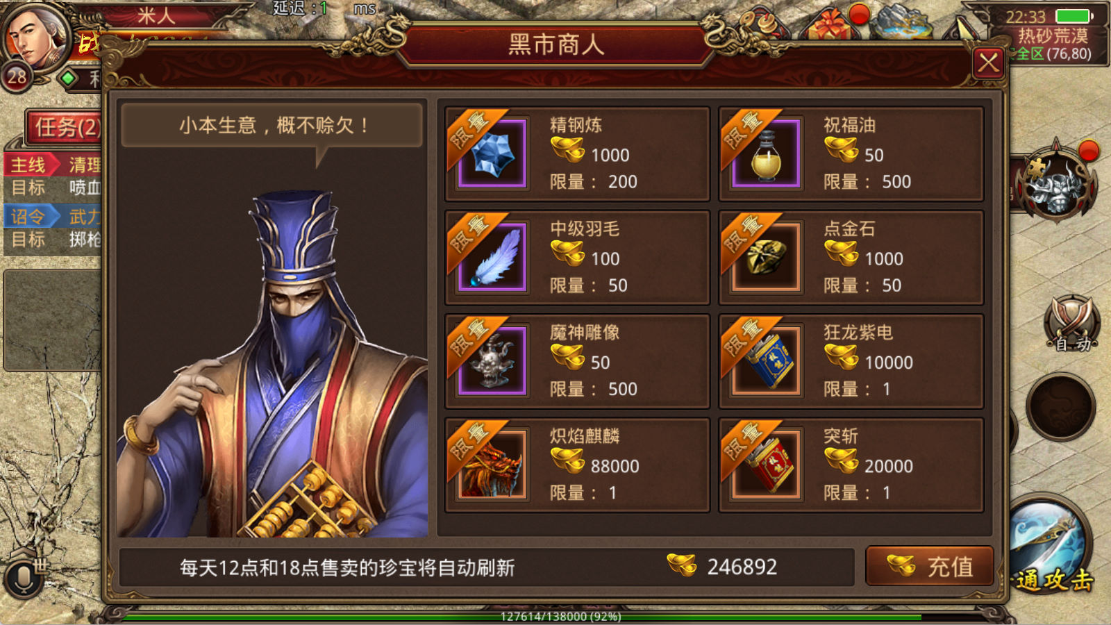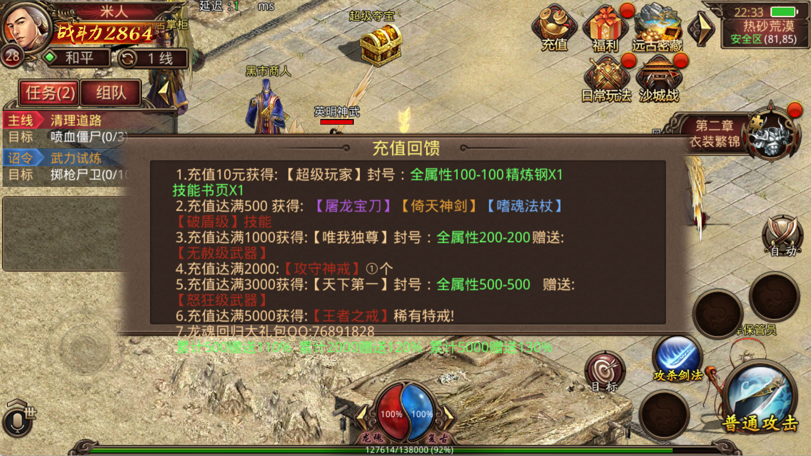下面我们测试下游戏里的功能看看。好了,其他功能就自行测试吧。更多的游戏资源可以访问www.MiR6.com下载,我们每款游戏资源均单独制作了独立的视频架设教程,让小白也可以快速上手游戏架设,快来体验自己做GM的乐趣吧!