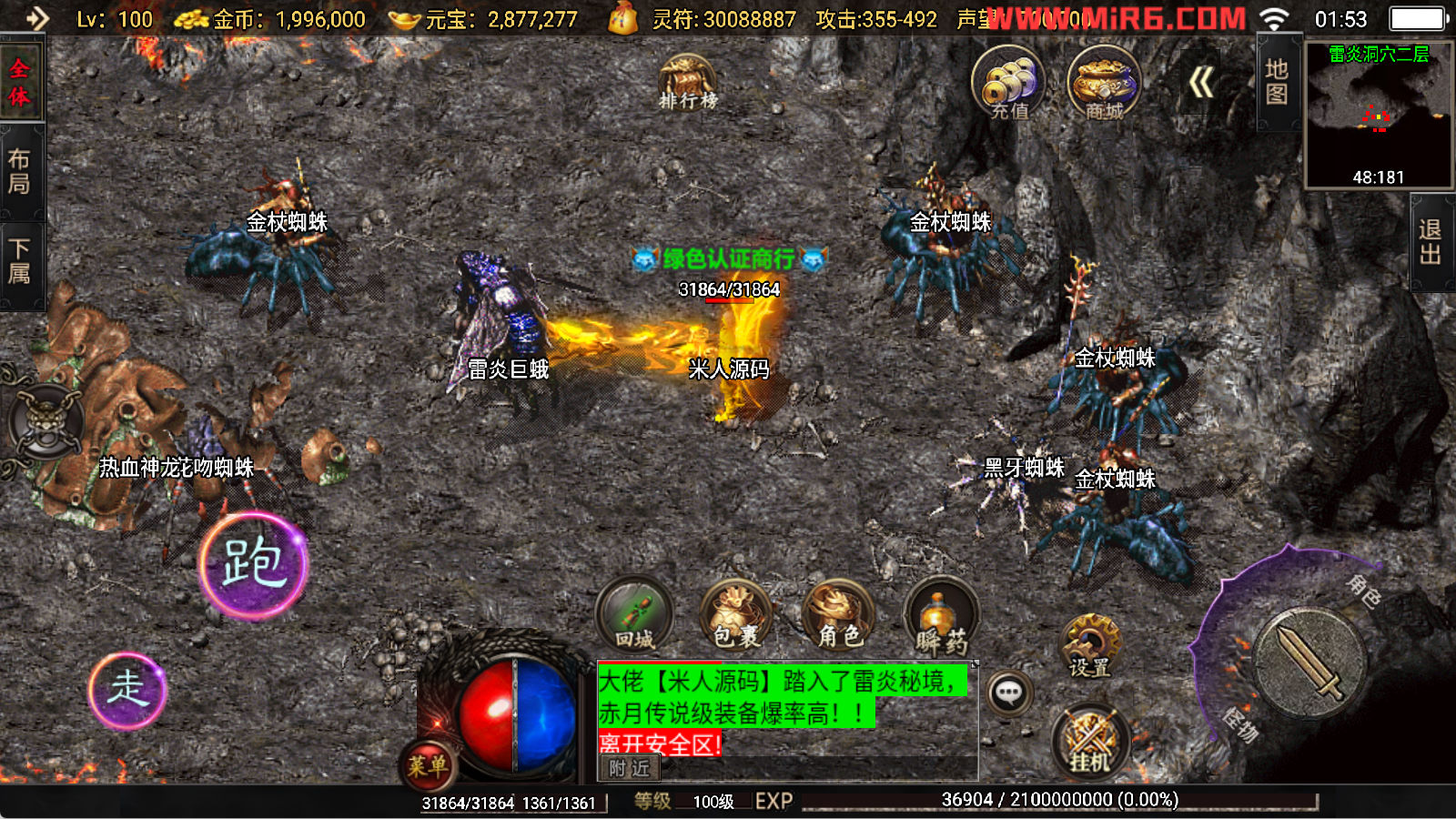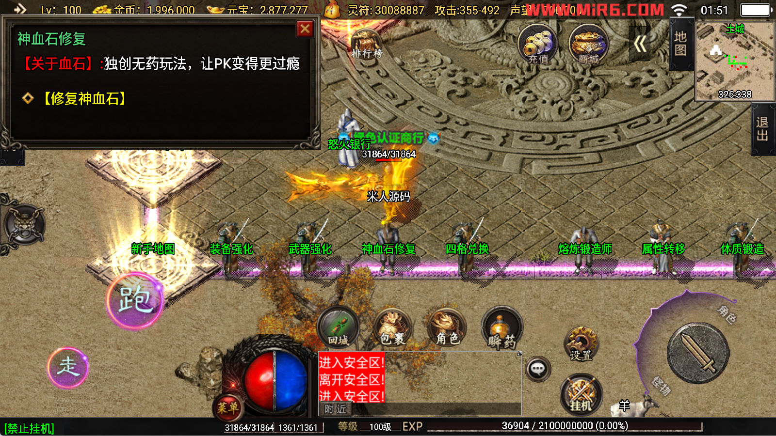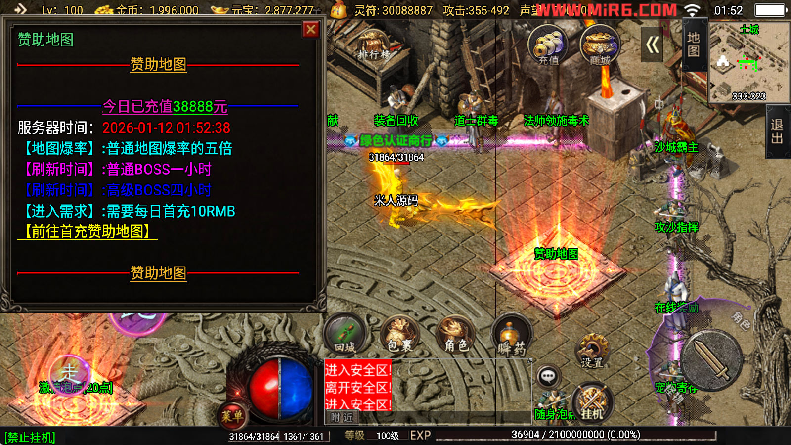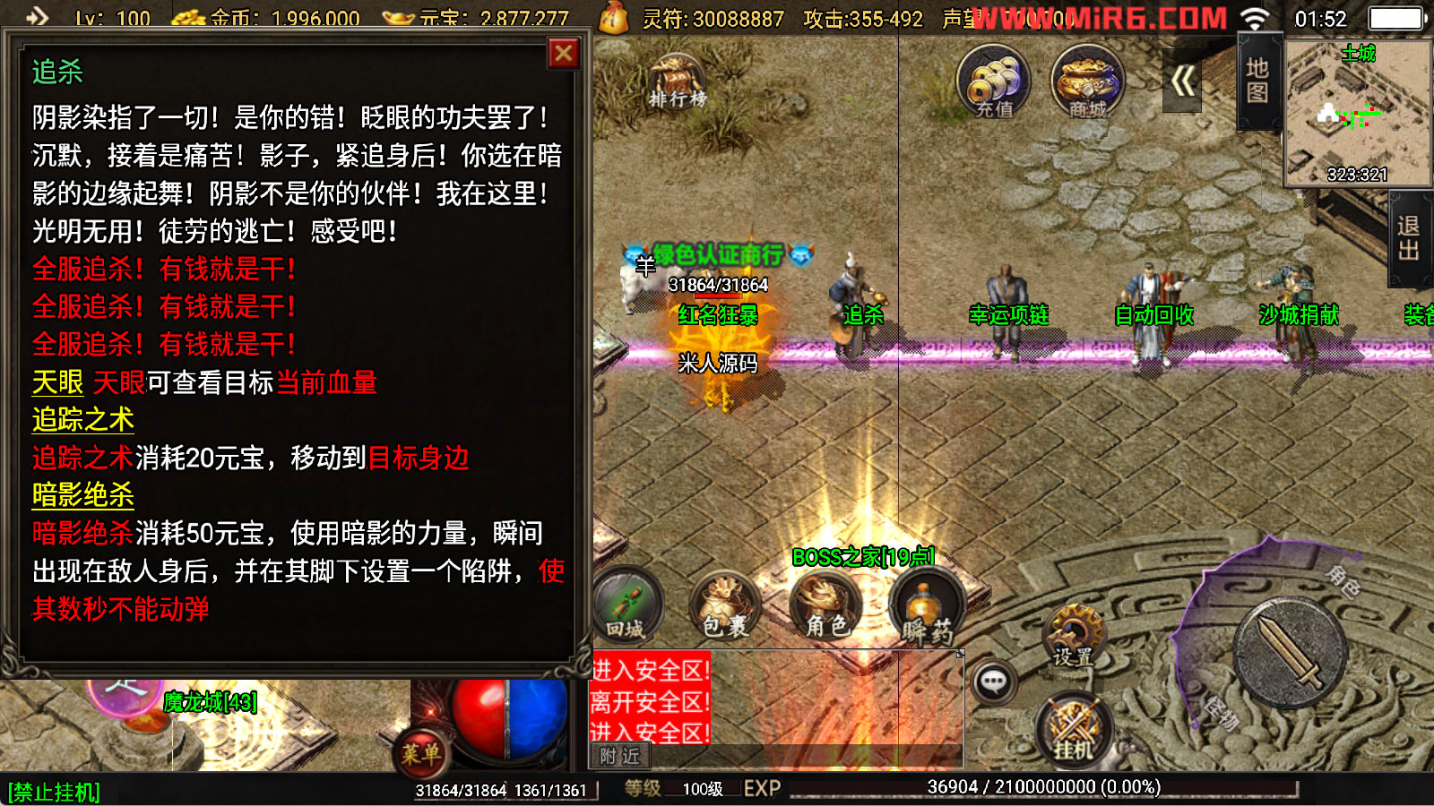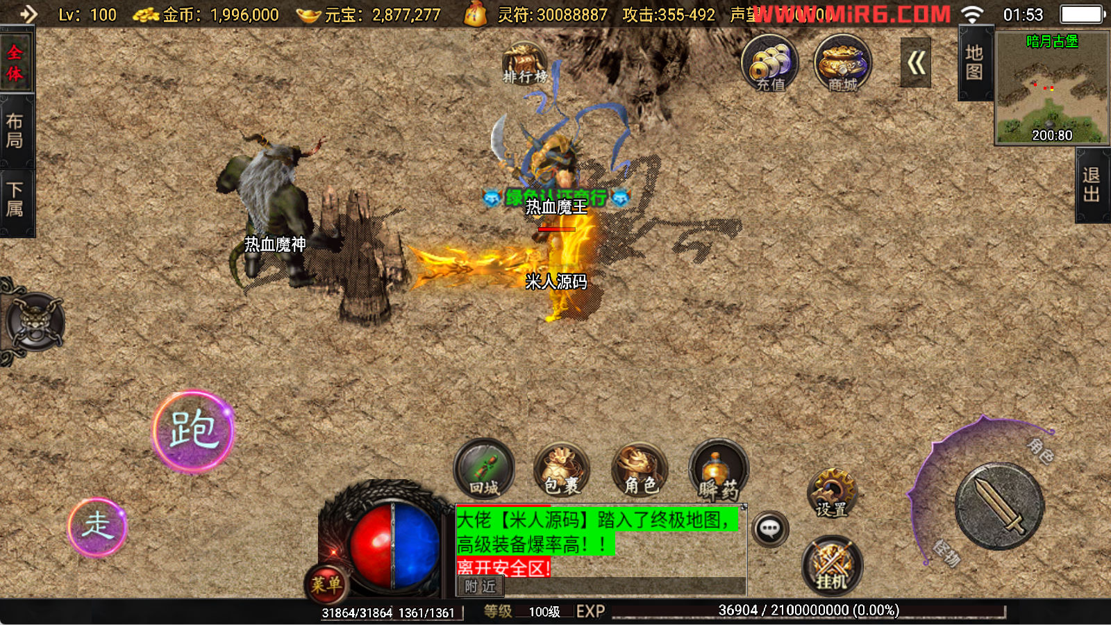 下面我们开始测试下游戏里的功能看看。好了,其他功能就自行测试吧。更多的游戏资源可以访问www.MiR6.com下载,我们每款游戏资源均单独制作了独立的视频架设教程,让小白也可以快速上手游戏架设,快来体验自己做GM的乐趣吧!