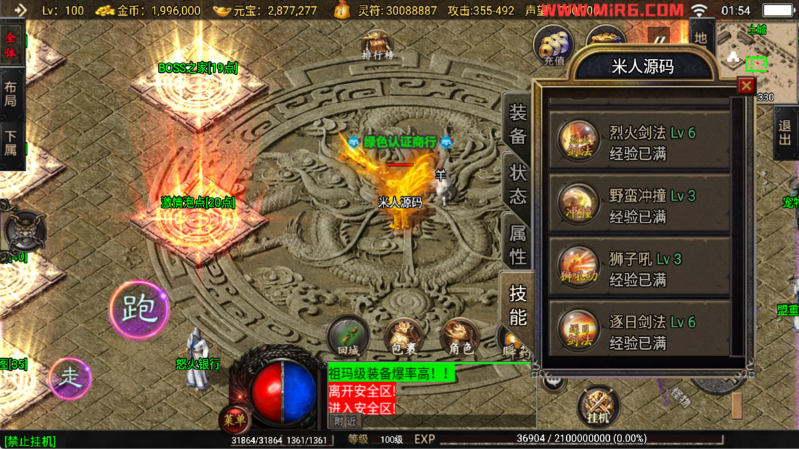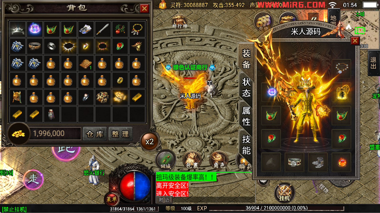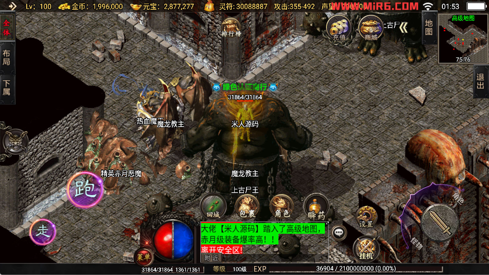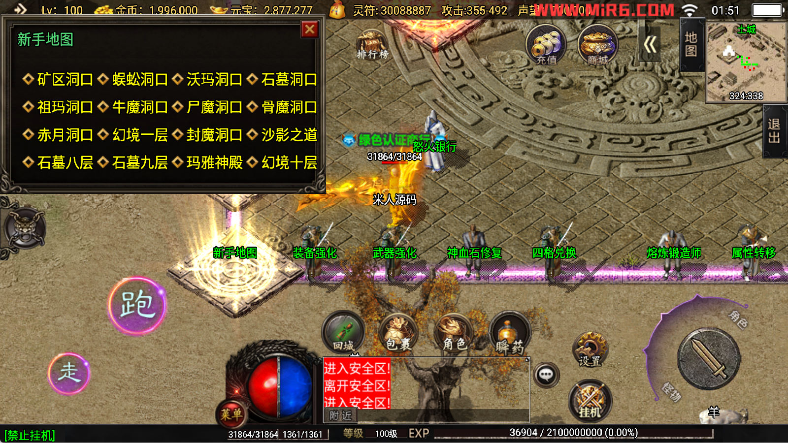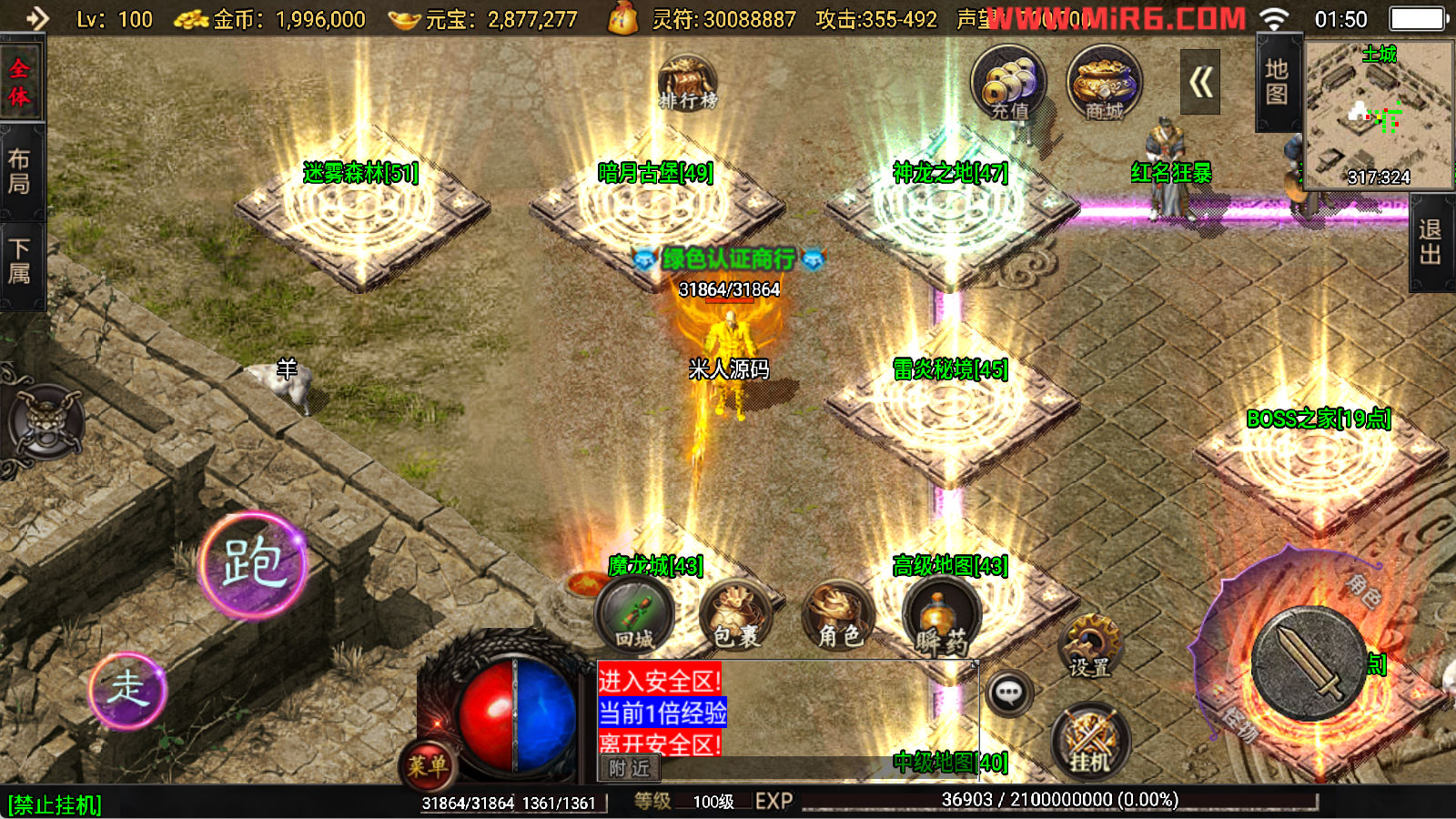 下面我们开始测试下游戏里的功能看看。好了,其他功能就自行测试吧。更多的游戏资源可以访问www.MiR6.com下载,我们每款游戏资源均单独制作了独立的视频架设教程,让小白也可以快速上手游戏架设,快来体验自己做GM的乐趣吧!