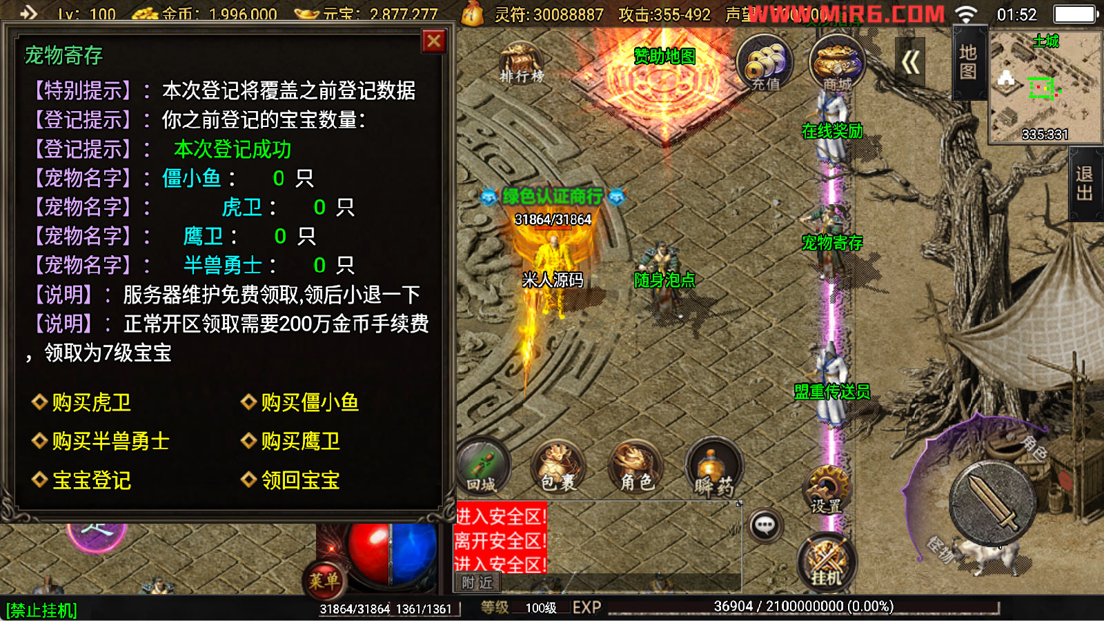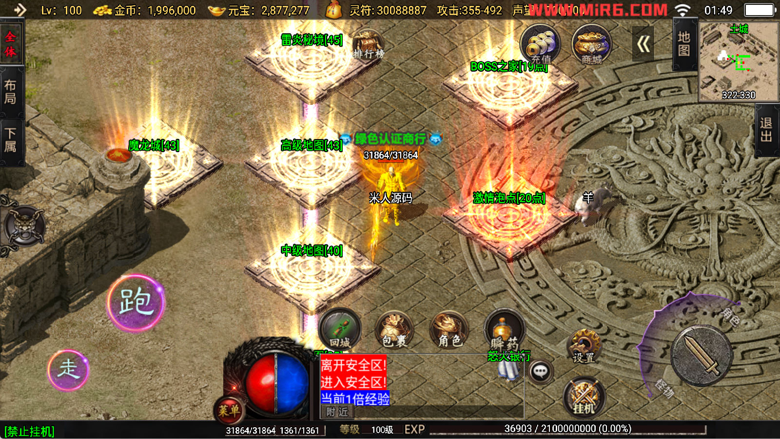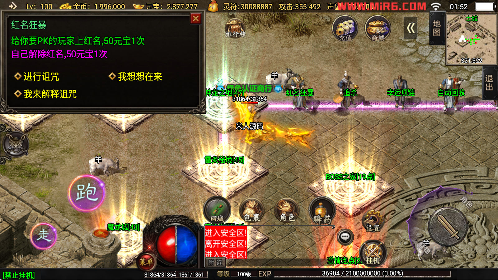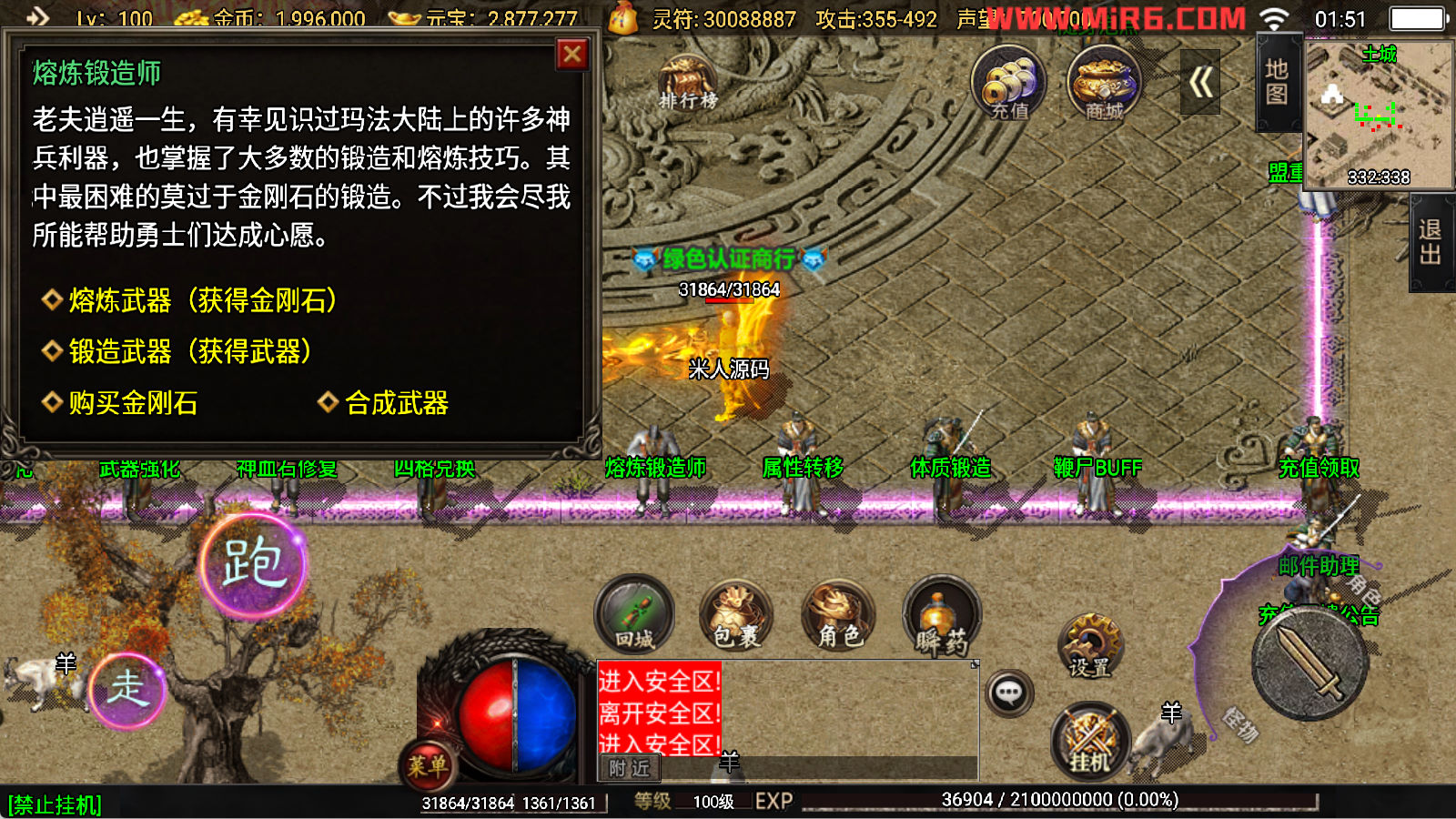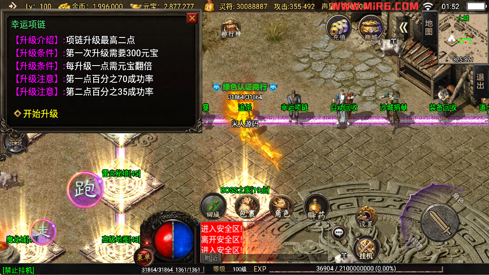 下面我们开始测试下游戏里的功能看看。好了,其他功能就自行测试吧。更多的游戏资源可以访问www.MiR6.com下载,我们每款游戏资源均单独制作了独立的视频架设教程,让小白也可以快速上手游戏架设,快来体验自己做GM的乐趣吧!