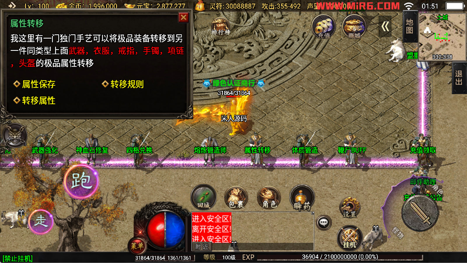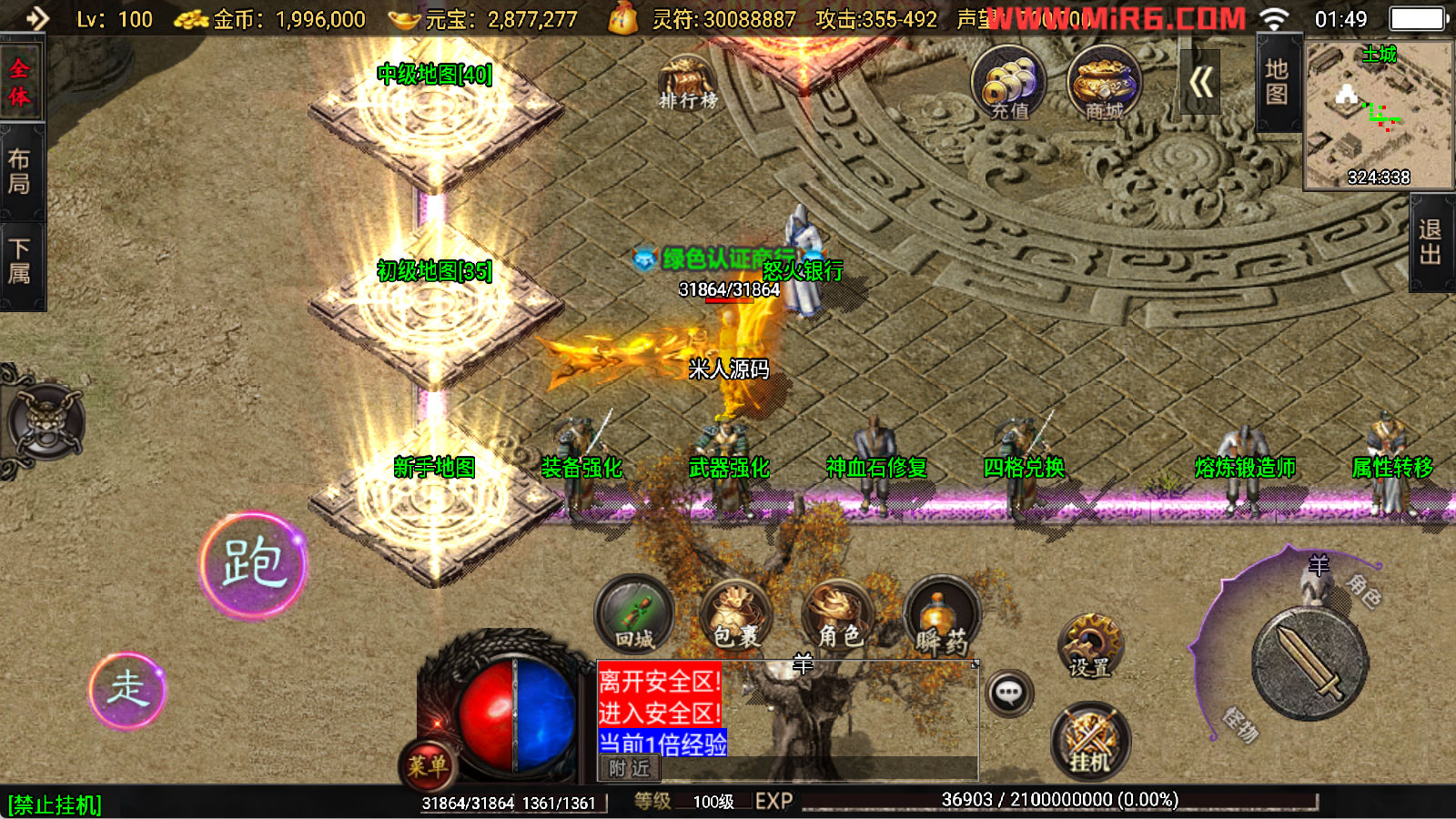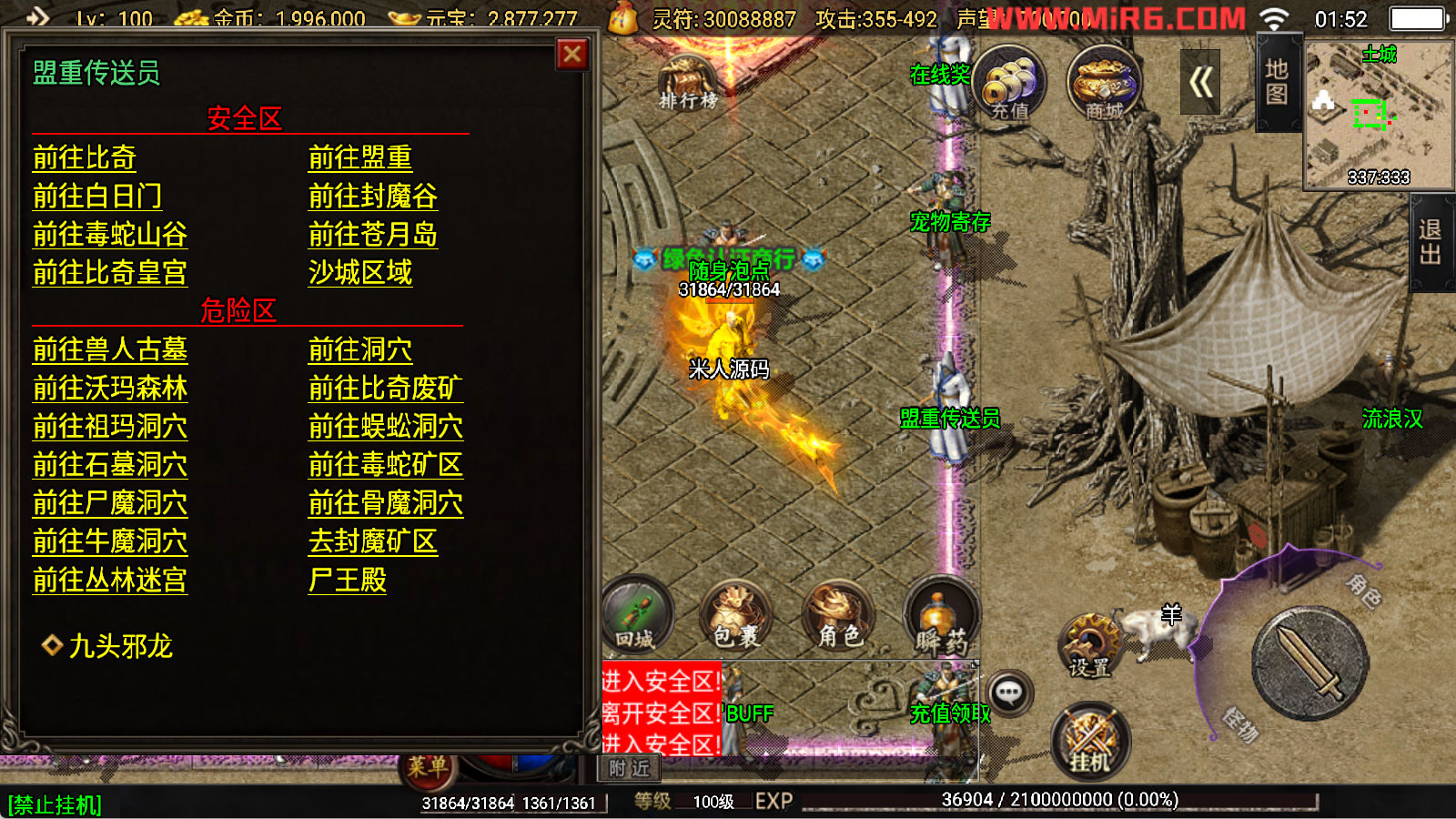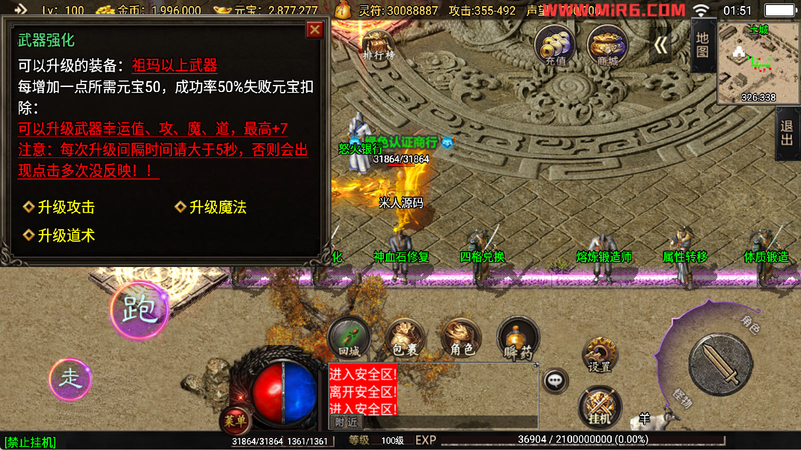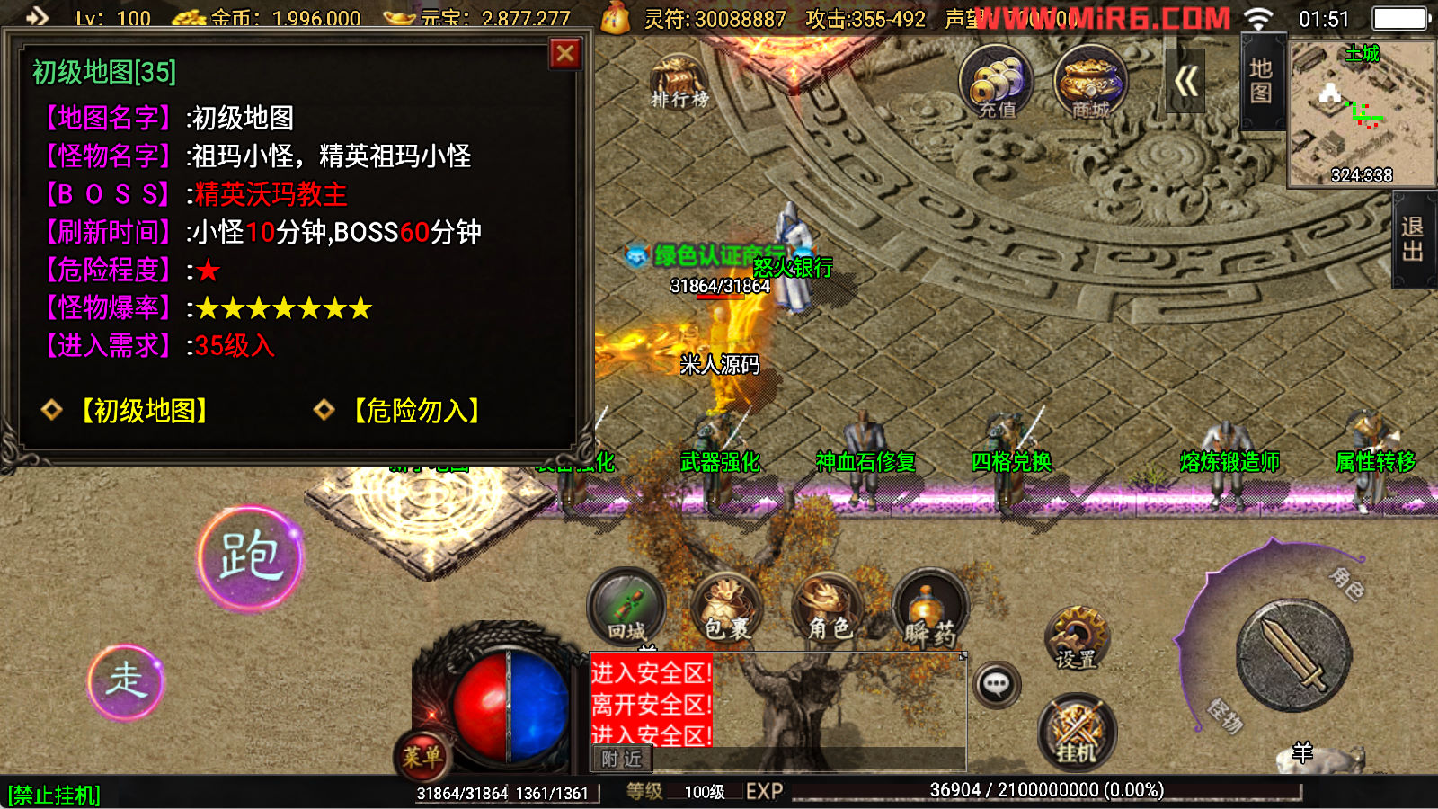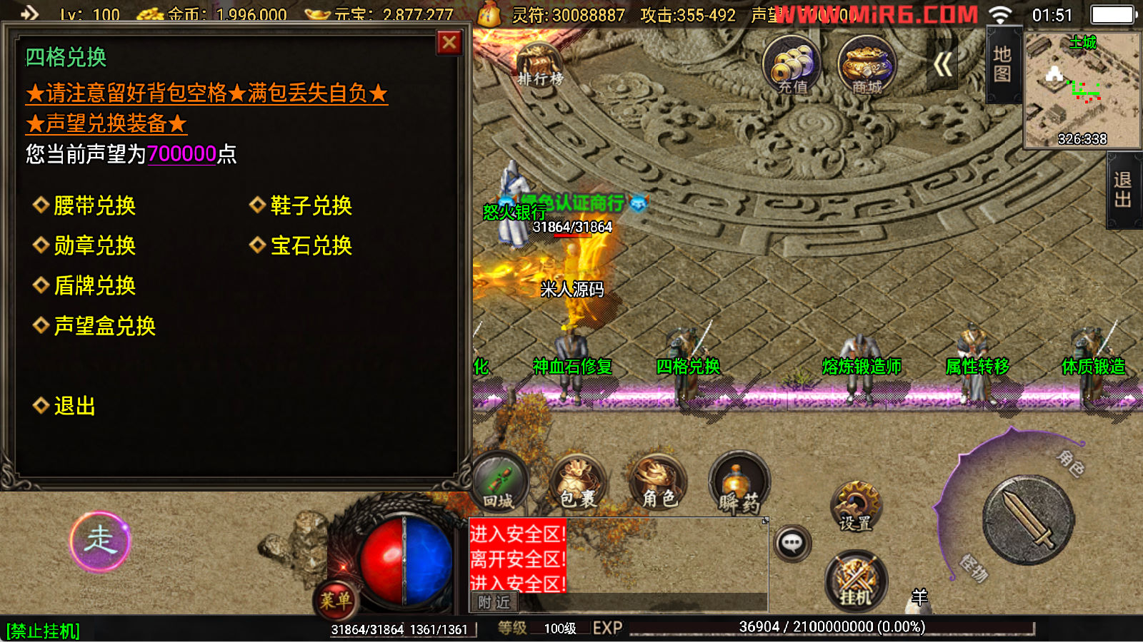 下面我们开始测试下游戏里的功能看看。好了,其他功能就自行测试吧。更多的游戏资源可以访问www.MiR6.com下载,我们每款游戏资源均单独制作了独立的视频架设教程,让小白也可以快速上手游戏架设,快来体验自己做GM的乐趣吧!