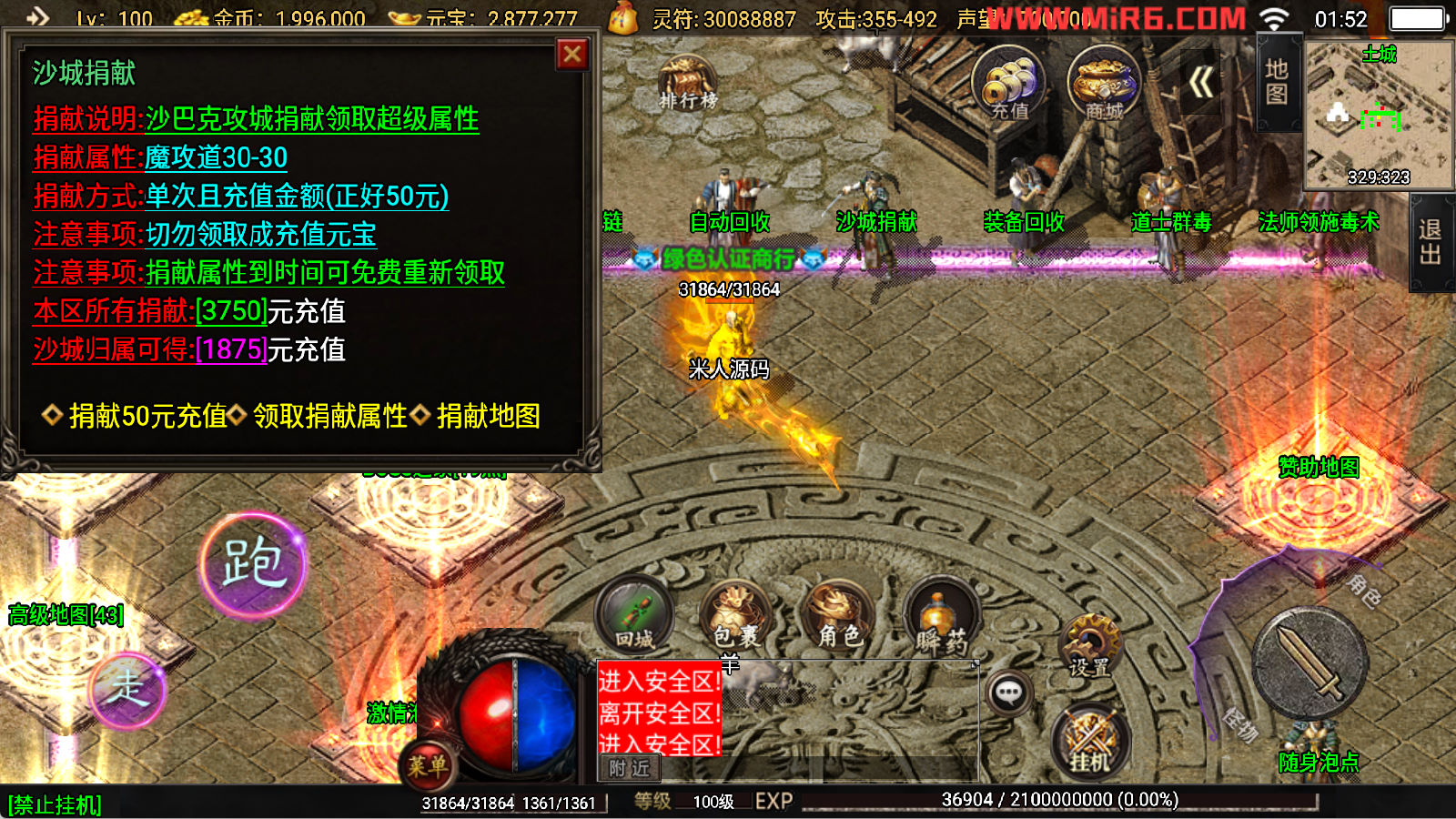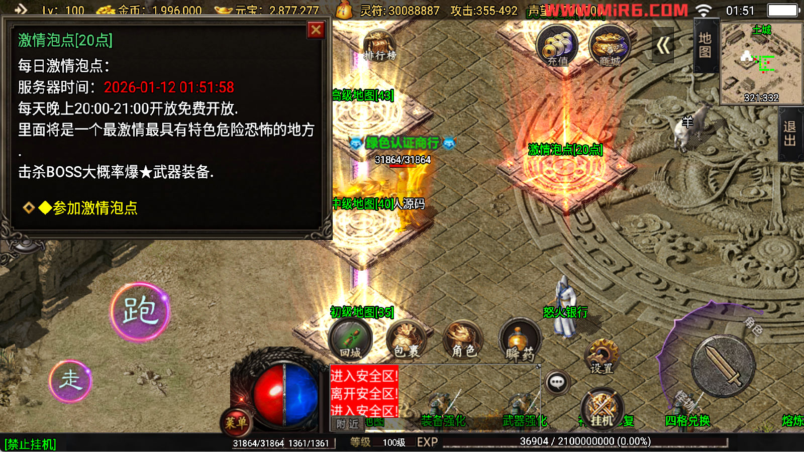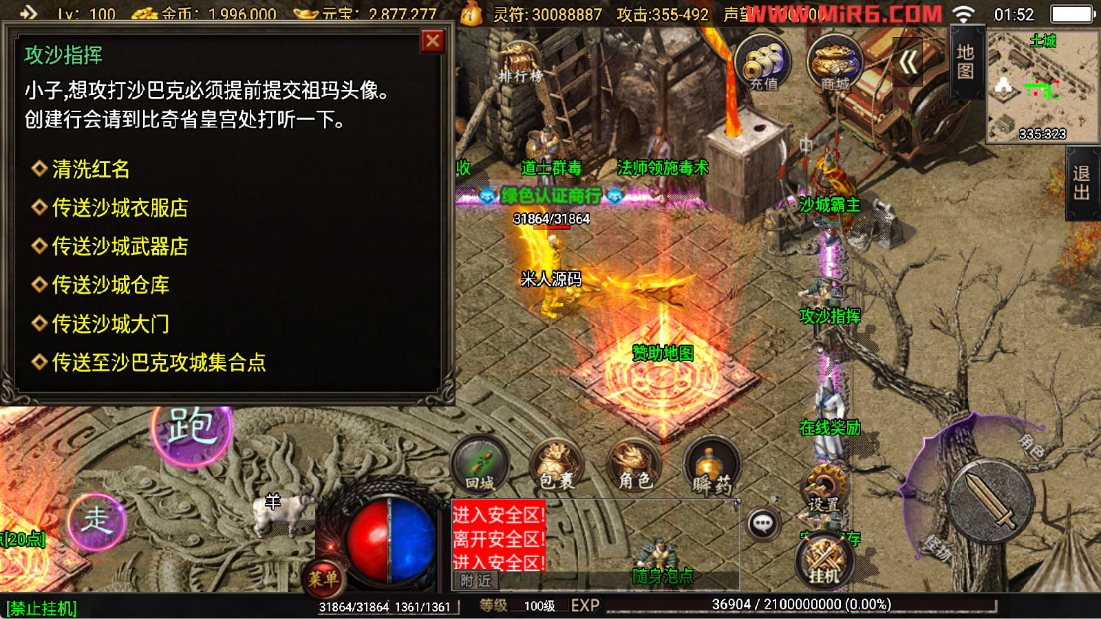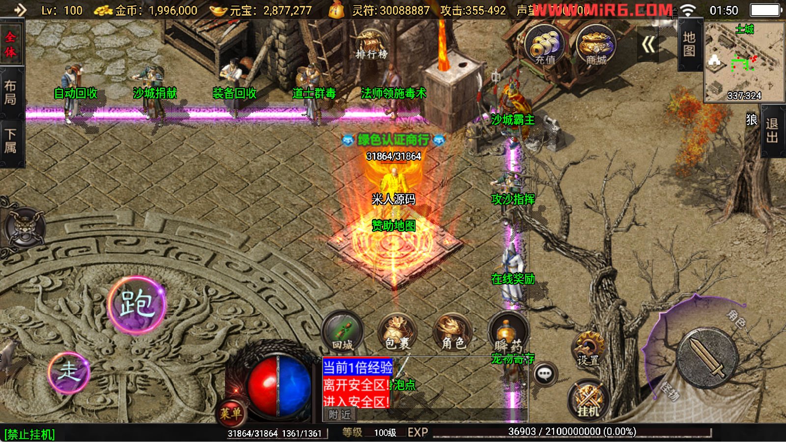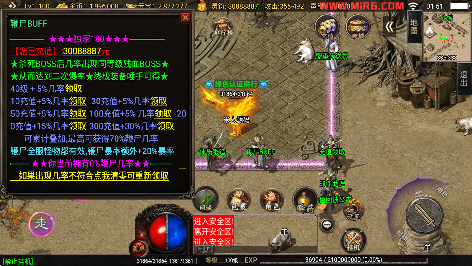 下面我们开始测试下游戏里的功能看看。好了,其他功能就自行测试吧。更多的游戏资源可以访问www.MiR6.com下载,我们每款游戏资源均单独制作了独立的视频架设教程,让小白也可以快速上手游戏架设,快来体验自己做GM的乐趣吧!