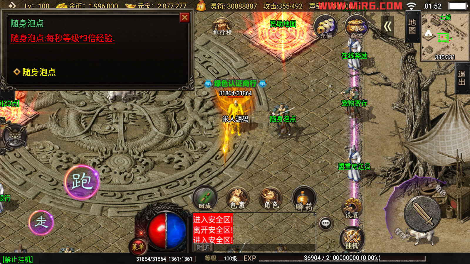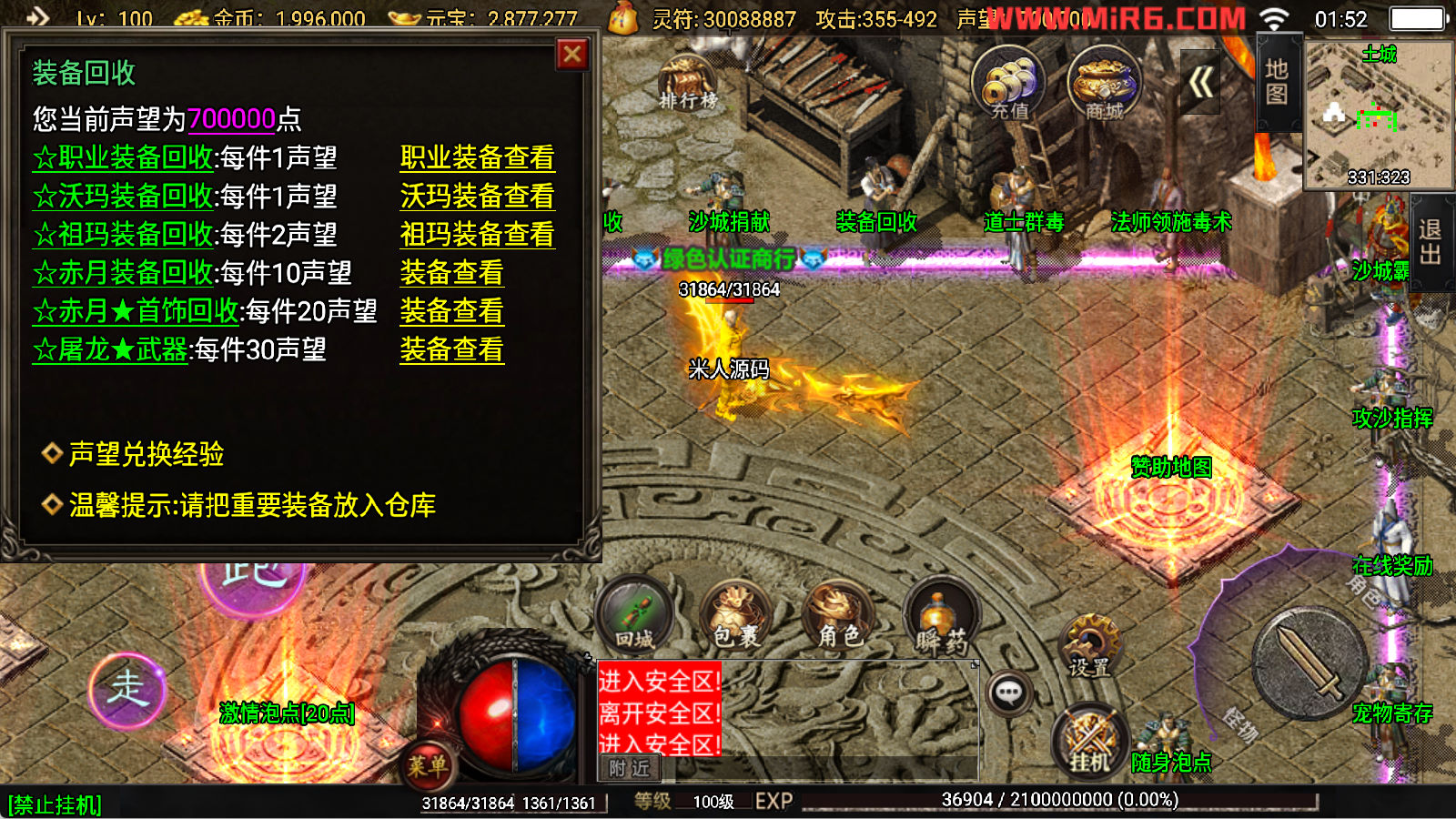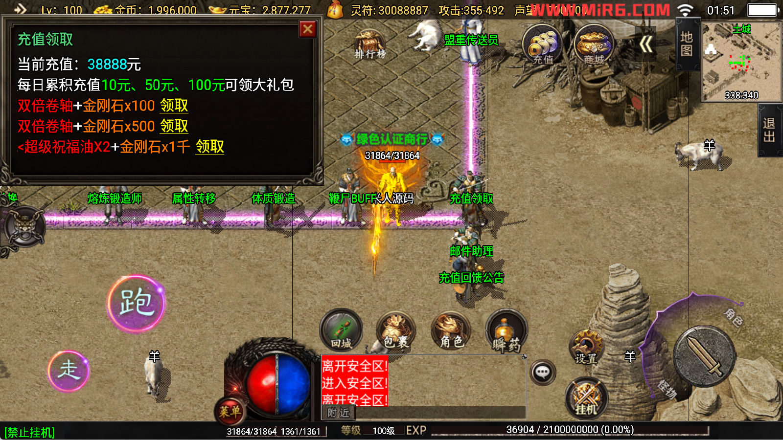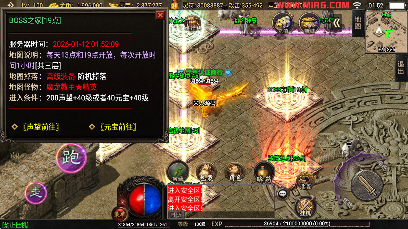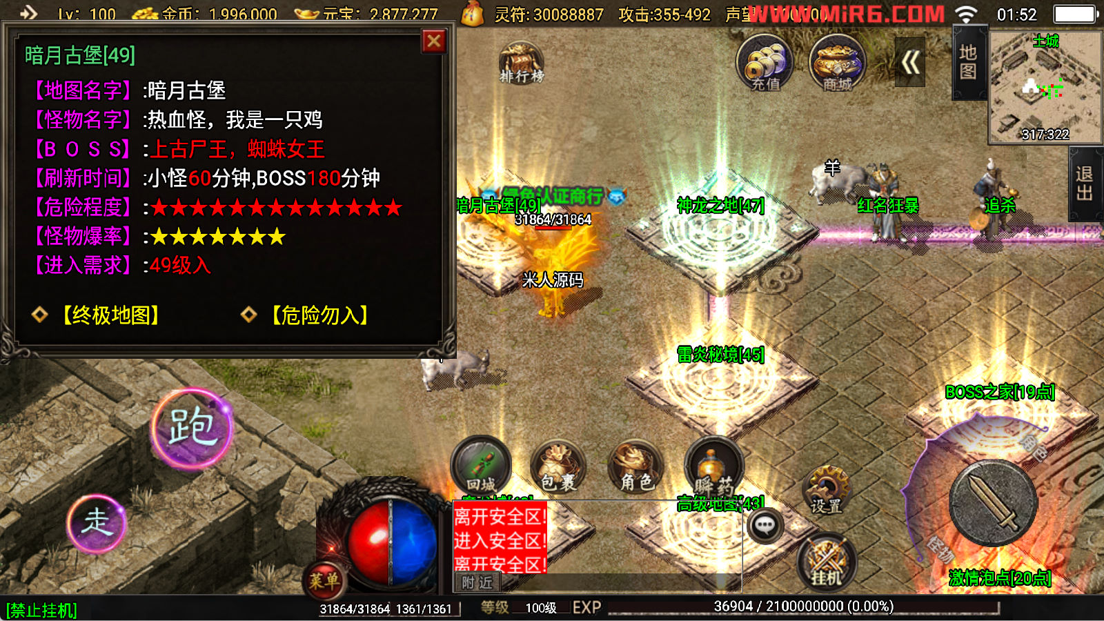 下面我们开始测试下游戏里的功能看看。好了,其他功能就自行测试吧。更多的游戏资源可以访问www.MiR6.com下载,我们每款游戏资源均单独制作了独立的视频架设教程,让小白也可以快速上手游戏架设,快来体验自己做GM的乐趣吧!