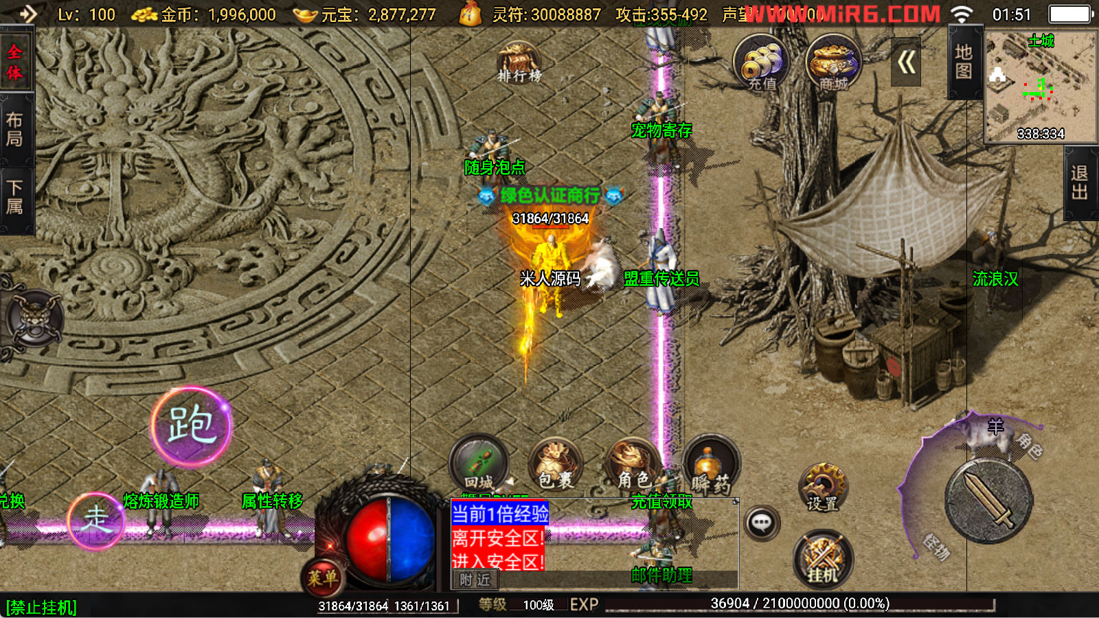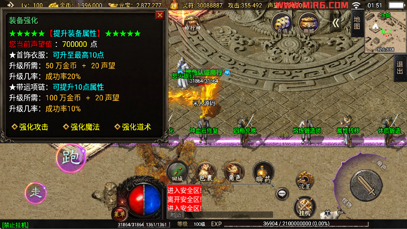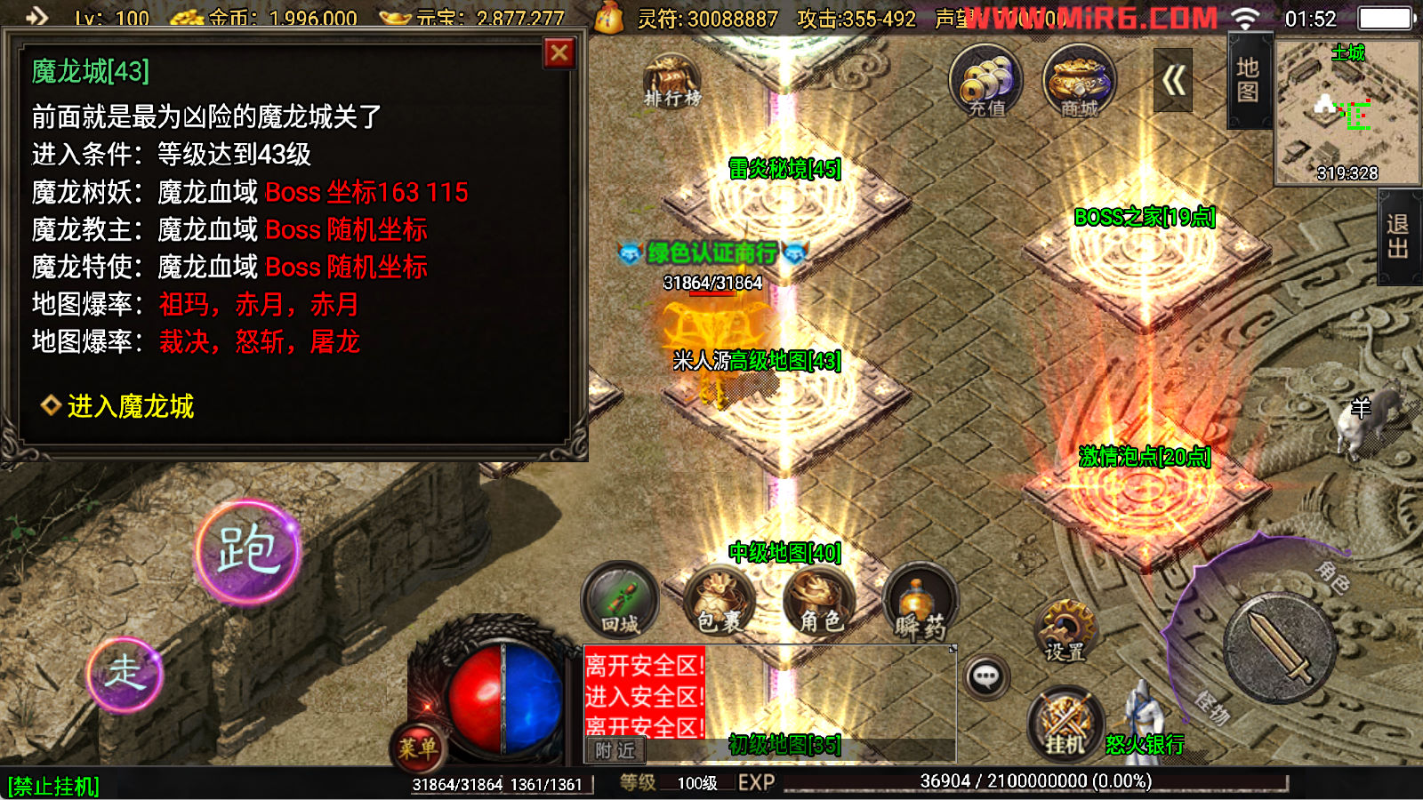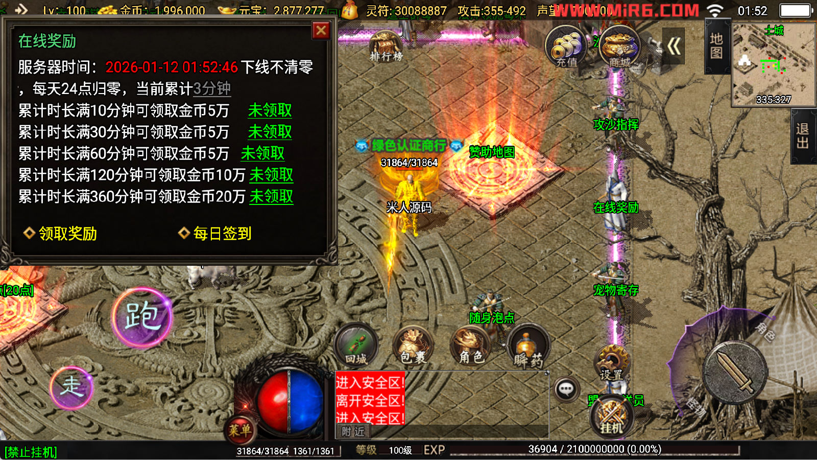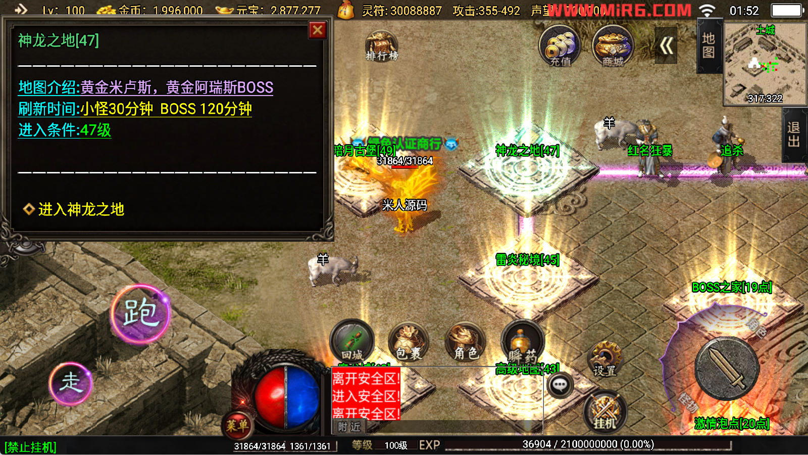 下面我们开始测试下游戏里的功能看看。好了,其他功能就自行测试吧。更多的游戏资源可以访问www.MiR6.com下载,我们每款游戏资源均单独制作了独立的视频架设教程,让小白也可以快速上手游戏架设,快来体验自己做GM的乐趣吧!