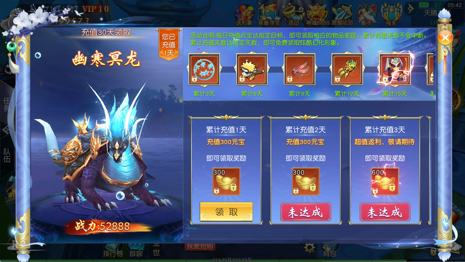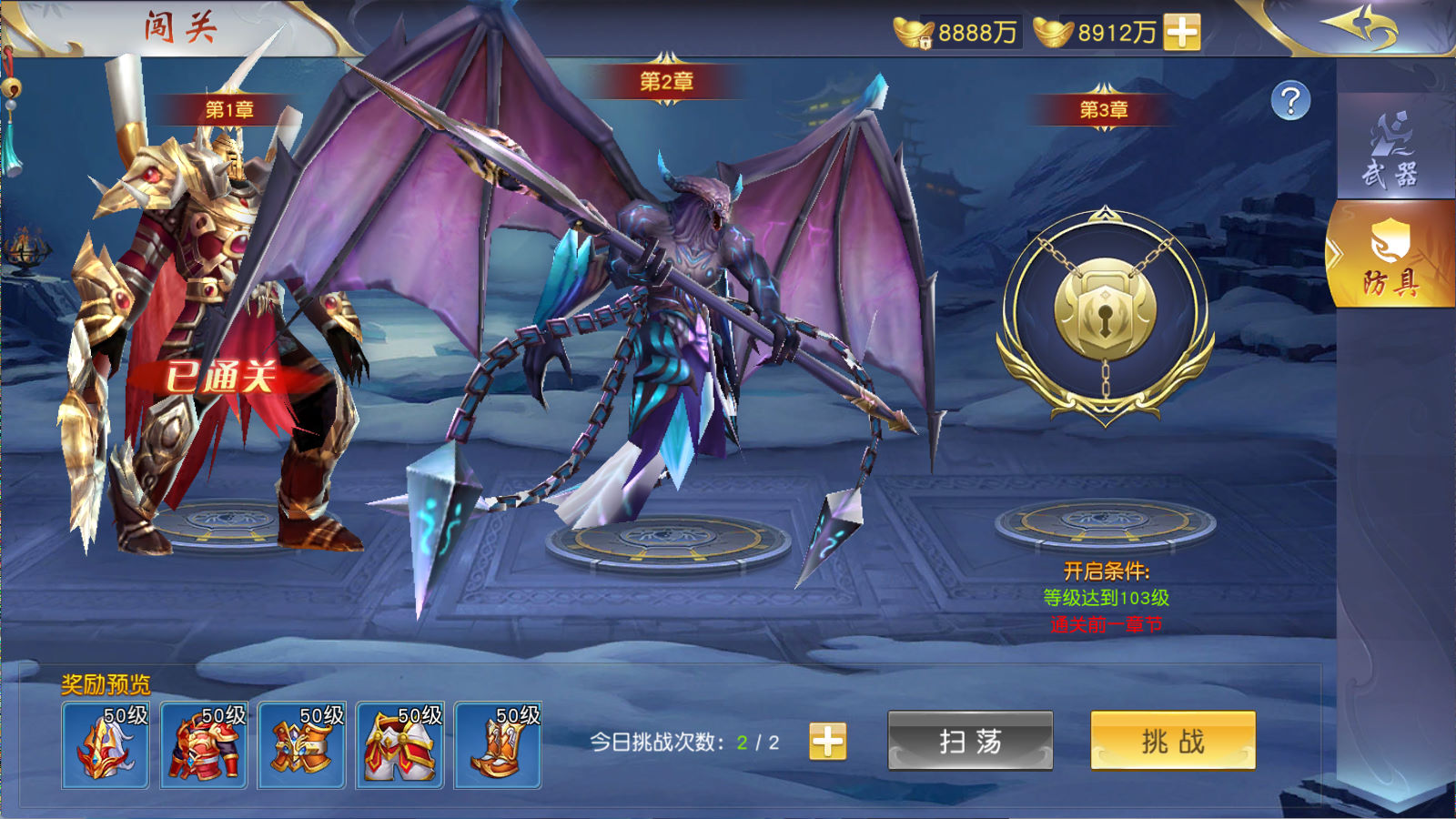 一层BOSS推荐战力:2000W 二层:4000W 三层:8000W 四层:1E 五层:2E !