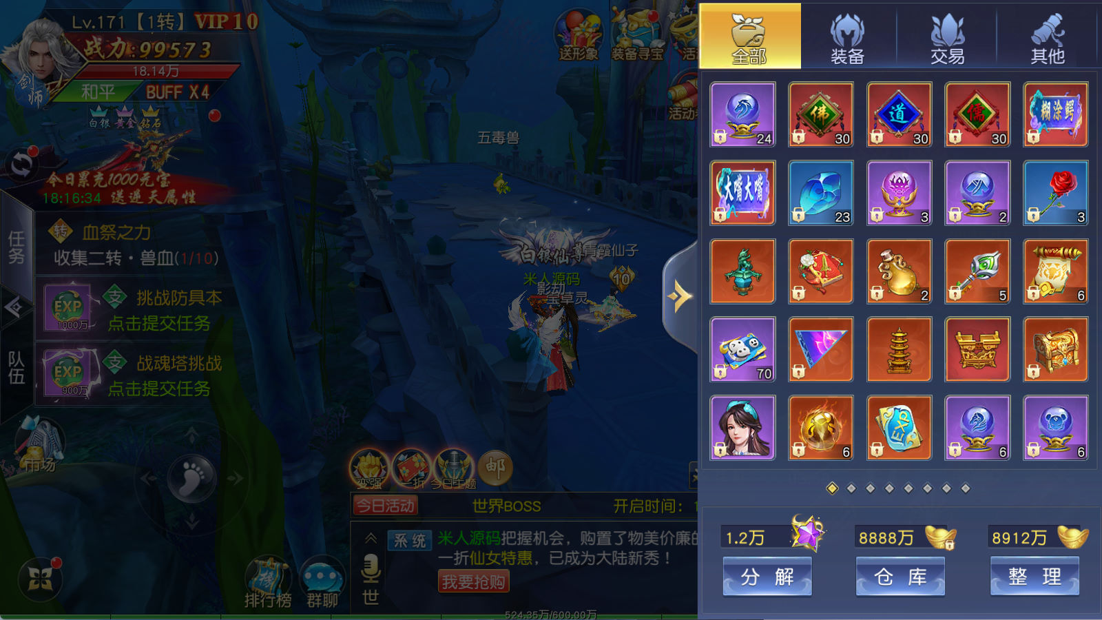 上线8888W元宝、8888W绑元,100W平台币用于游戏内购激活充值那些。