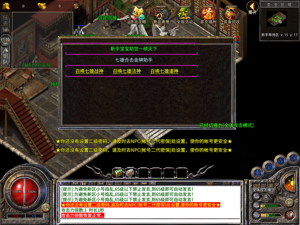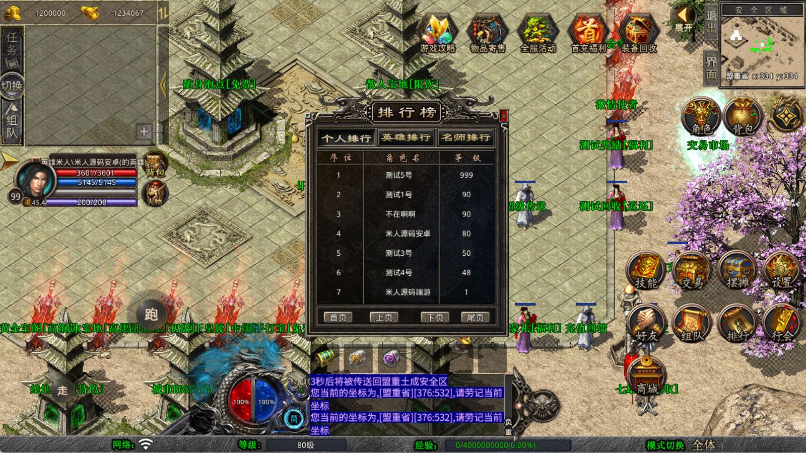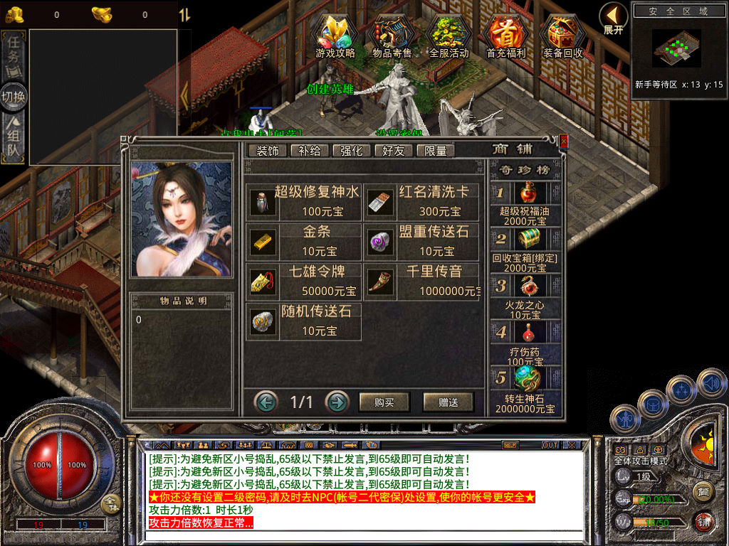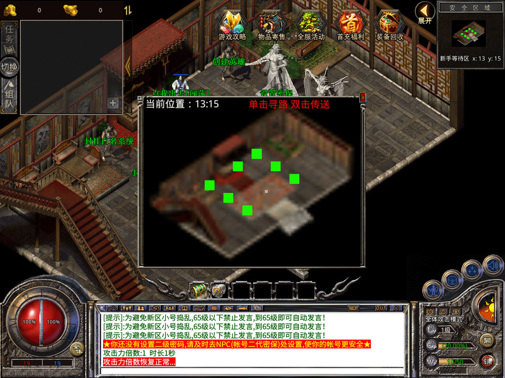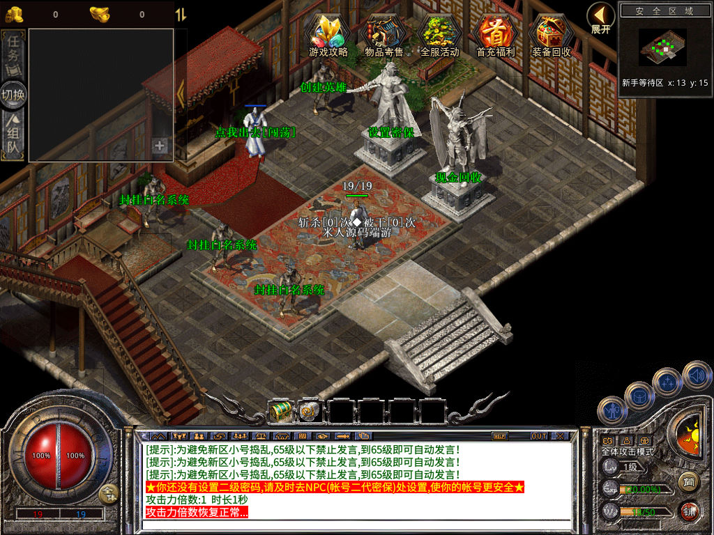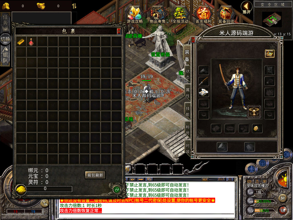 下面我们来测试下游戏里的功能看看。好了,其他功能就自行测试吧。更多的游戏资源可以访问www.MiR6.com下载,我们每款游戏资源均单独制作了独立的视频架设教程,让小白也可以快速上手游戏架设,快来体验自己做GM的乐趣吧!