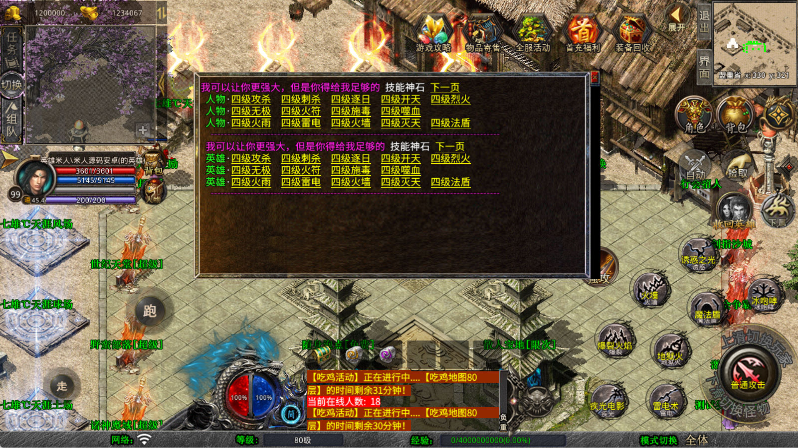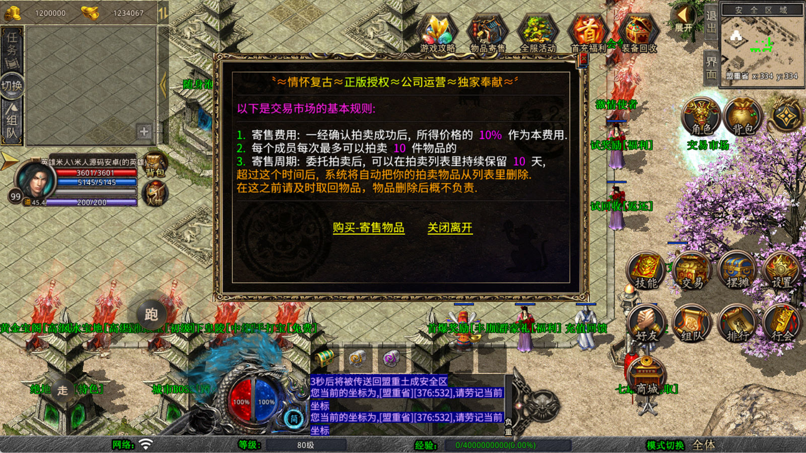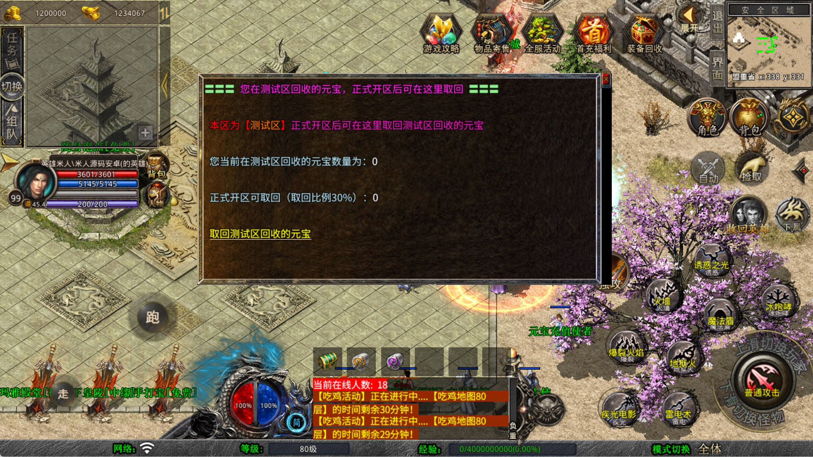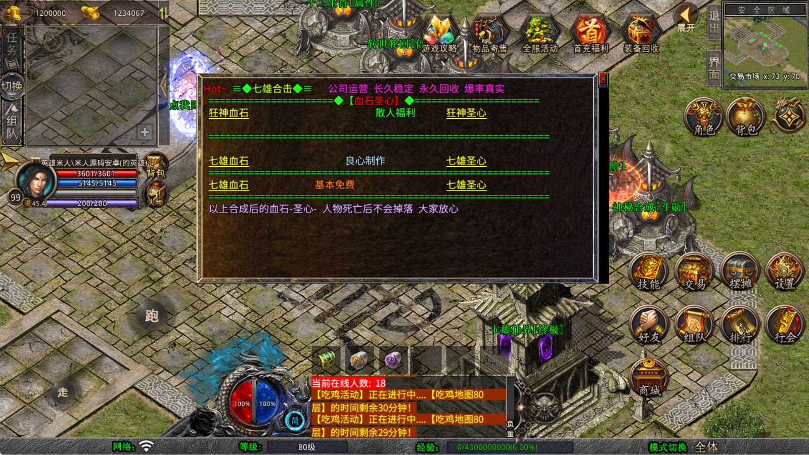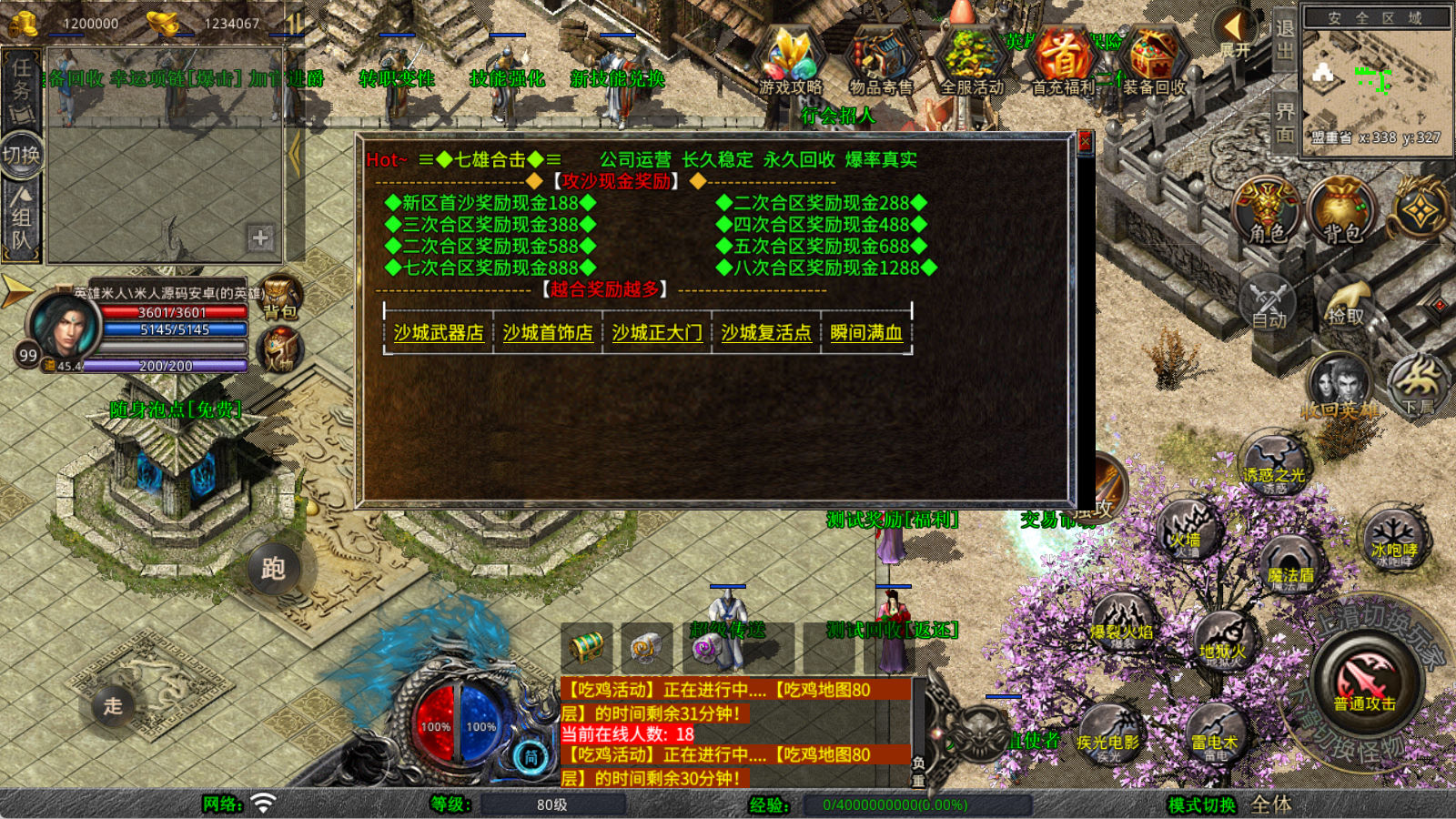 下面我们来测试下游戏里的功能看看。好了,其他功能就自行测试吧。更多的游戏资源可以访问www.MiR6.com下载,我们每款游戏资源均单独制作了独立的视频架设教程,让小白也可以快速上手游戏架设,快来体验自己做GM的乐趣吧!
