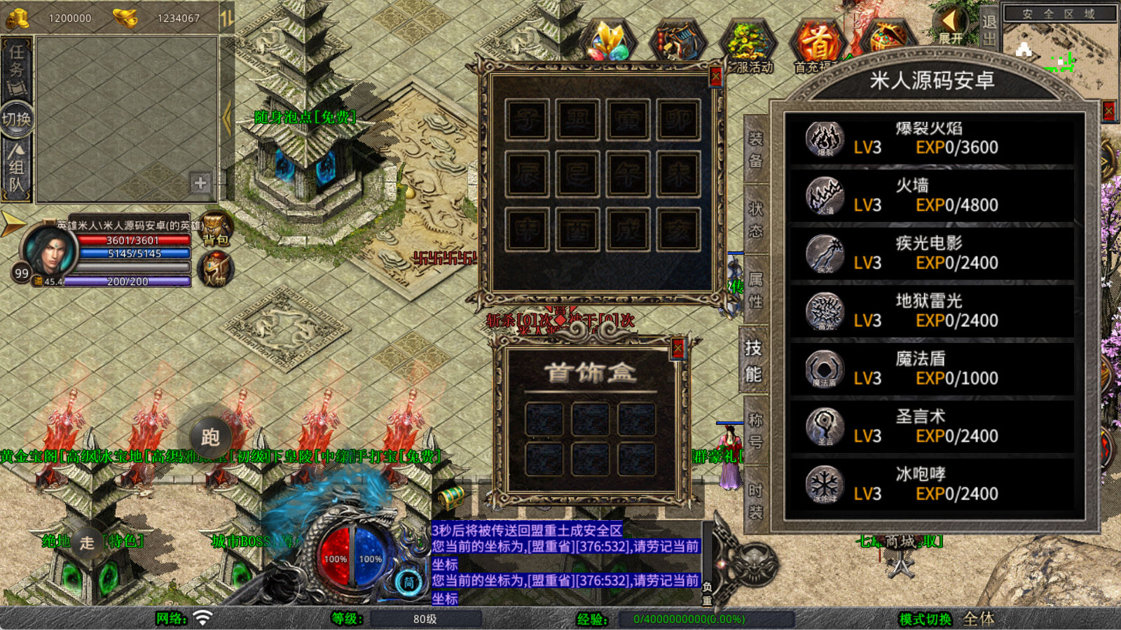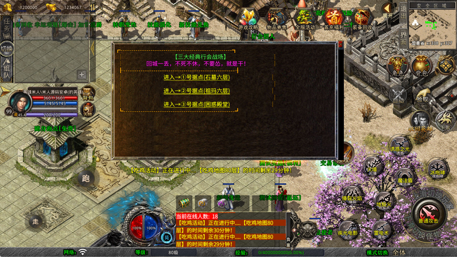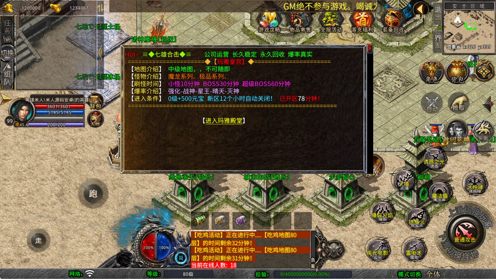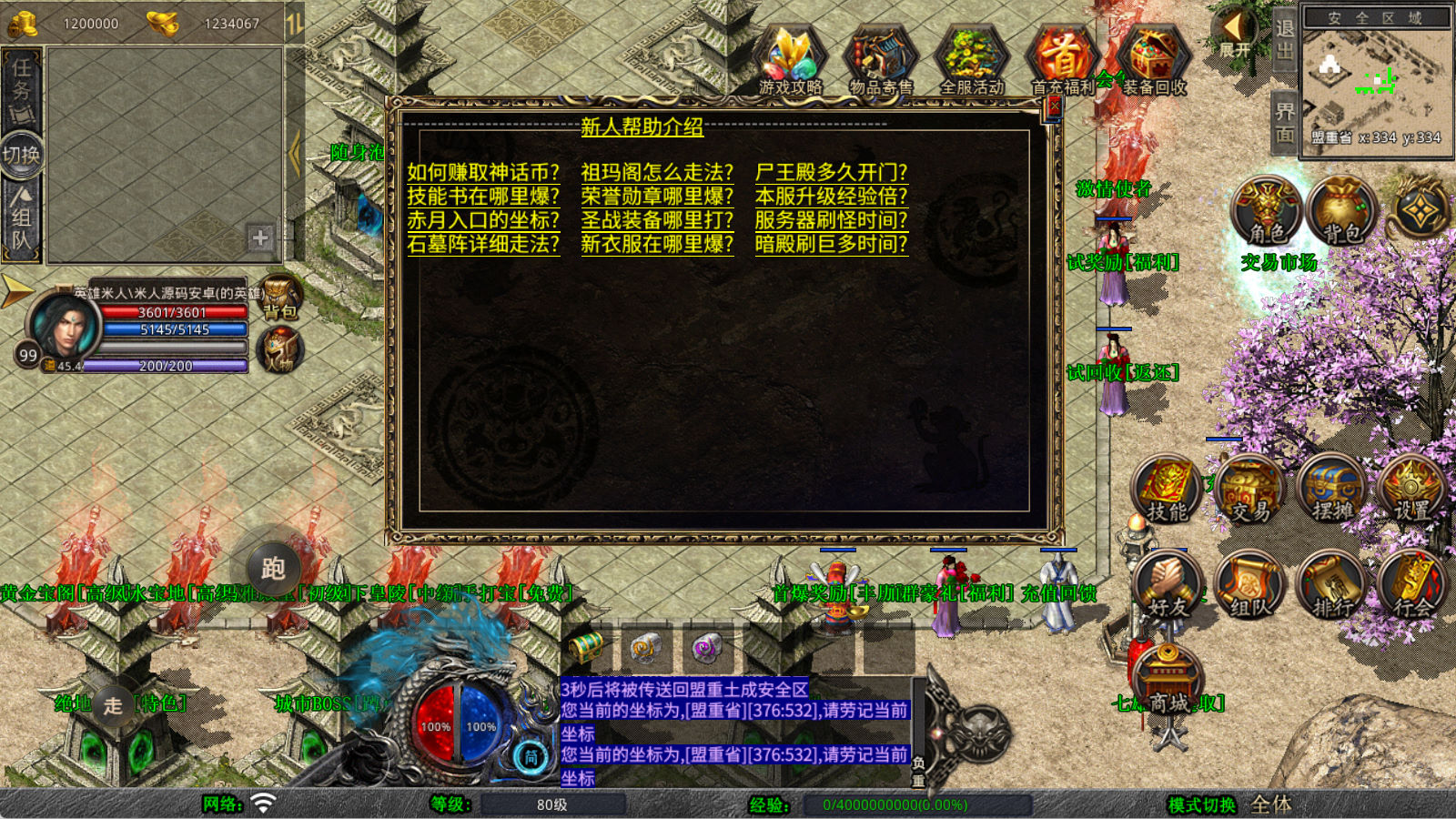 下面我们来测试下游戏里的功能看看。好了,其他功能就自行测试吧。更多的游戏资源可以访问www.MiR6.com下载,我们每款游戏资源均单独制作了独立的视频架设教程,让小白也可以快速上手游戏架设,快来体验自己做GM的乐趣吧!