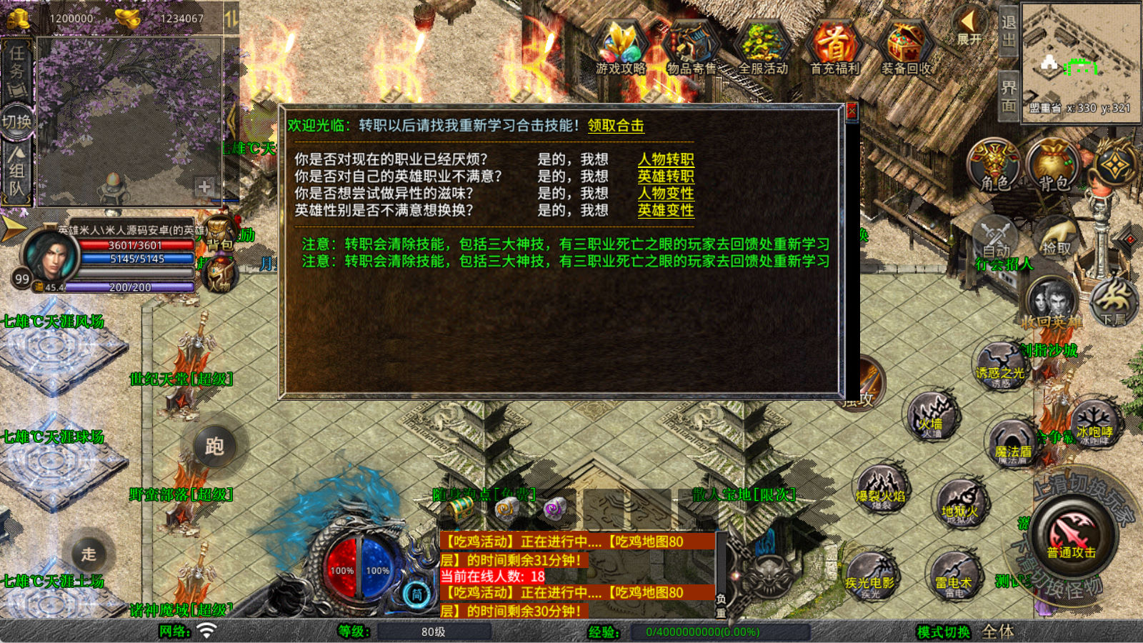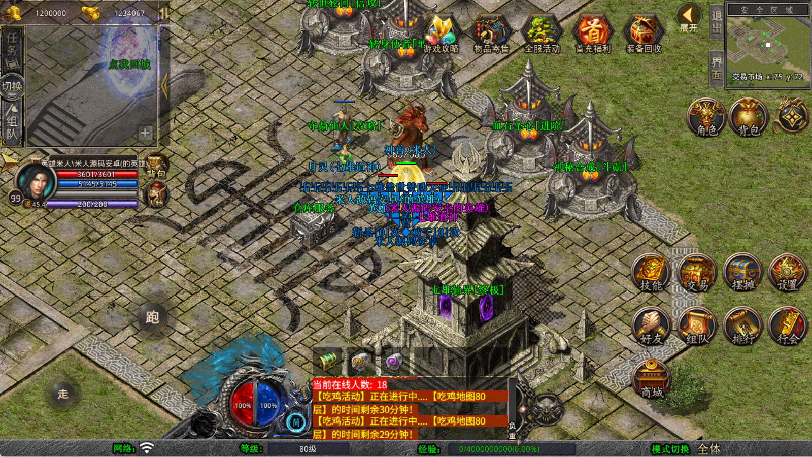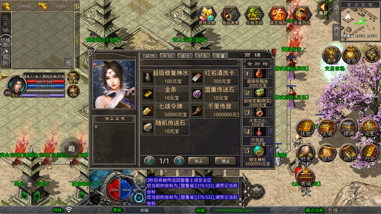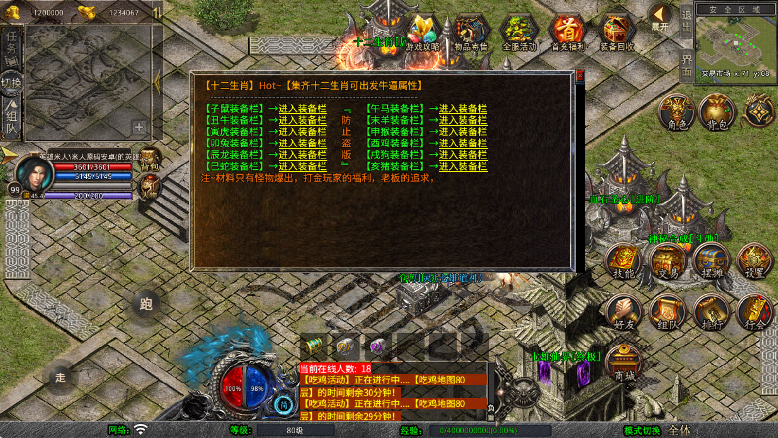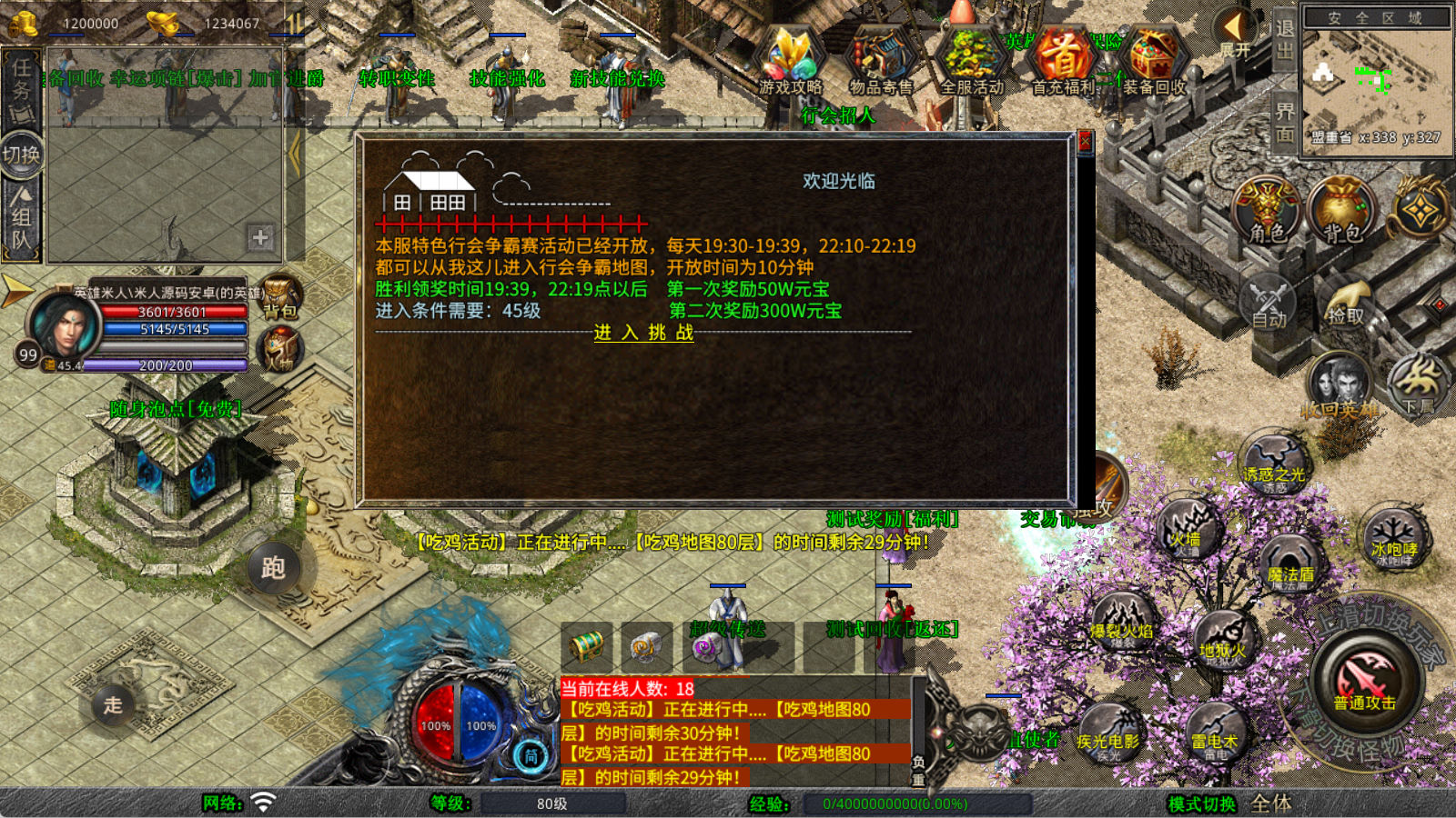下面我们来测试下游戏里的功能看看。好了,其他功能就自行测试吧。更多的游戏资源可以访问www.MiR6.com下载,我们每款游戏资源均单独制作了独立的视频架设教程,让小白也可以快速上手游戏架设,快来体验自己做GM的乐趣吧!
