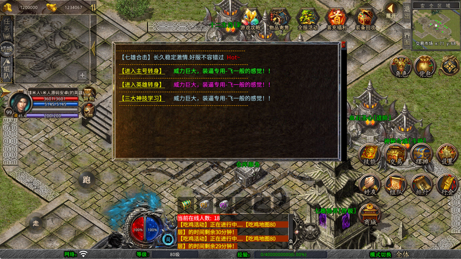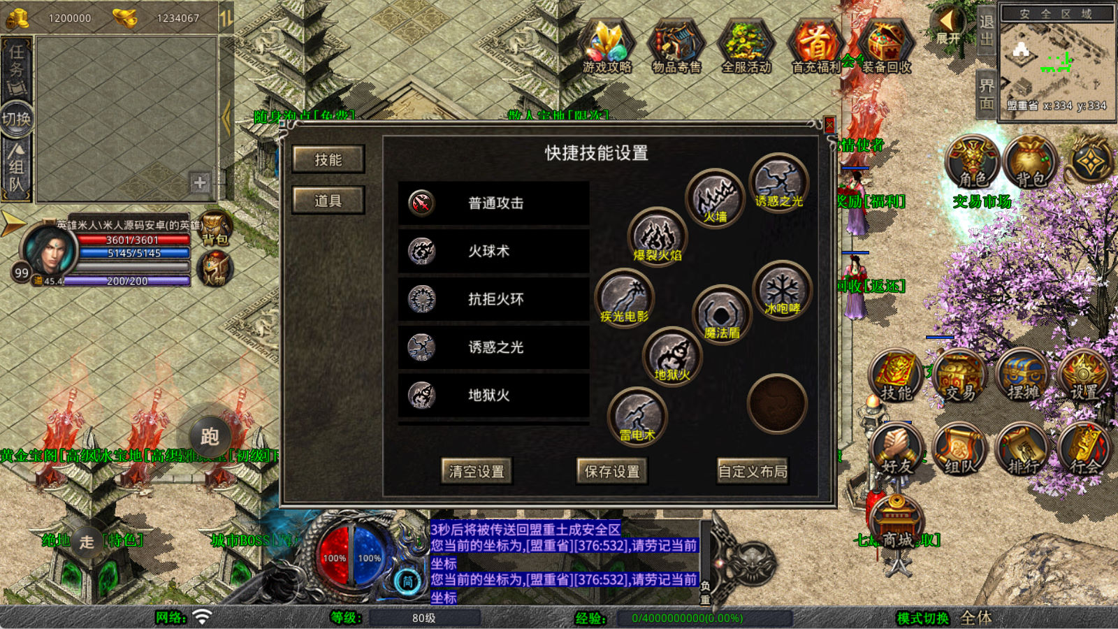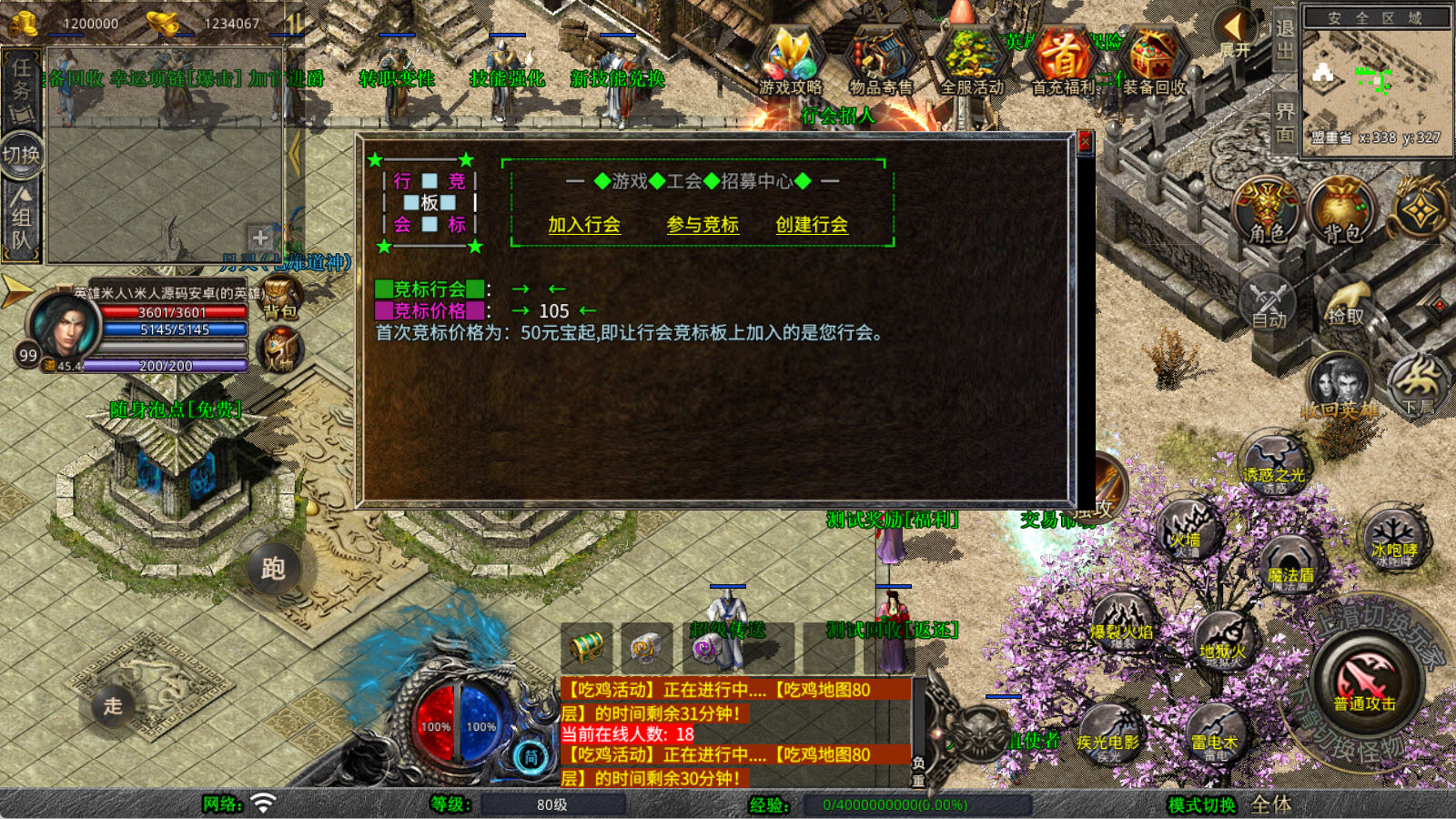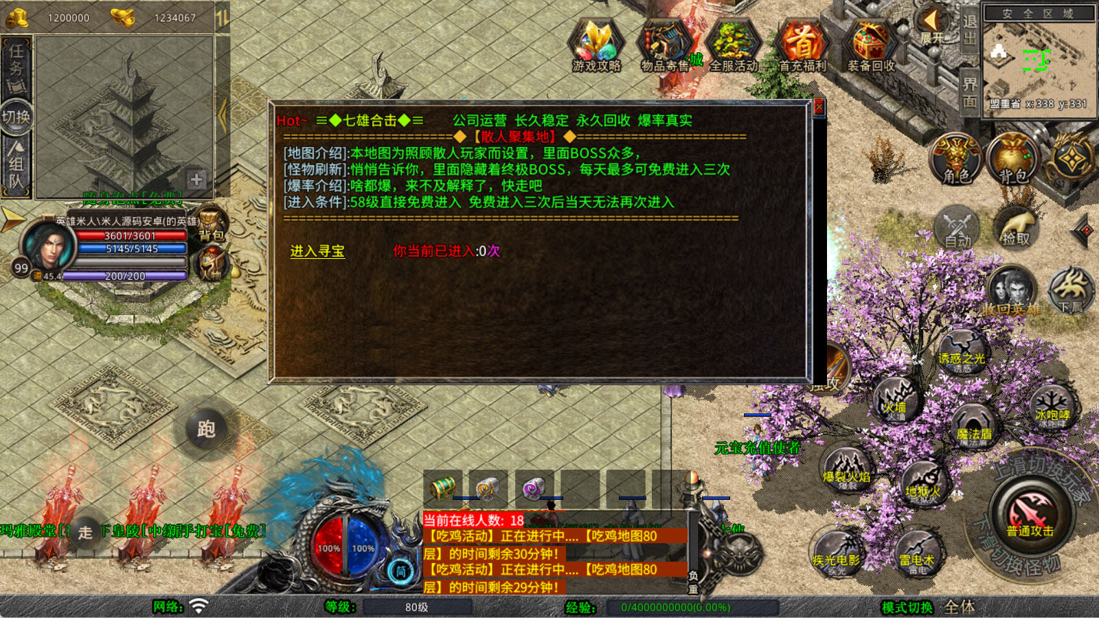 下面我们来测试下游戏里的功能看看。好了,其他功能就自行测试吧。更多的游戏资源可以访问www.MiR6.com下载,我们每款游戏资源均单独制作了独立的视频架设教程,让小白也可以快速上手游戏架设,快来体验自己做GM的乐趣吧!