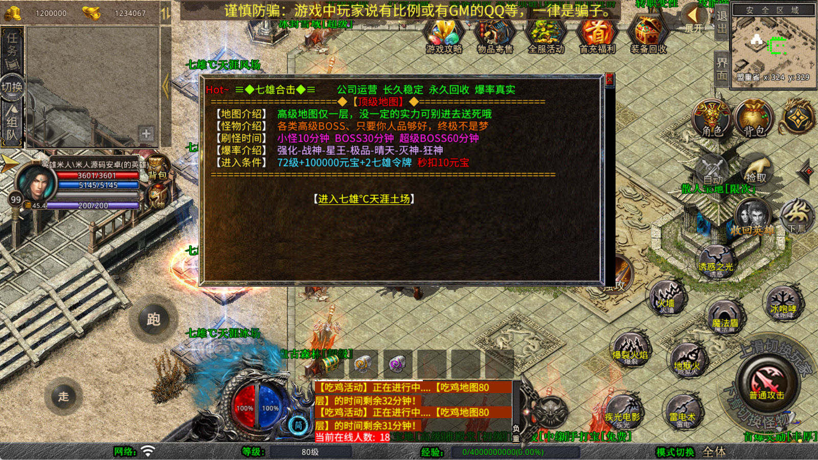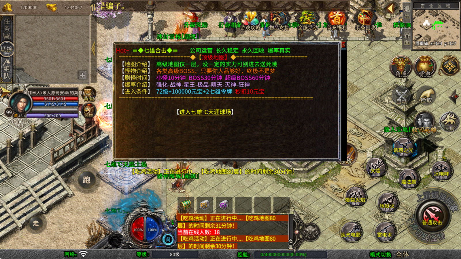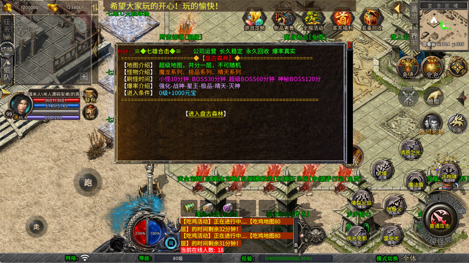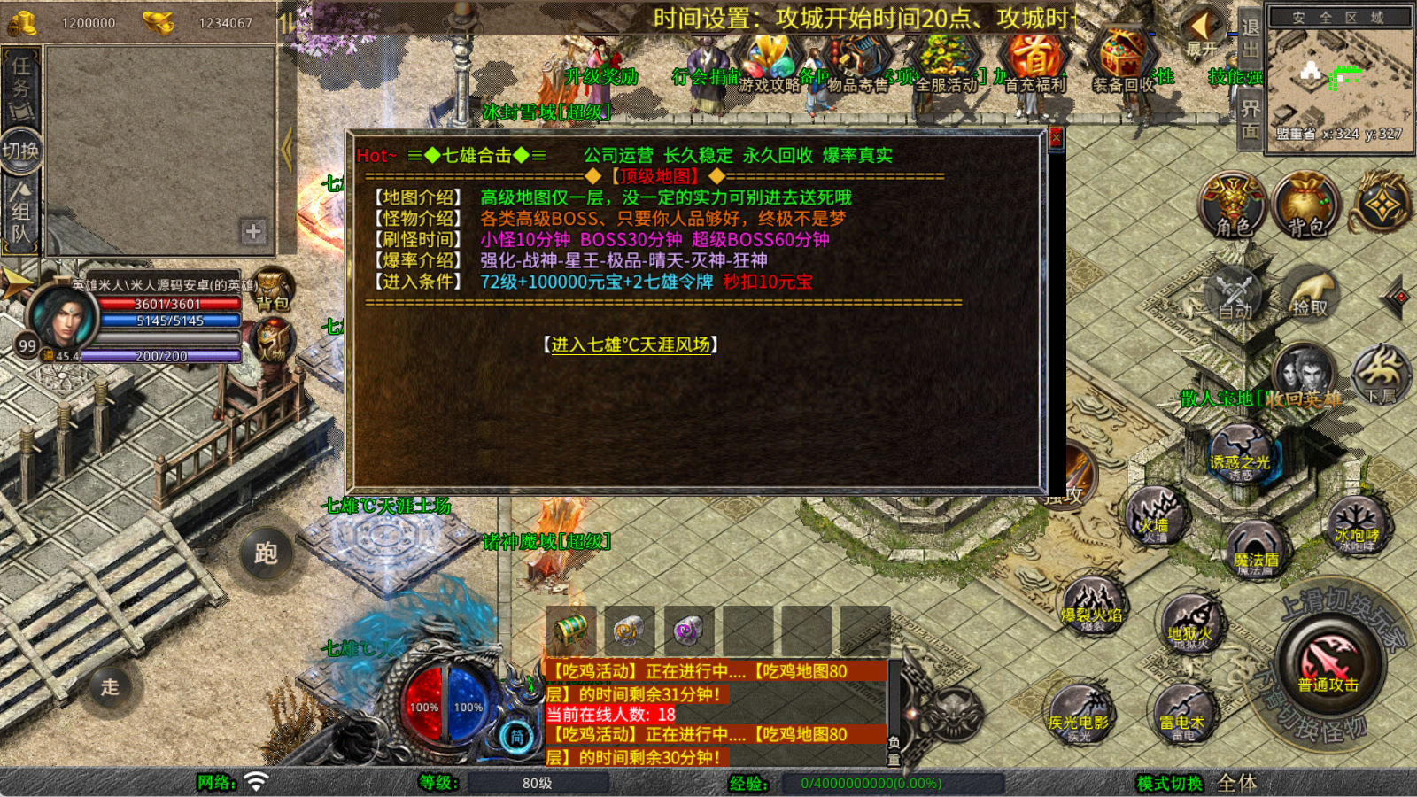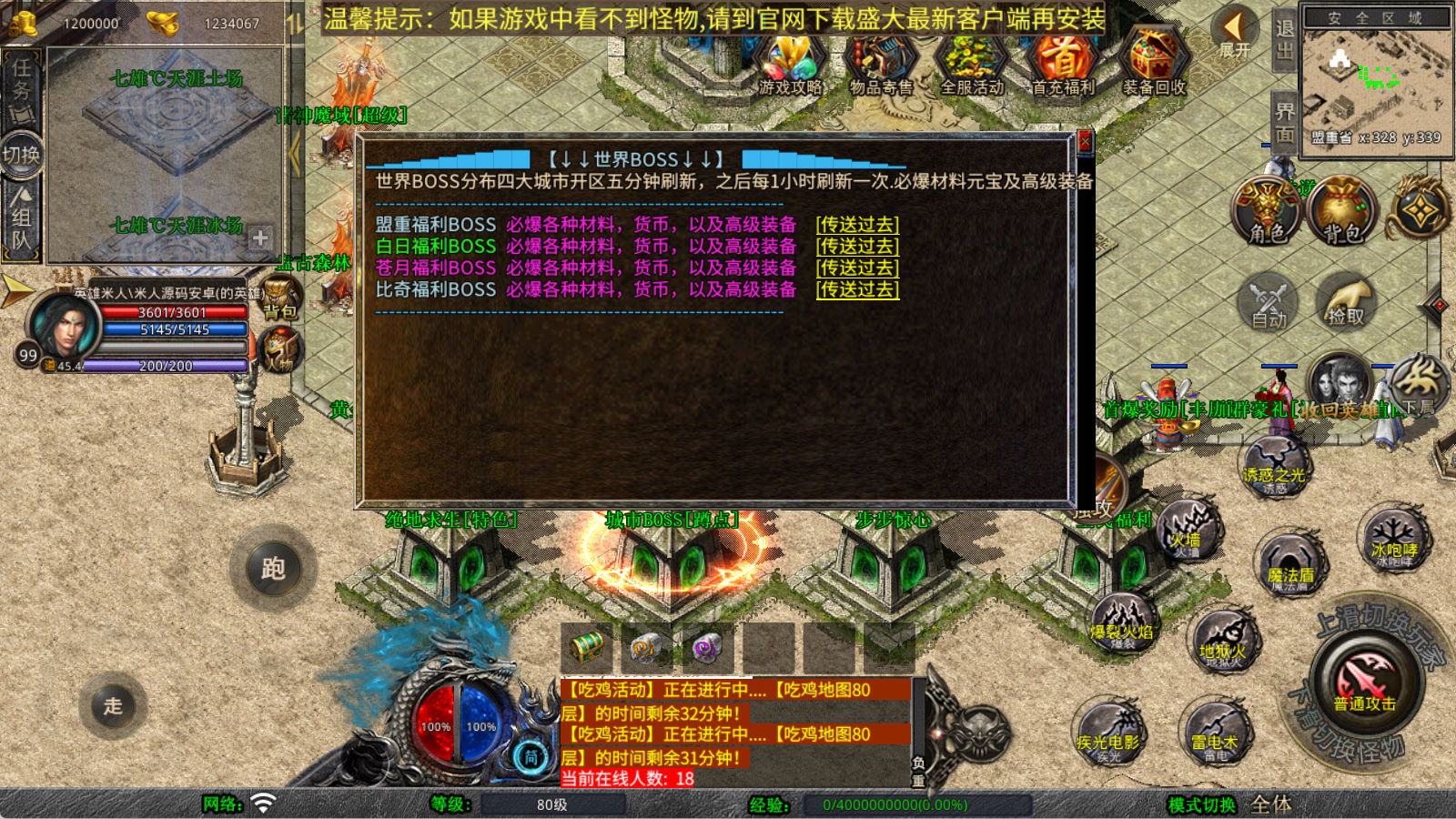 下面我们来测试下游戏里的功能看看。好了,其他功能就自行测试吧。更多的游戏资源可以访问www.MiR6.com下载,我们每款游戏资源均单独制作了独立的视频架设教程,让小白也可以快速上手游戏架设,快来体验自己做GM的乐趣吧!