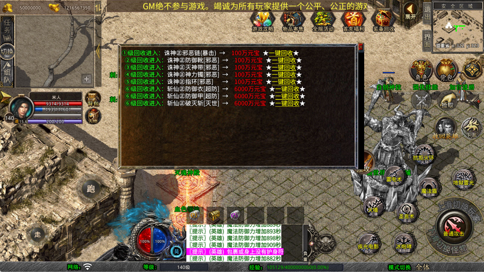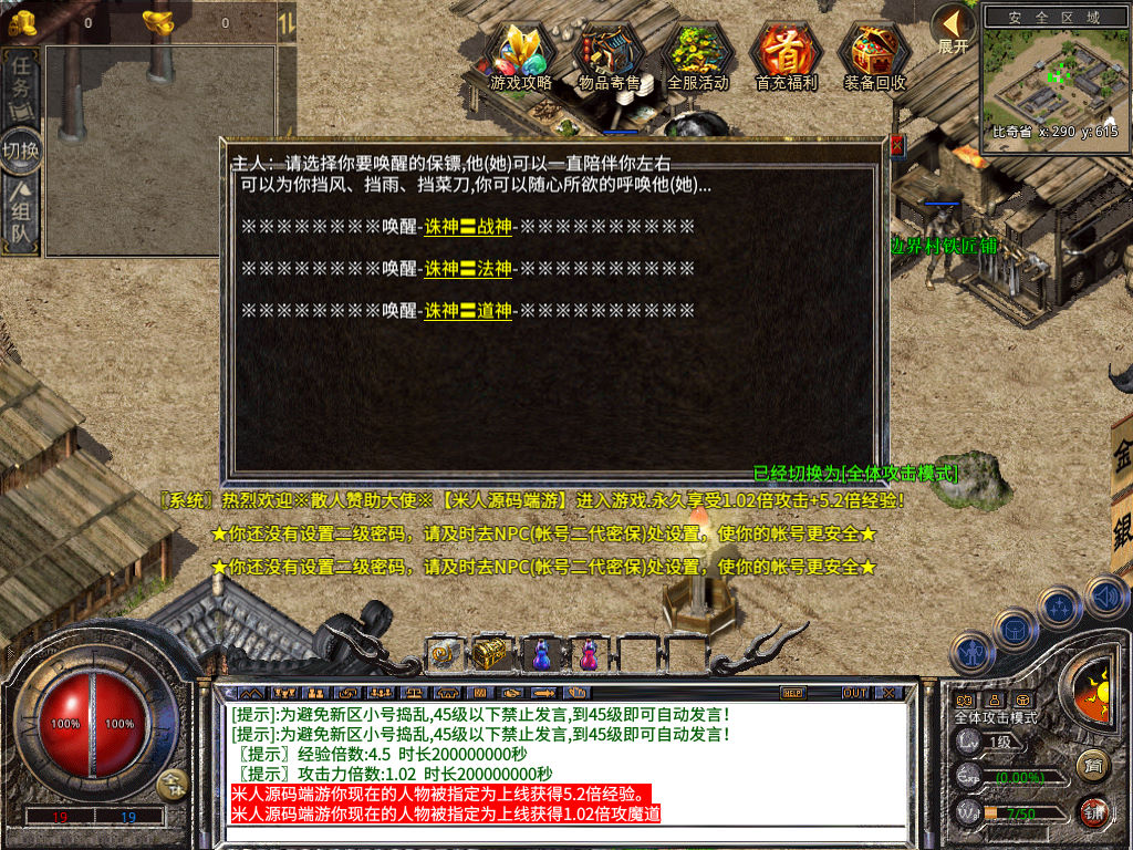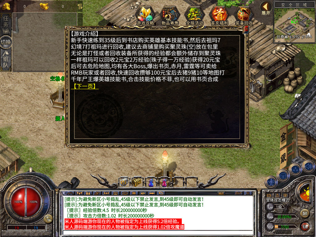 下面我们来测试下游戏里的功能看看。好了,其他功能就自行测试吧。更多的游戏资源可以访问www.MiR6.com下载,我们每款游戏资源均单独制作了独立的视频架设教程,让小白也可以快速上手游戏架设,快来体验自己做GM的乐趣吧!