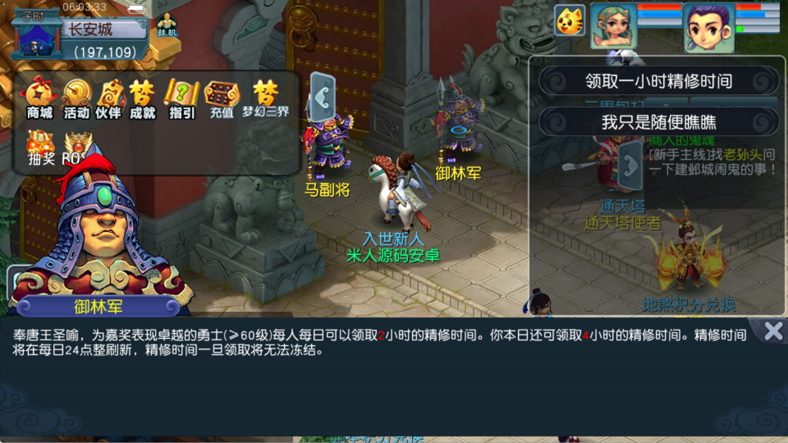 首先我们测试下PC客户端里的功能。下面再测试下安卓客户端里的功能。好了,其他功能就自行测试吧。更多的游戏资源可以访问www.MiR6.com下载,我们每款游戏资源均单独制作了独立的视频架设教程,让小白也可以快速上手游戏架设,快来体验自己做GM的乐趣吧!