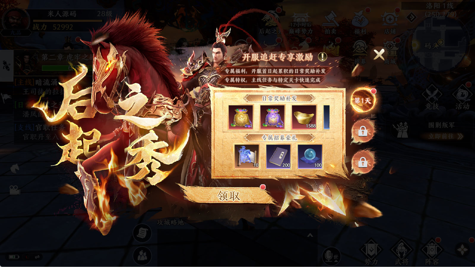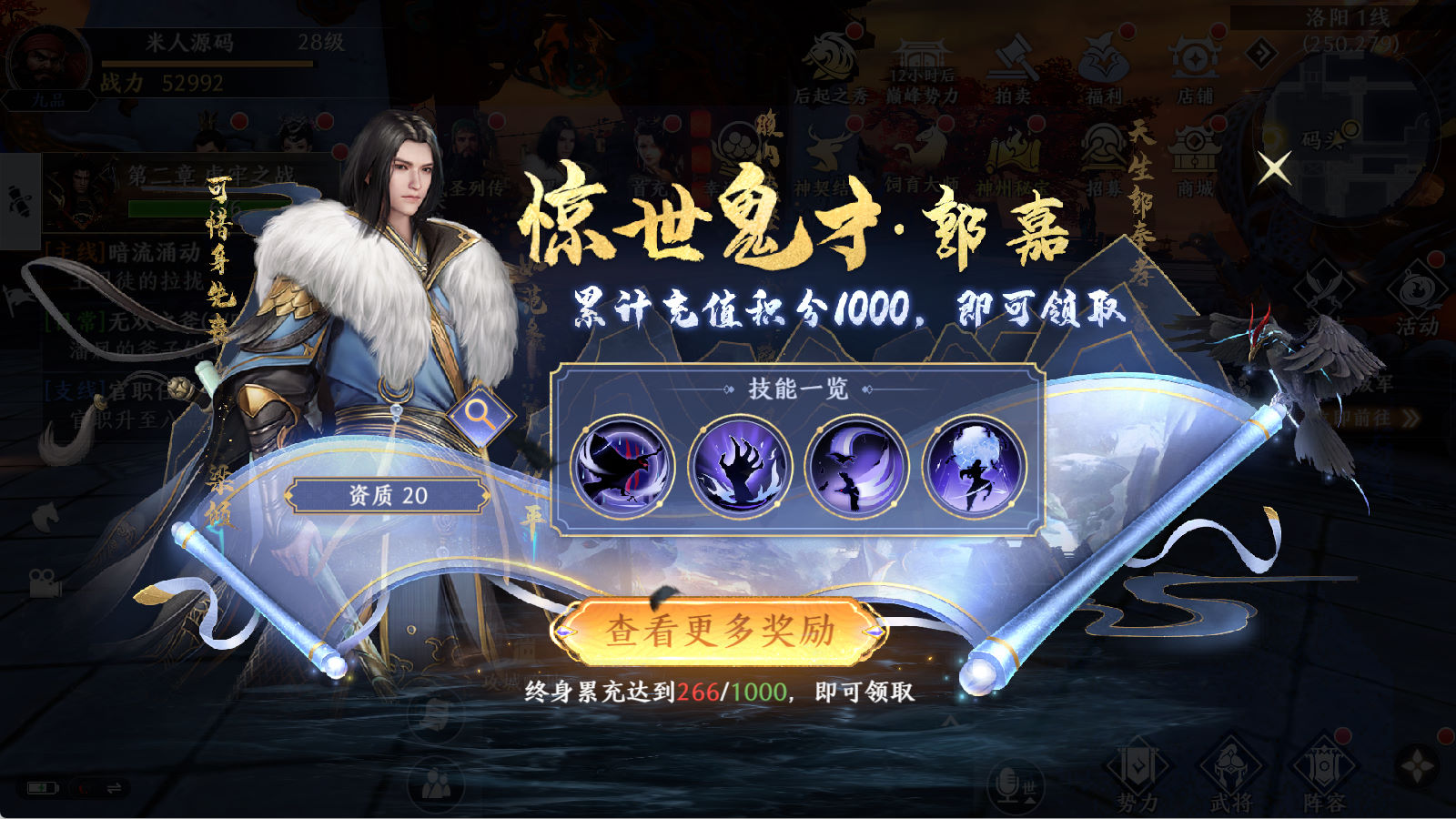 1.新增功能活动:卧龙出世、武圣、枭姬、貂蝉、孟德、孙坚、张辽、黄月英、甄姬列传等!