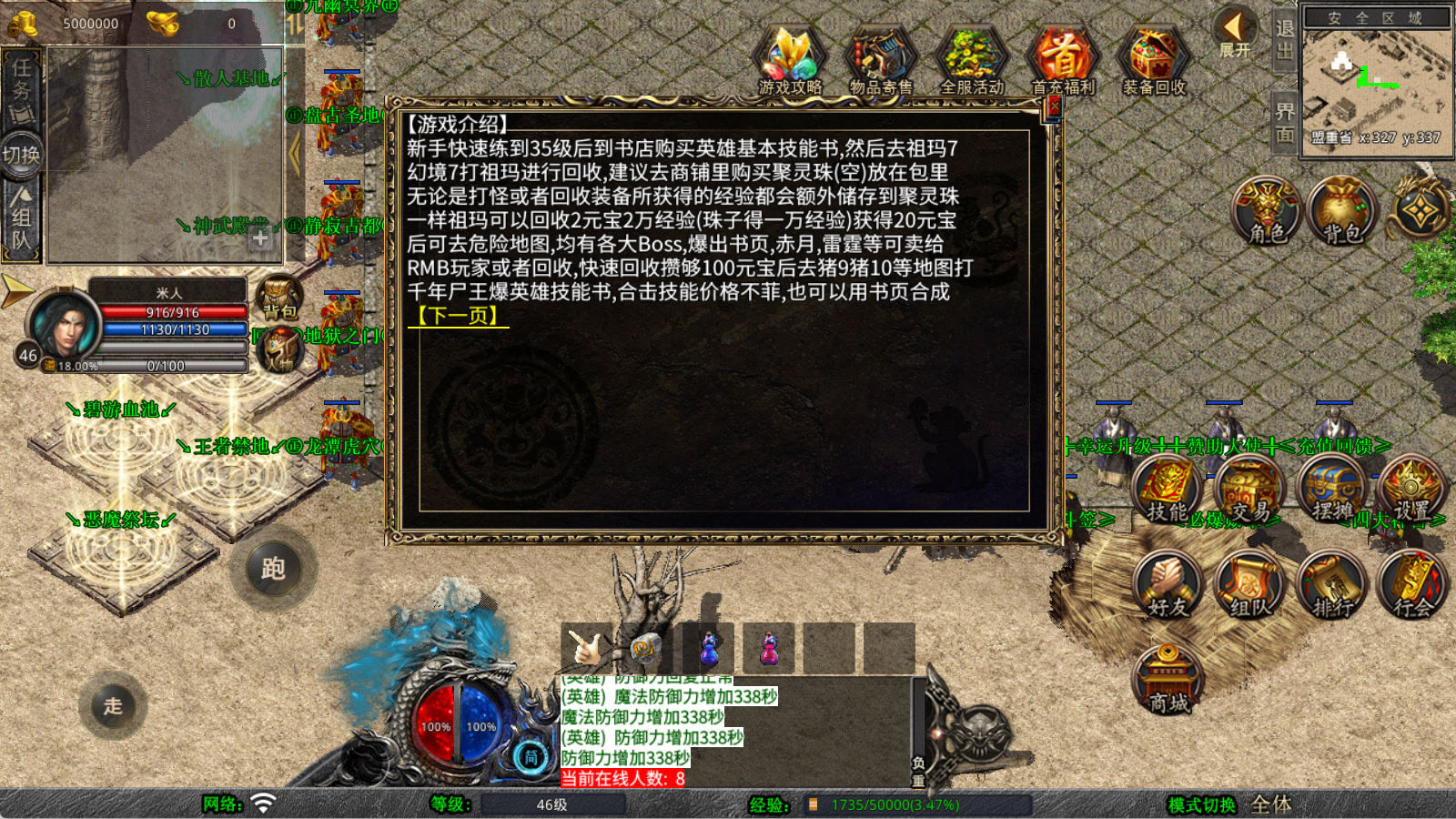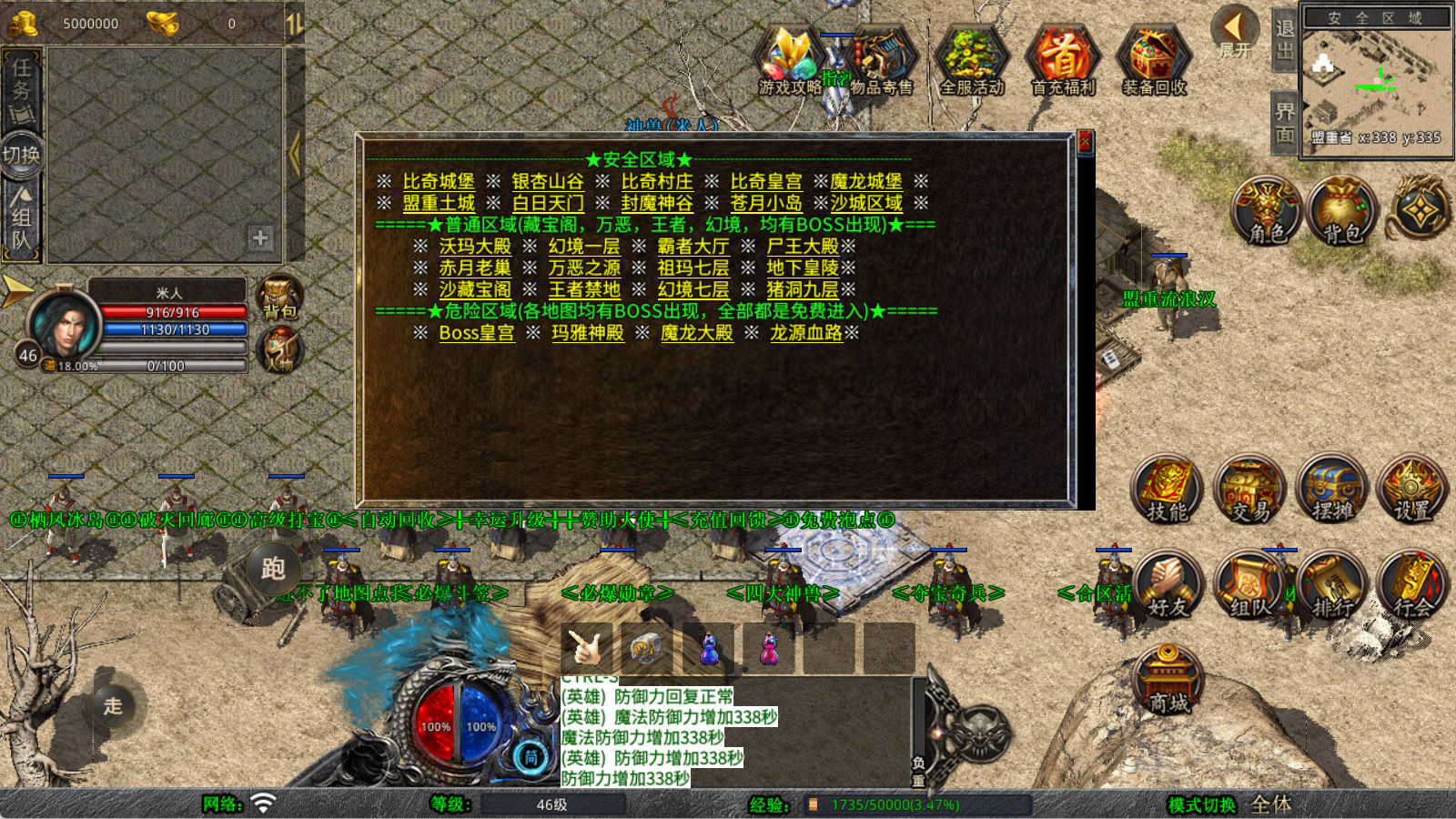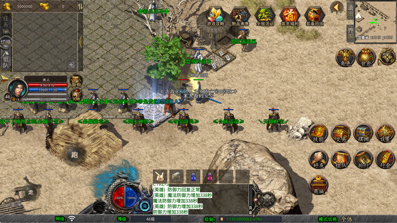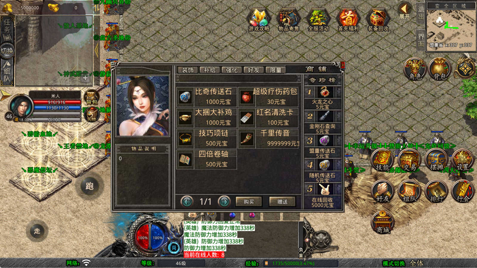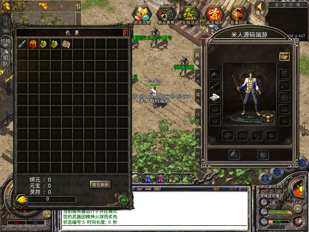 下面我们来测试下游戏里的功能看看。好了,其他功能就自行测试吧。更多的游戏资源可以访问www.MiR6.com下载,我们每款游戏资源均单独制作了独立的视频架设教程,让小白也可以快速上手游戏架设,快来体验自己做GM的乐趣吧!
