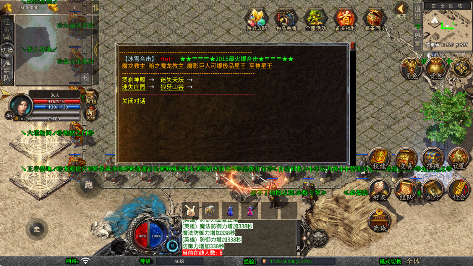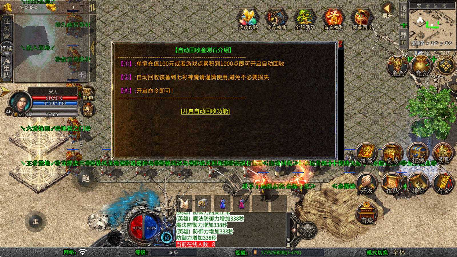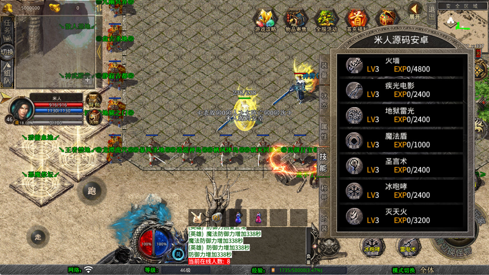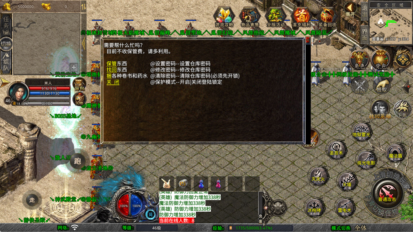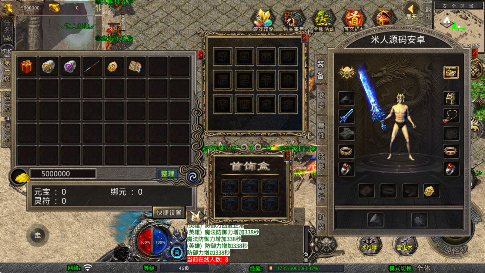 下面我们来测试下游戏里的功能看看。好了,其他功能就自行测试吧。更多的游戏资源可以访问www.MiR6.com下载,我们每款游戏资源均单独制作了独立的视频架设教程,让小白也可以快速上手游戏架设,快来体验自己做GM的乐趣吧!