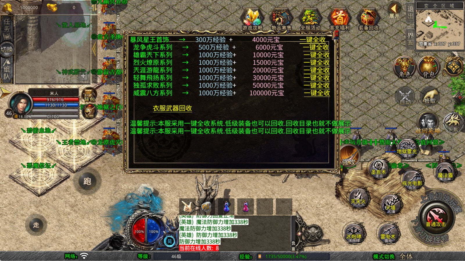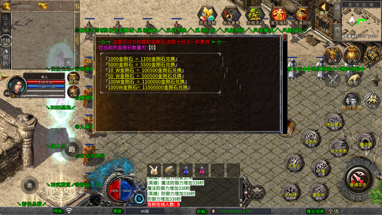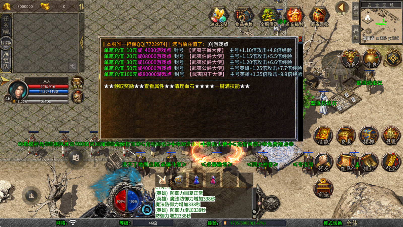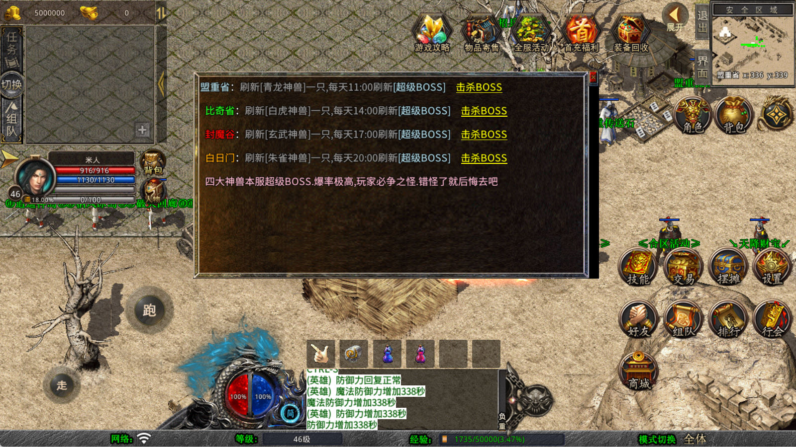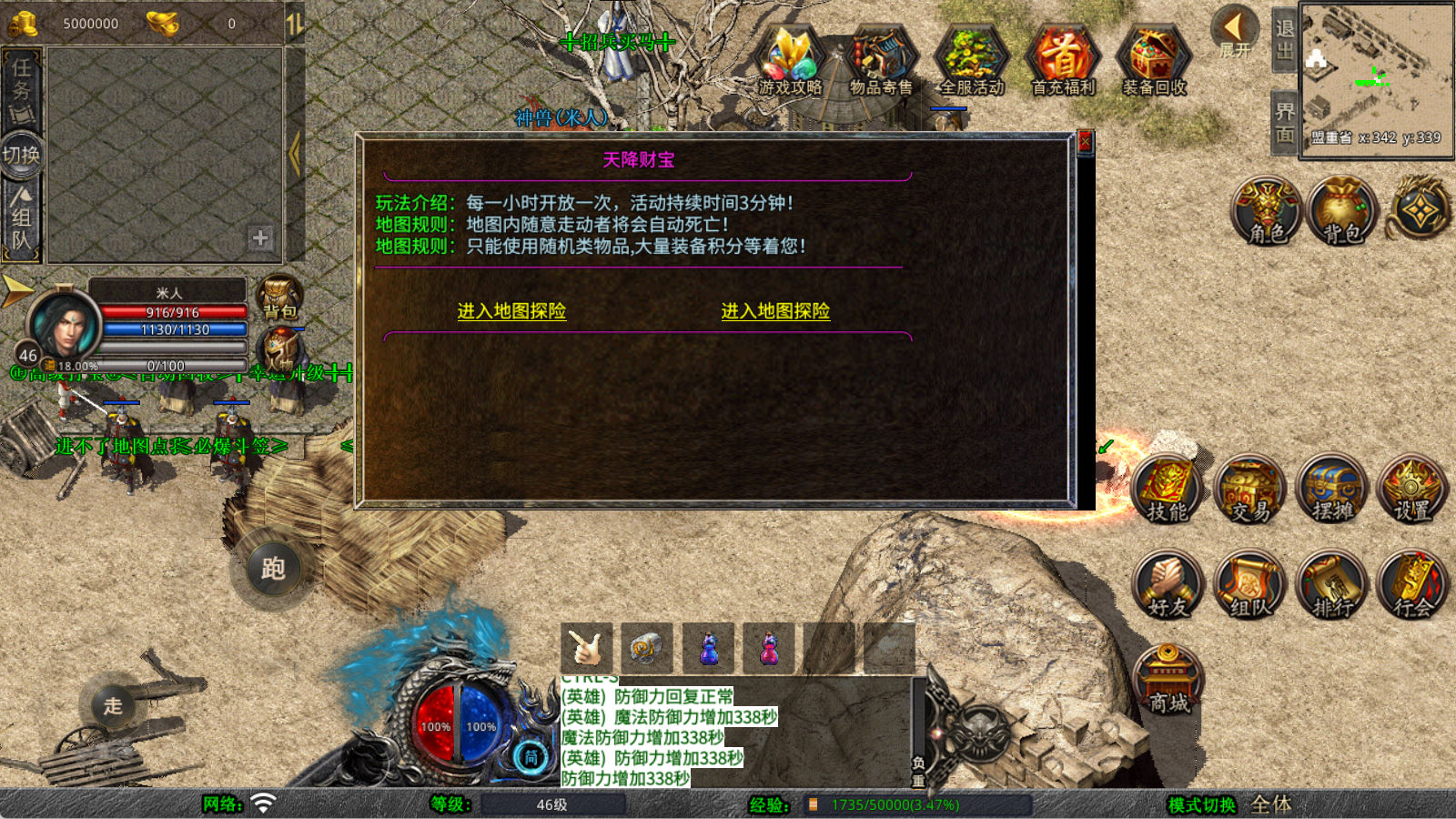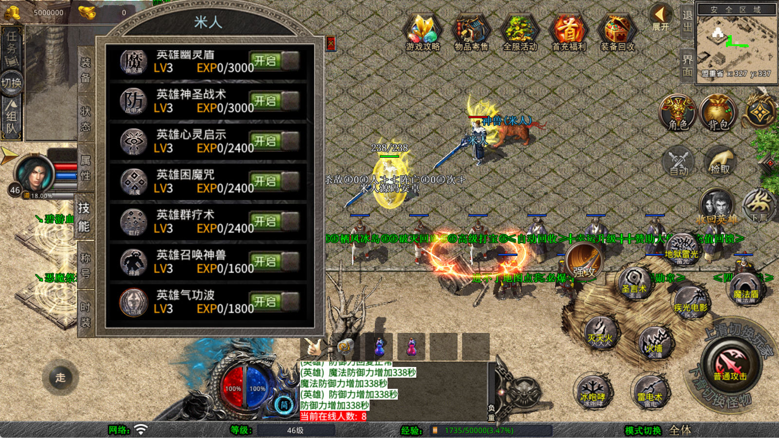 下面我们来测试下游戏里的功能看看。好了,其他功能就自行测试吧。更多的游戏资源可以访问www.MiR6.com下载,我们每款游戏资源均单独制作了独立的视频架设教程,让小白也可以快速上手游戏架设,快来体验自己做GM的乐趣吧!