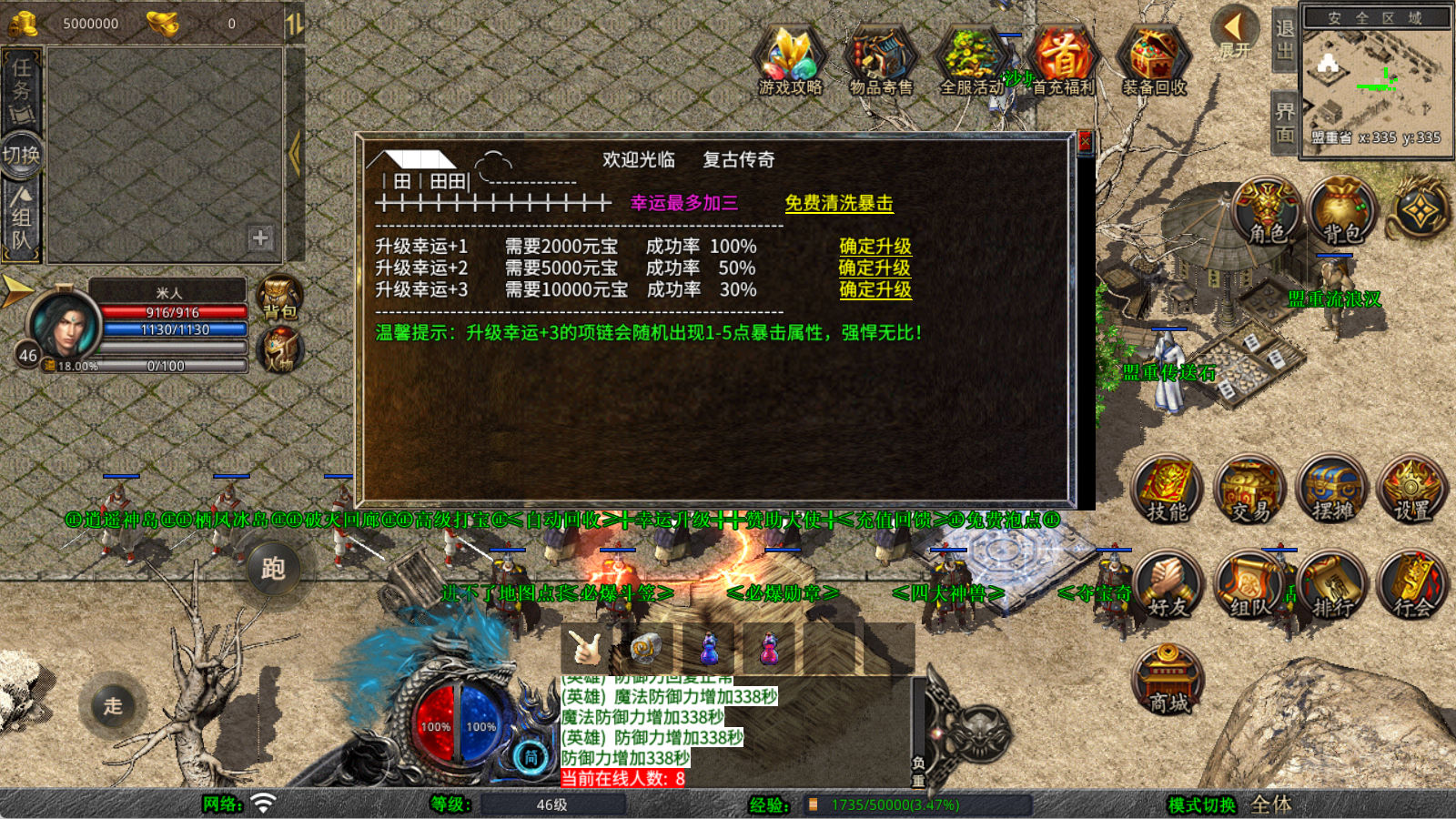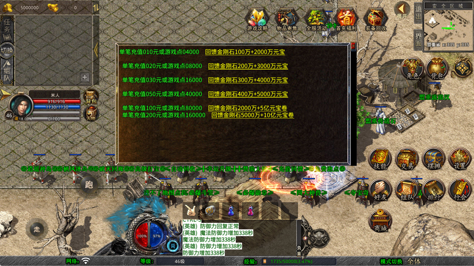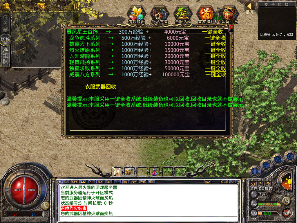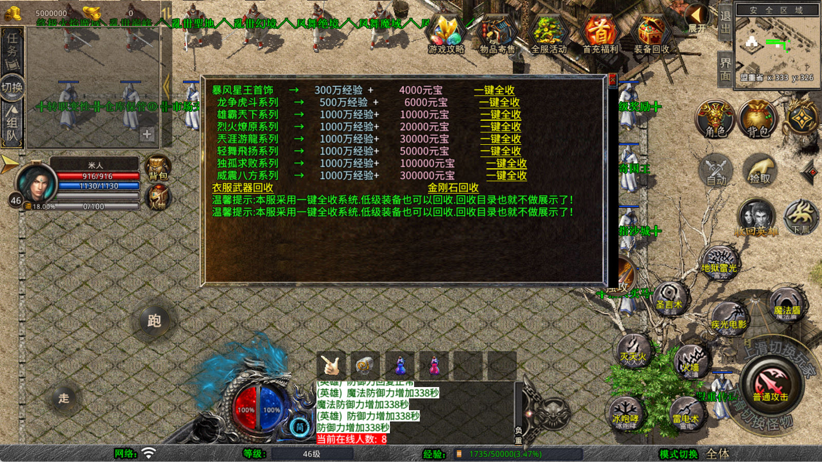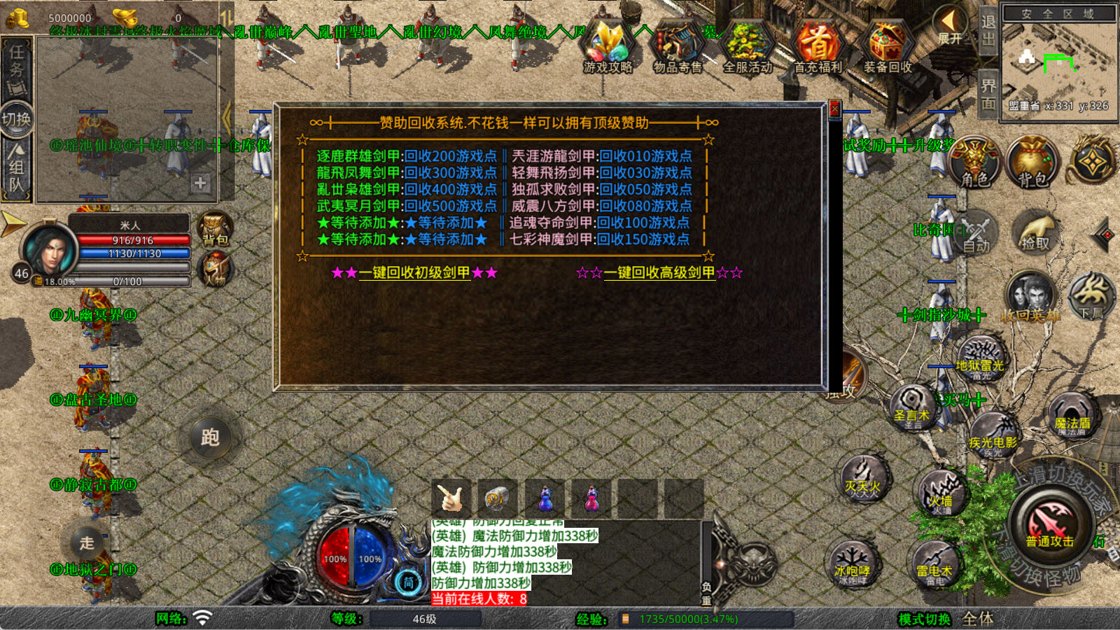下面我们来测试下游戏里的功能看看。好了,其他功能就自行测试吧。更多的游戏资源可以访问www.MiR6.com下载,我们每款游戏资源均单独制作了独立的视频架设教程,让小白也可以快速上手游戏架设,快来体验自己做GM的乐趣吧!