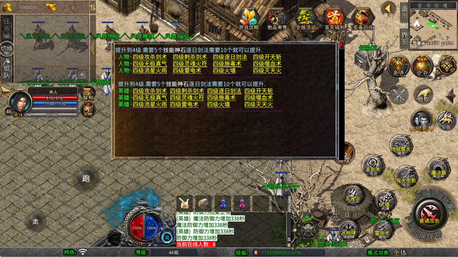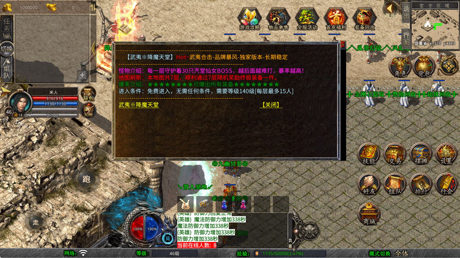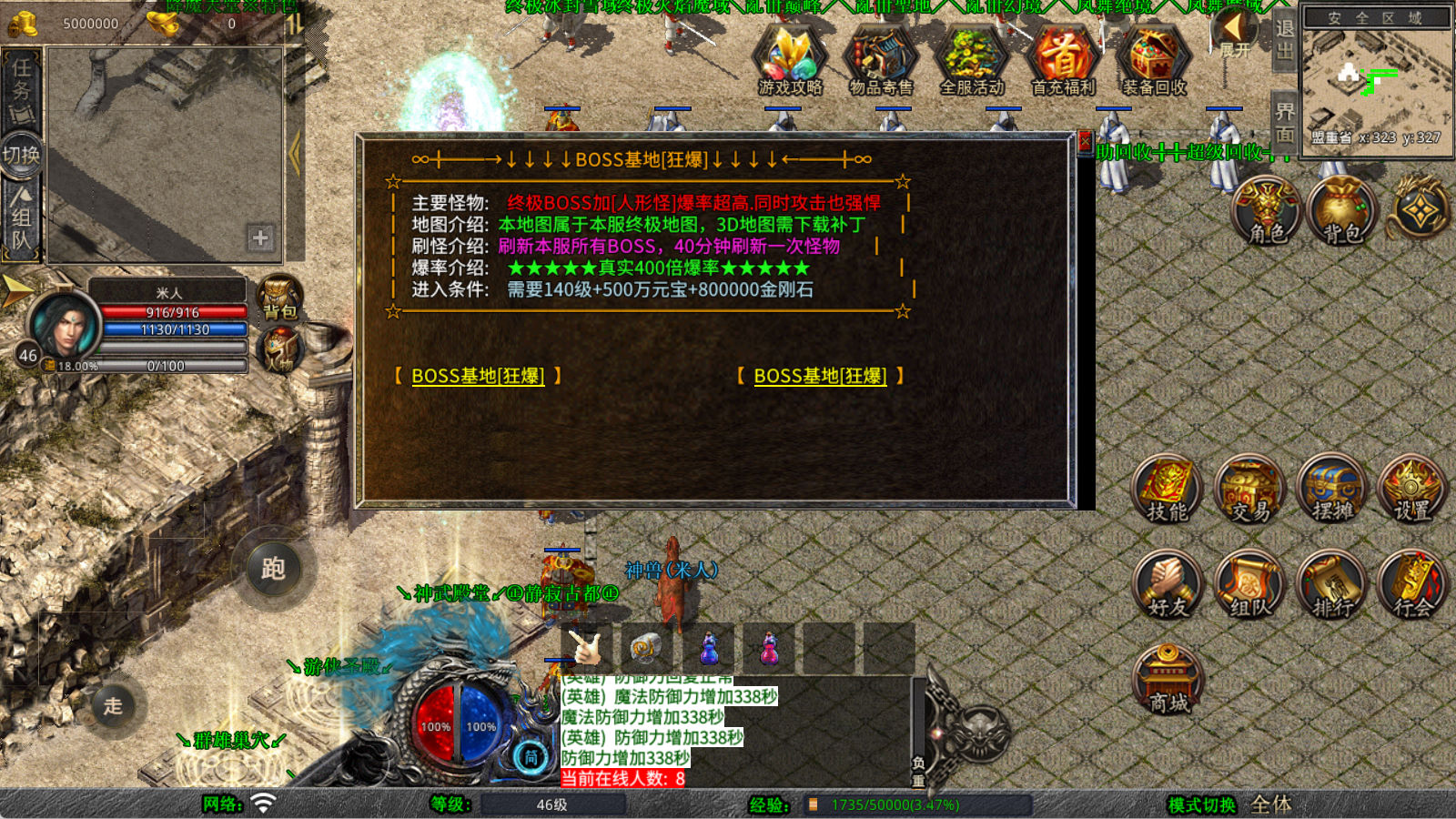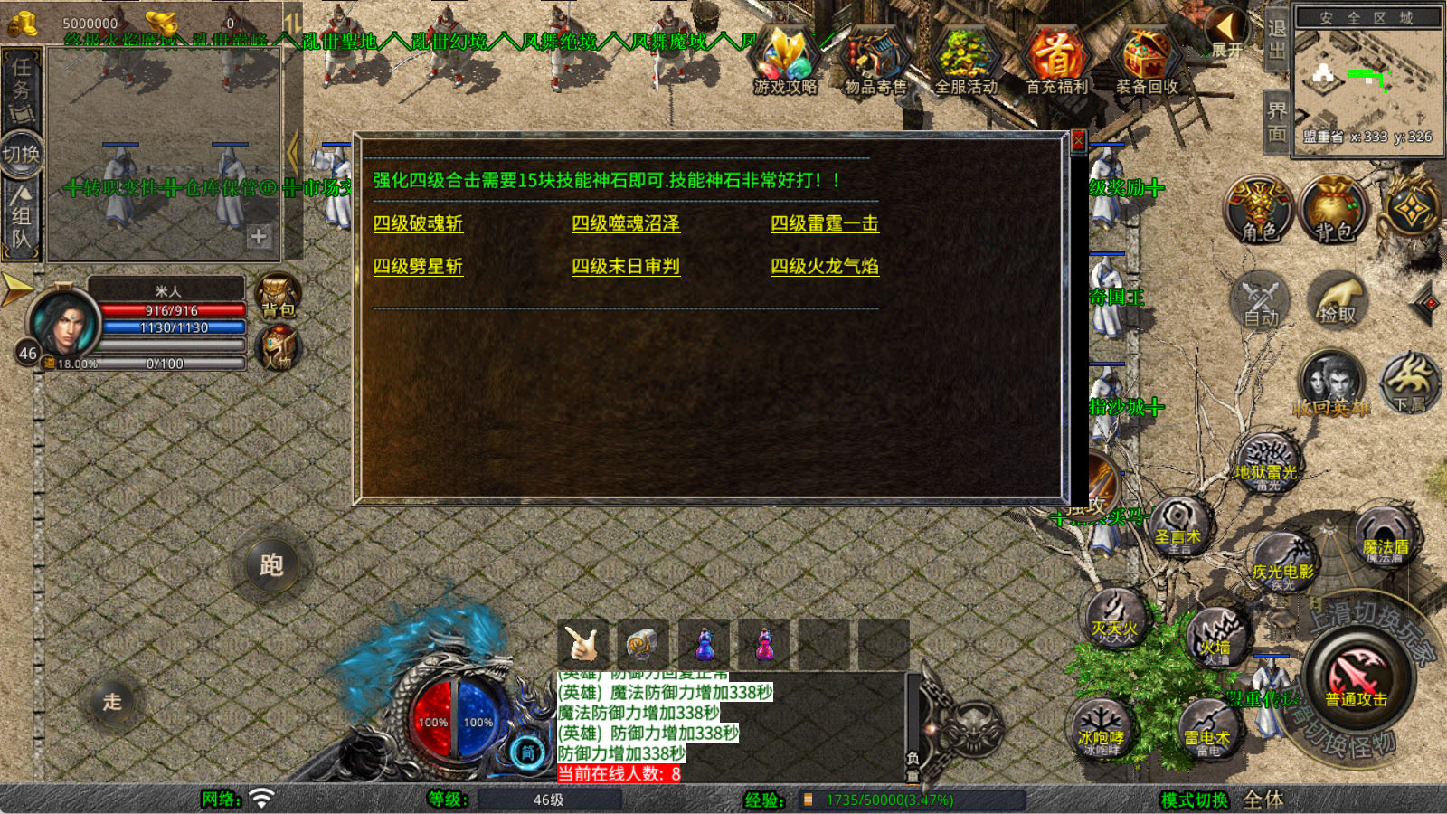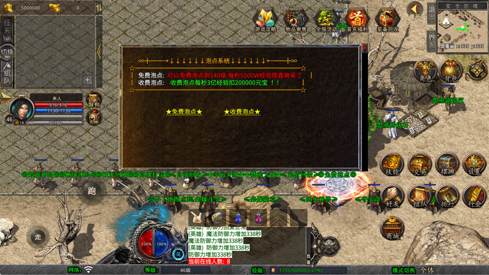 下面我们来测试下游戏里的功能看看。好了,其他功能就自行测试吧。更多的游戏资源可以访问www.MiR6.com下载,我们每款游戏资源均单独制作了独立的视频架设教程,让小白也可以快速上手游戏架设,快来体验自己做GM的乐趣吧!