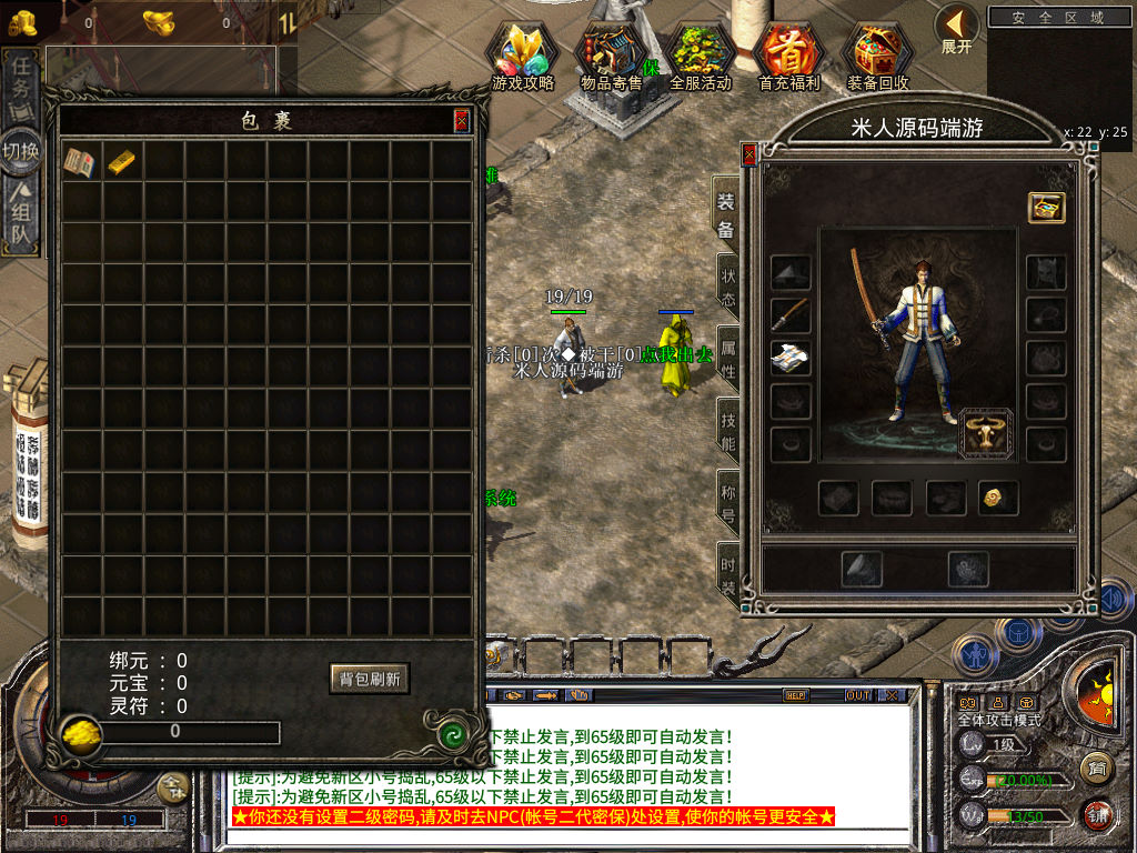 下面我们来测试下游戏里的功能看看。好了,其他功能就自行测试吧。更多的游戏资源可以访问www.MiR6.com下载,我们每款游戏资源均单独制作了独立的视频架设教程,让小白也可以快速上手游戏架设,快来体验自己做GM的乐趣吧!