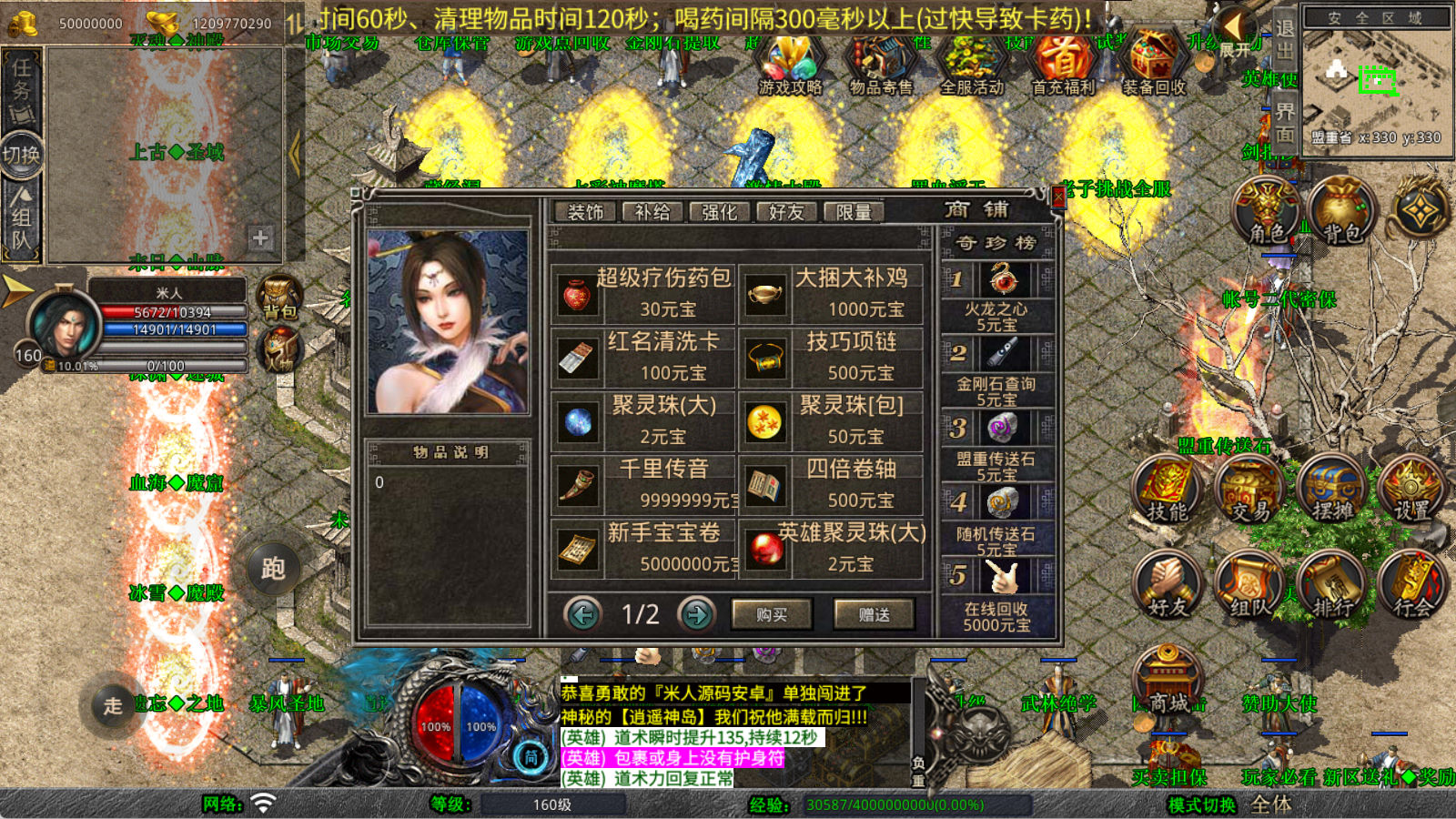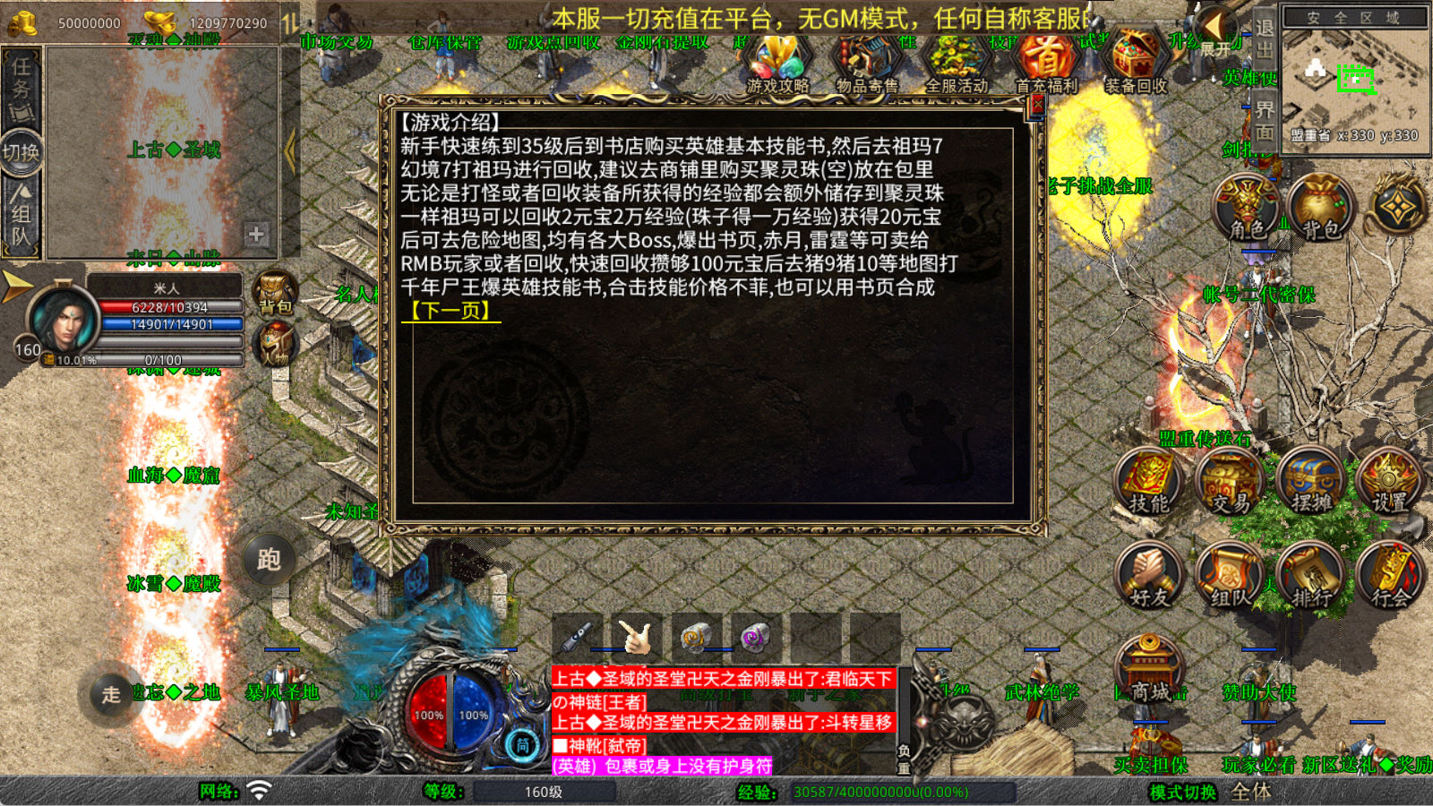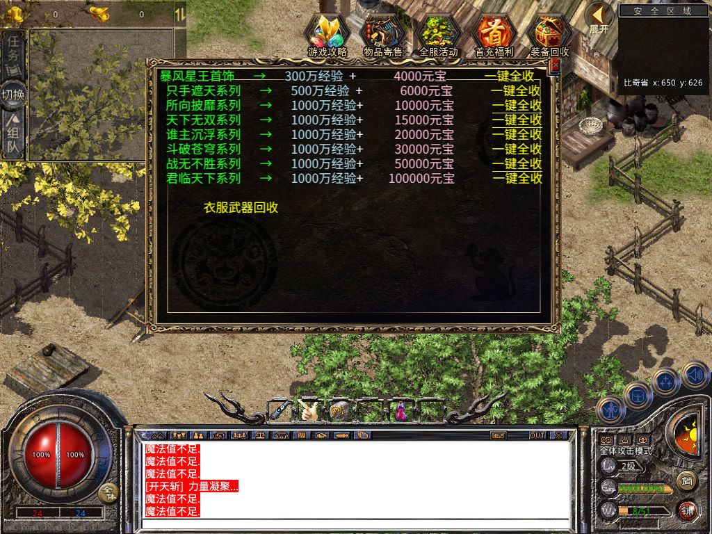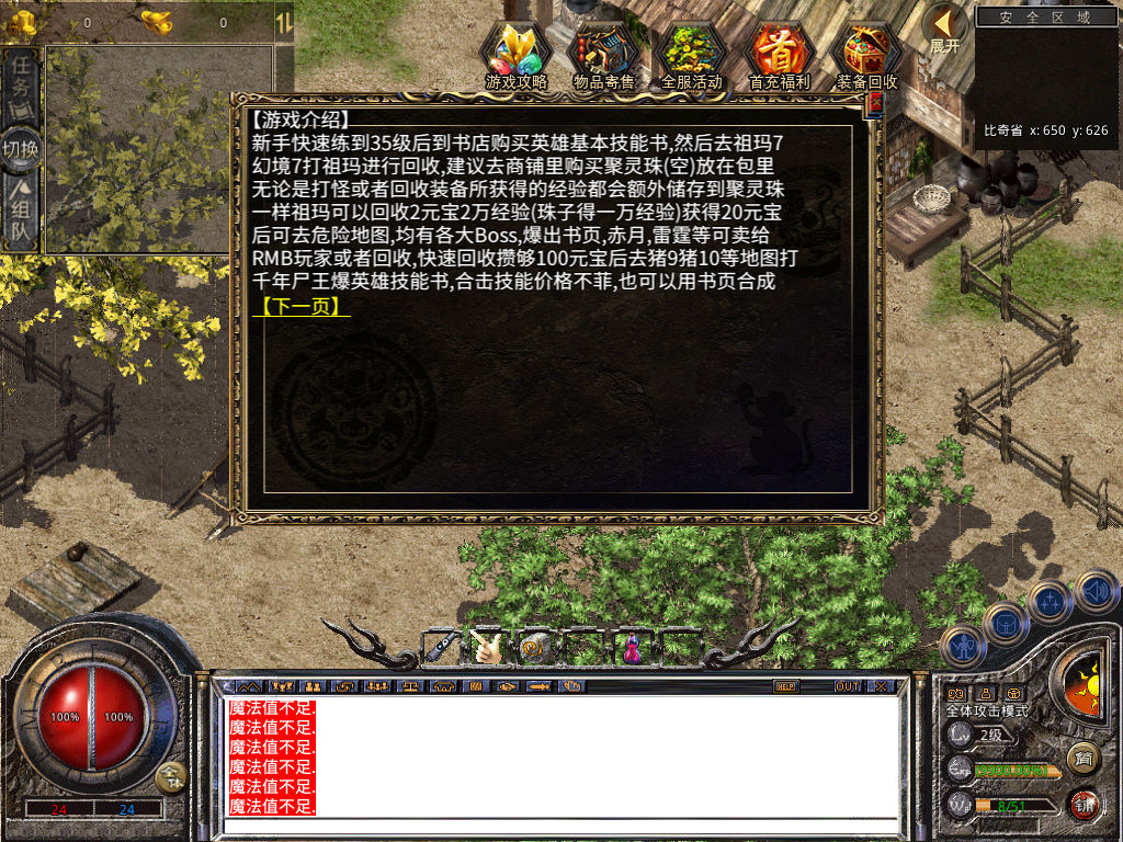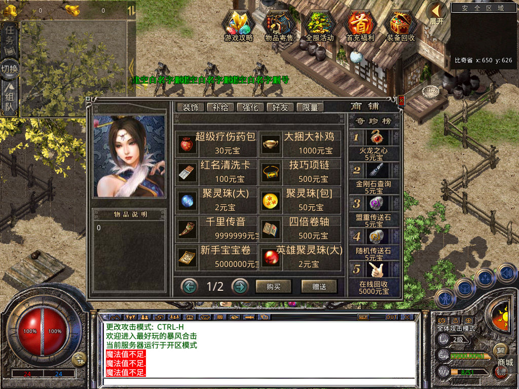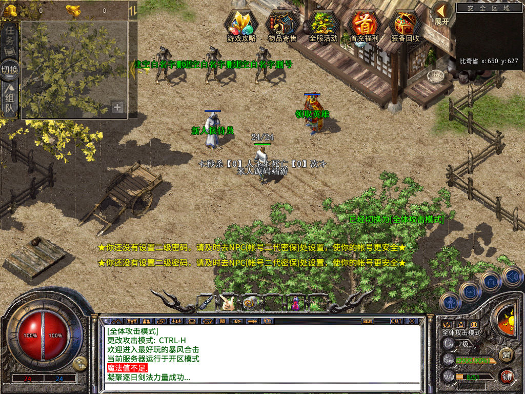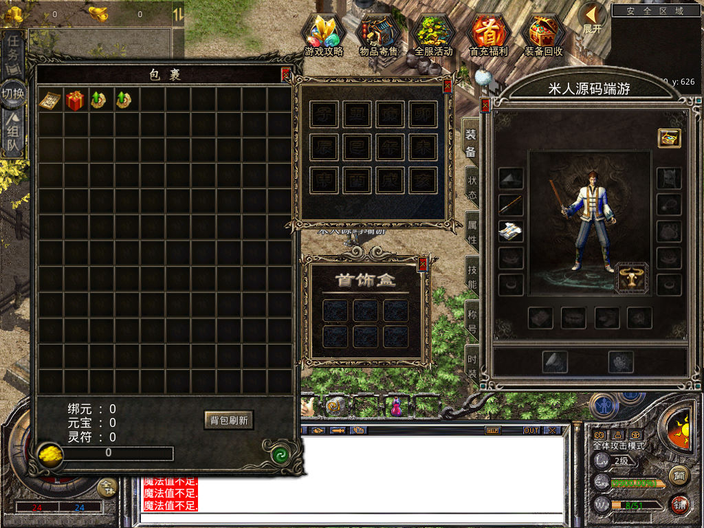 下面我们来测试下游戏里的功能看看。好了,其他功能就自行测试吧。更多的游戏资源可以访问www.MiR6.com下载,我们每款游戏资源均单独制作了独立的视频架设教程,让小白也可以快速上手游戏架设,快来体验自己做GM的乐趣吧!